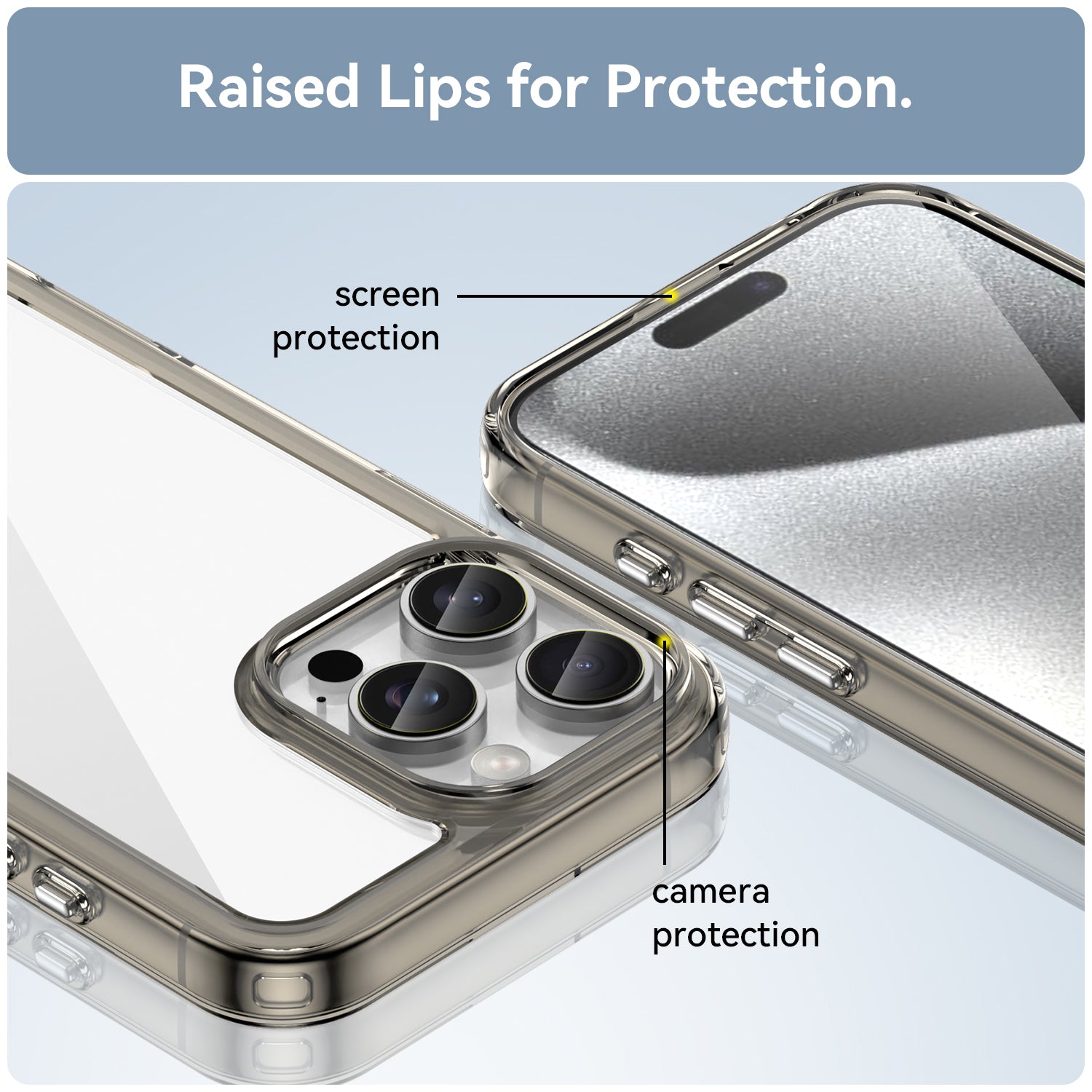 **✅ [Raised Edges Camera & Screen Protection]: Raised Edges around camera prevents lens from directly touching the surface, thus protecting it . Also Raised edges in front help prevent your Phone's screen from rubbing against flat surfaces and getting scratched .