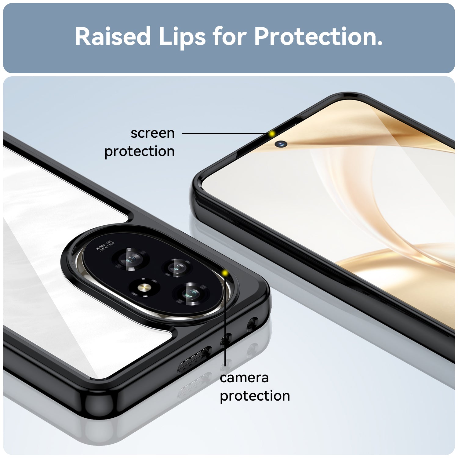 **✅ [Raised Edges Camera & Screen Protection]: Raised Edges around camera prevents lens from directly touching the surface, thus protecting it . Also Raised edges in front help prevent your Phone's screen from rubbing against flat surfaces and getting scratched .