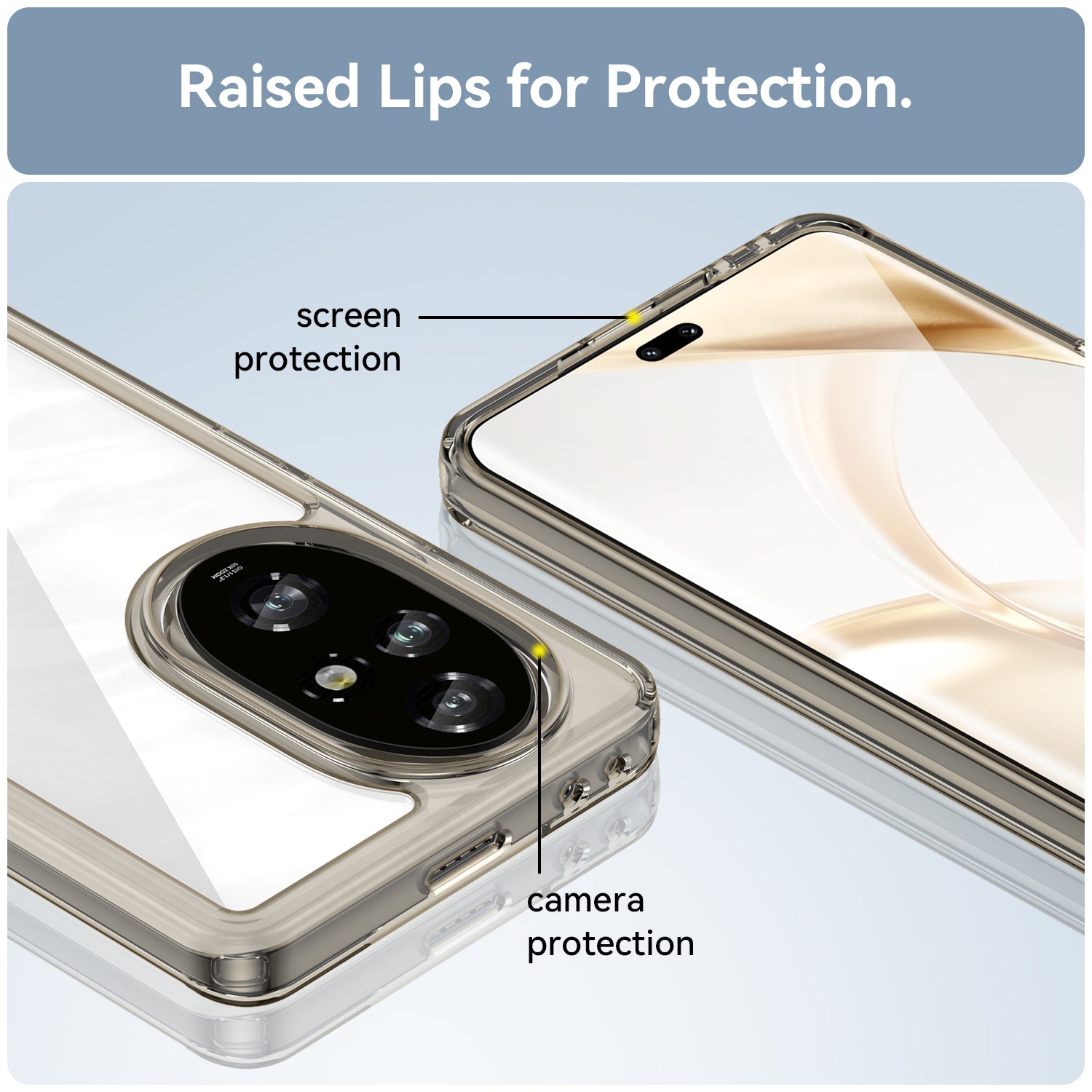 **✅ [Raised Edges Camera & Screen Protection]: Raised Edges around camera prevents lens from directly touching the surface, thus protecting it . Also Raised edges in front help prevent your Phone's screen from rubbing against flat surfaces and getting scratched .