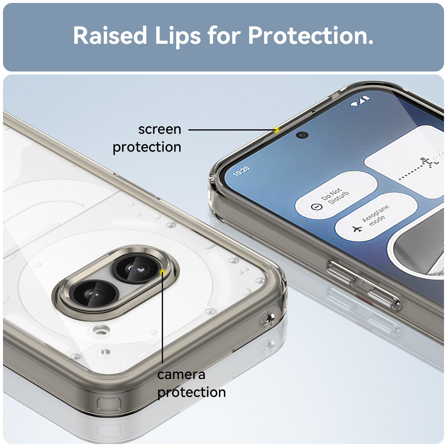 **✅ [Raised Edges Camera & Screen Protection]: Raised Edges around camera prevents lens from directly touching the surface, thus protecting it . Also Raised edges in front help prevent your Phone's screen from rubbing against flat surfaces and getting scratched .