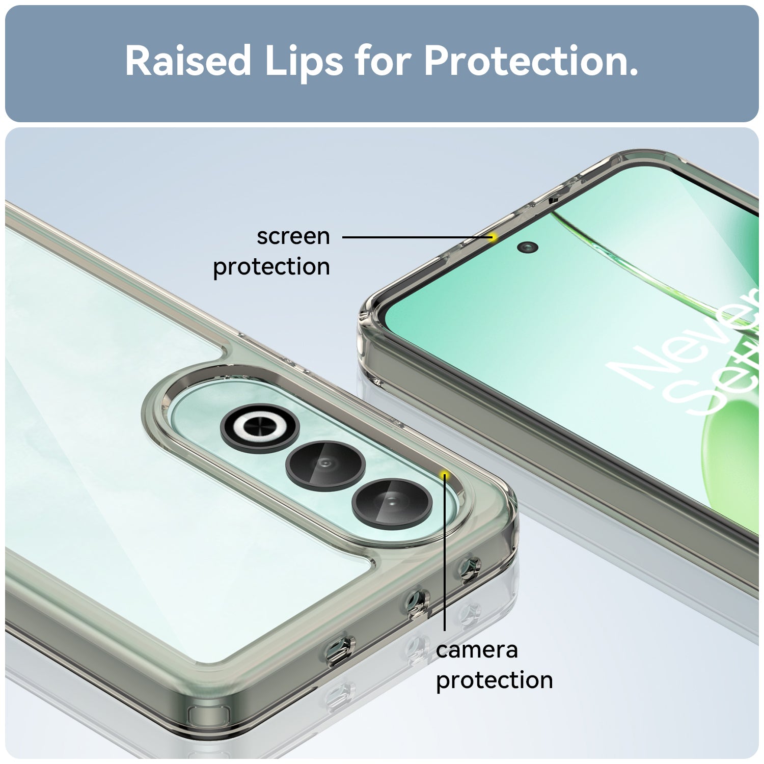 **✅ [Raised Edges Camera & Screen Protection]: Raised Edges around camera prevents lens from directly touching the surface, thus protecting it . Also Raised edges in front help prevent your Phone's screen from rubbing against flat surfaces and getting scratched .