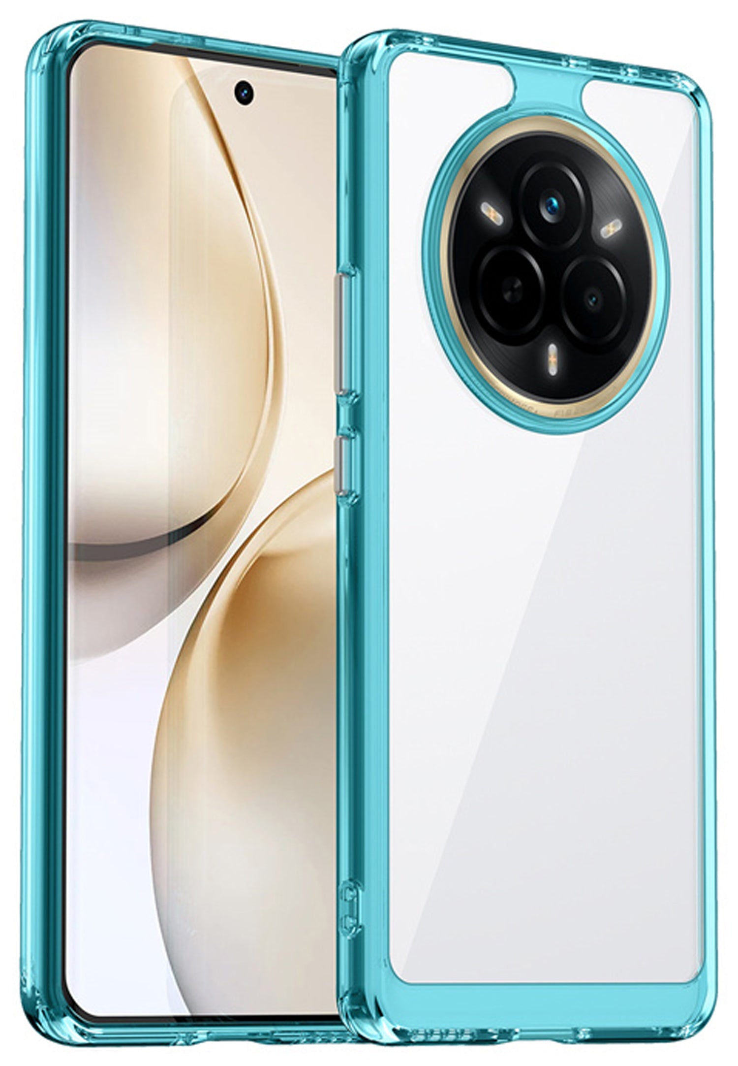 Mobizang Unicorn Acrylic Clear Back Cover For Realme 14 Pro 5G | Slim Shockproof [Military Grade Protection] Hybrid Bumper Case (Blue Sides)