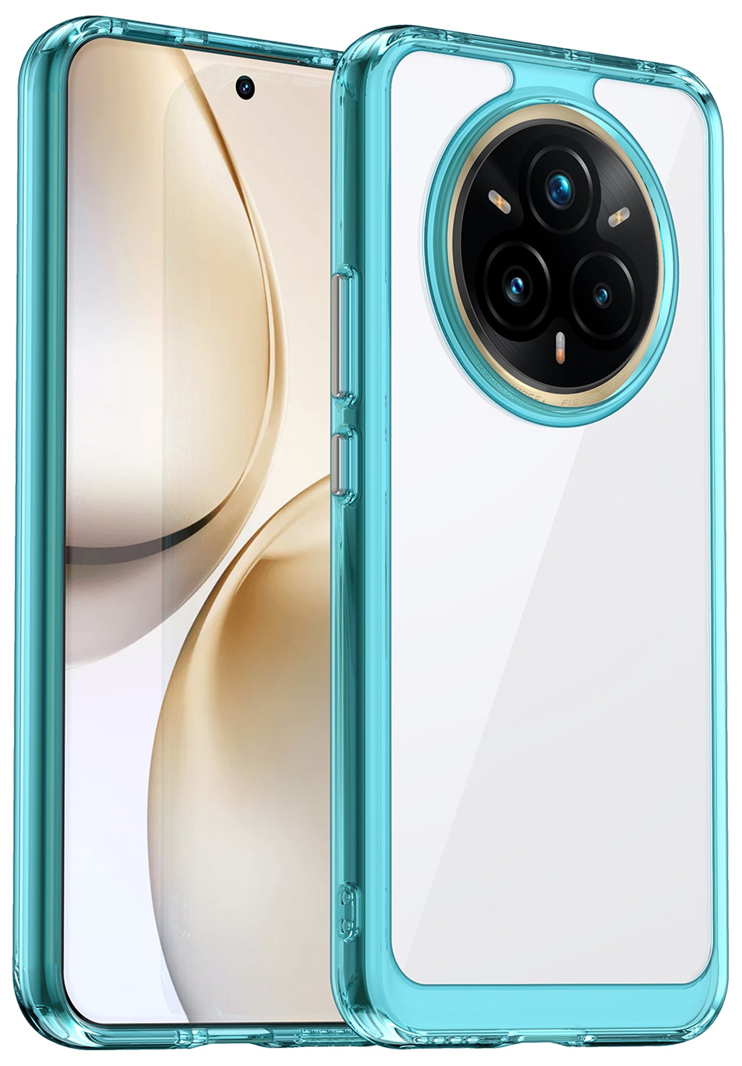 Mobizang Unicorn Acrylic Clear Back Cover For Realme 14 Pro+ (Plus) 5G | Slim Shockproof [Military Grade Protection] Hybrid Bumper Case (Blue Sides)
