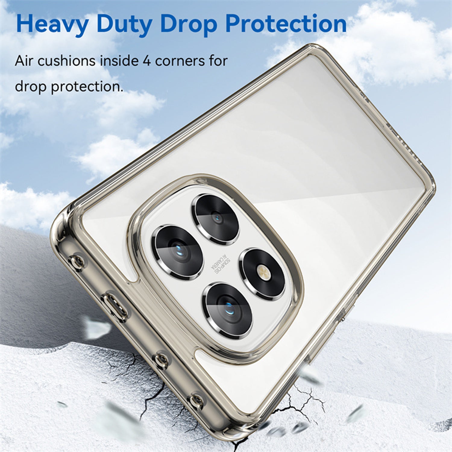 Mobizang Unicorn Acrylic Clear Back Cover For Redmi Note 14 Pro (5G) | Slim Shockproof [Military Grade Protection] Hybrid Bumper Case (Grey Sides)