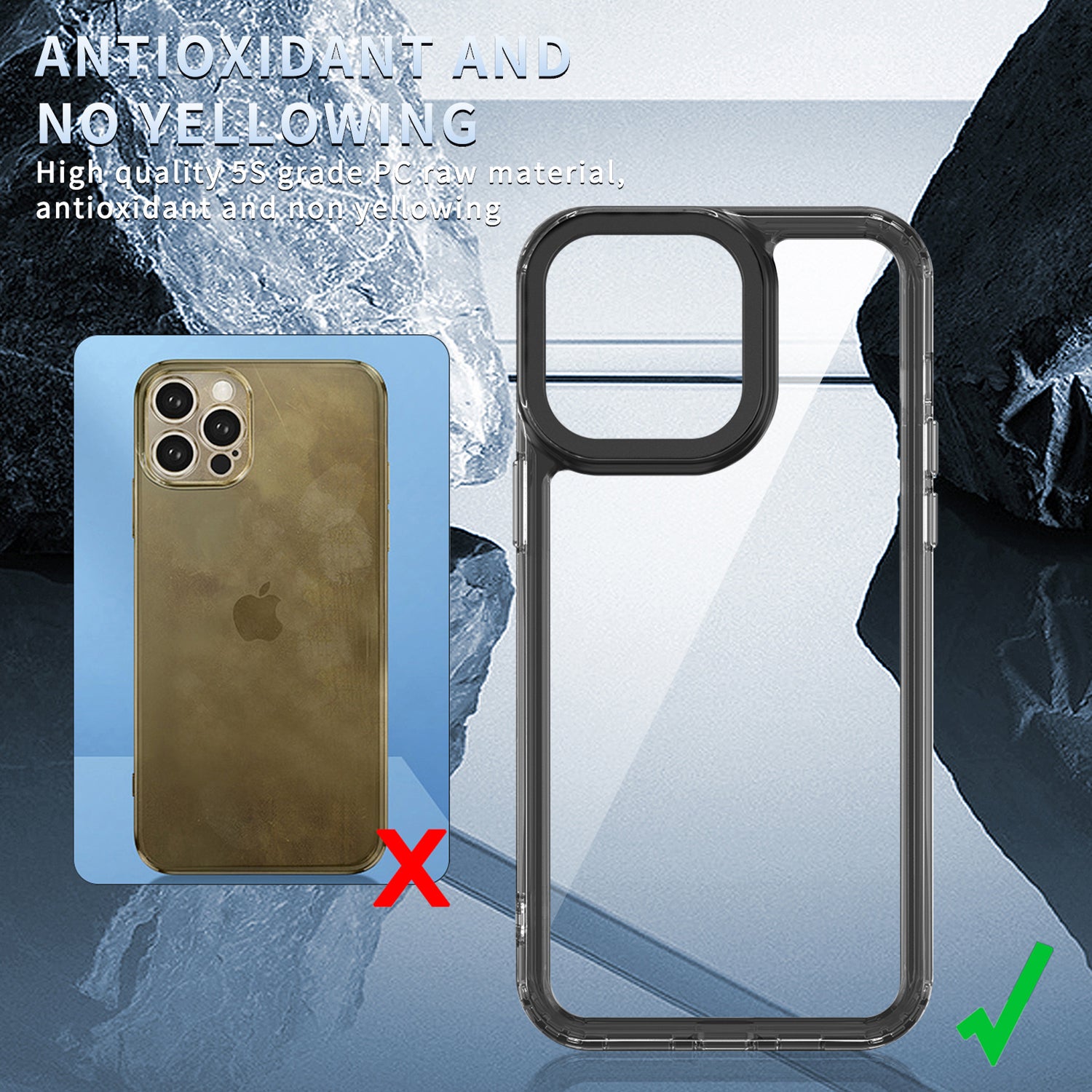 Mobizang Warrior Acrylic Clear Back Cover For Apple iPhone 15 Pro Max | Slim Shockproof [Military Grade Protection] Hybrid Bumper Case (Black Sides)