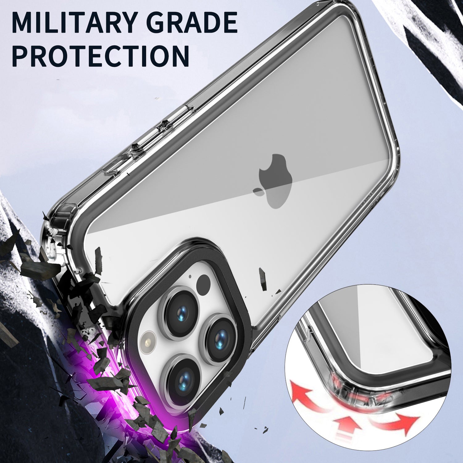 Mobizang Warrior Acrylic Clear Back Cover For Apple iPhone 16 Pro | Slim Shockproof [Military Grade Protection] Hybrid Bumper Case (Grey Sides)