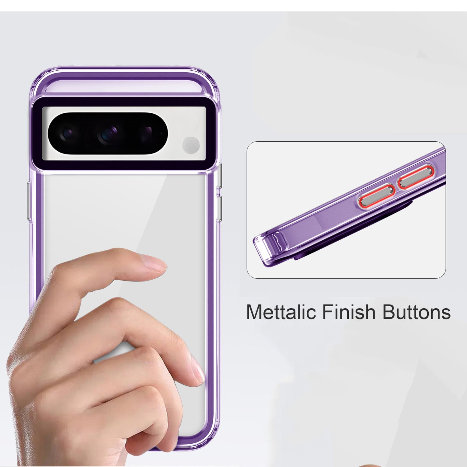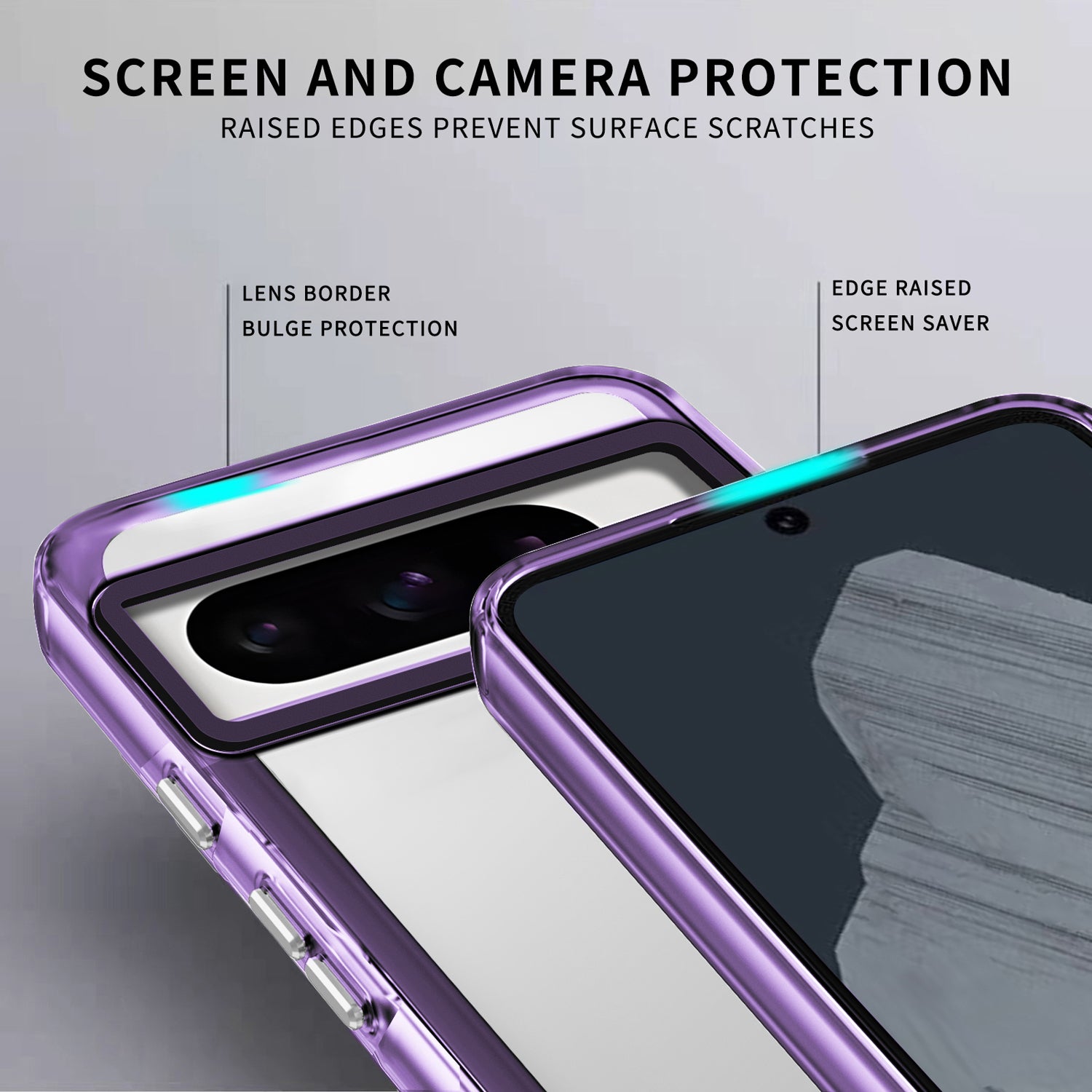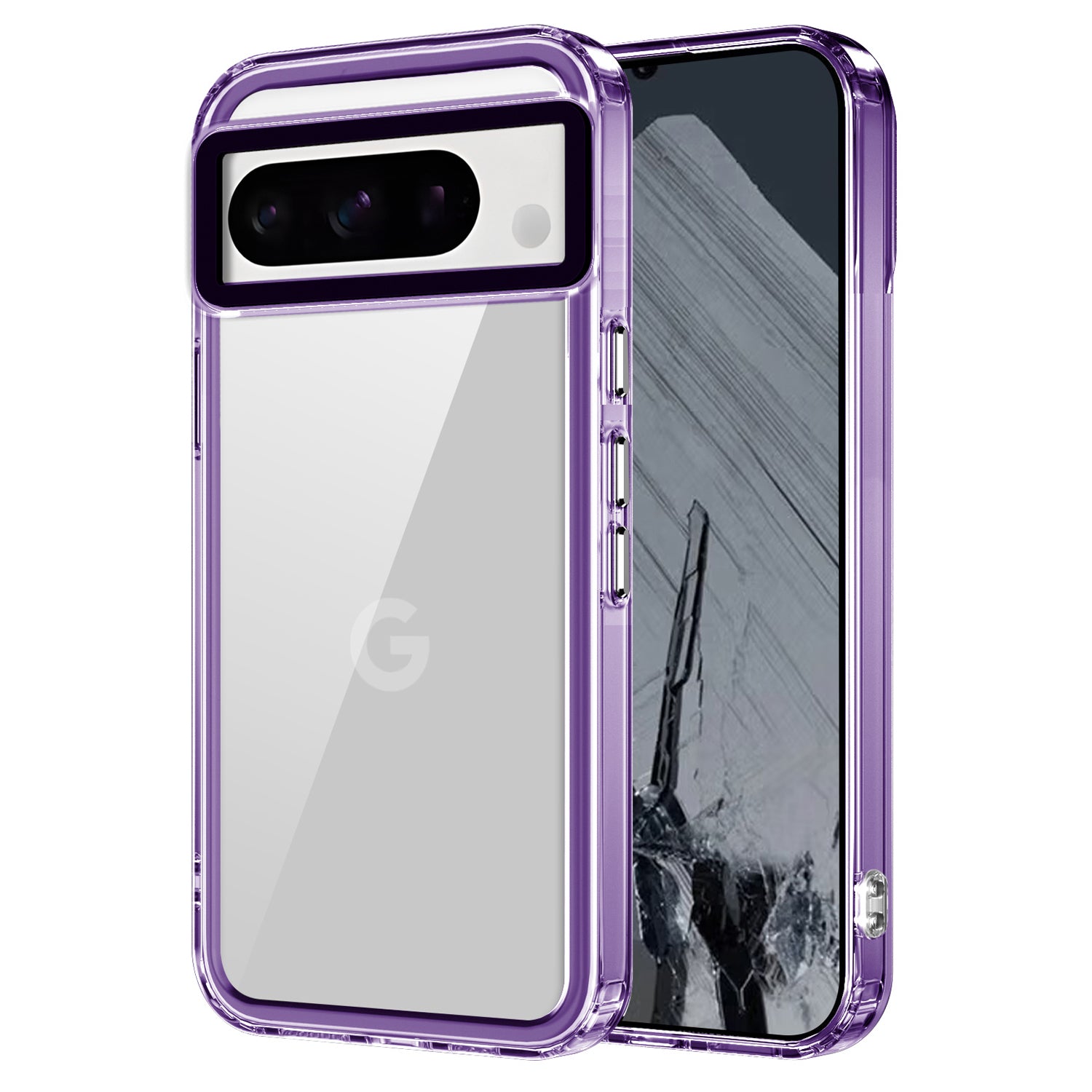 Mobizang Warrior Acrylic Clear Back Cover For Google Pixel 8 PRO | Slim Shockproof [Military Grade Protection] Hybrid Bumper Case (Purple Sides)