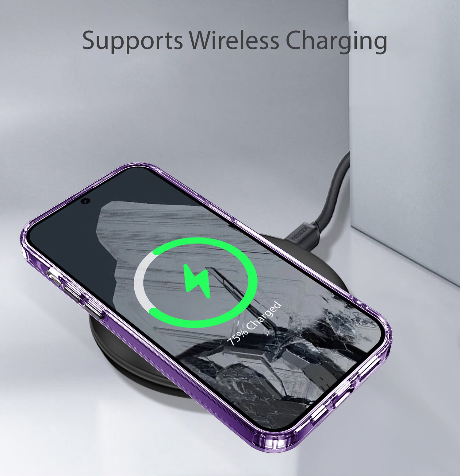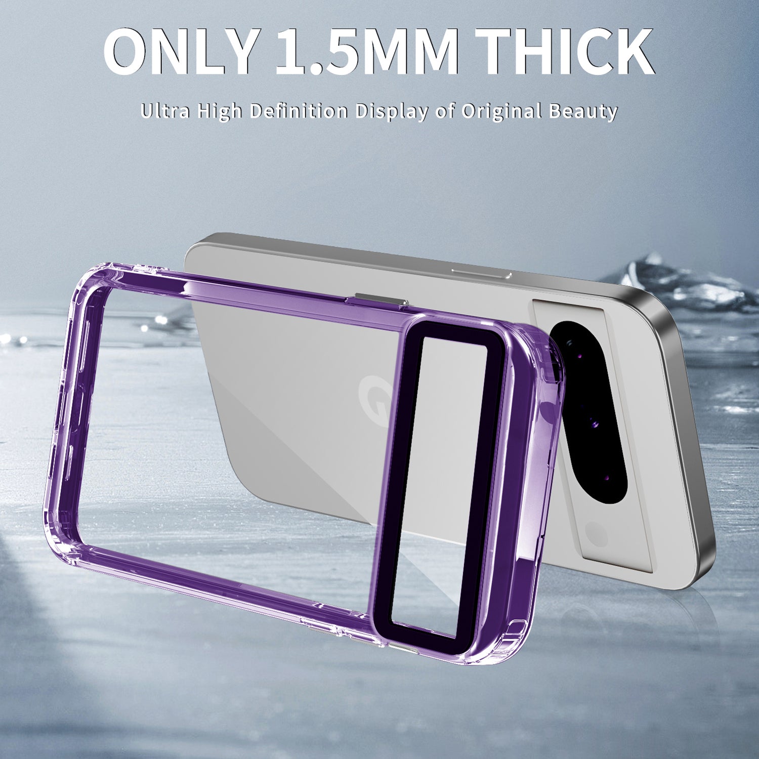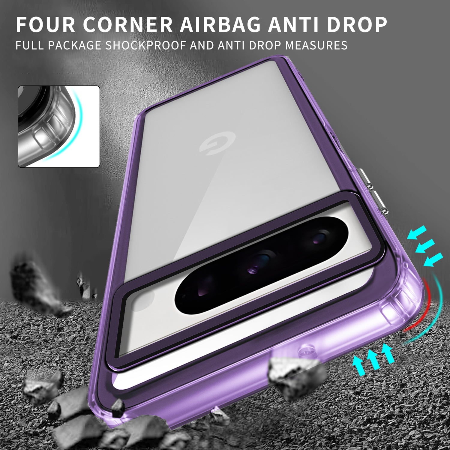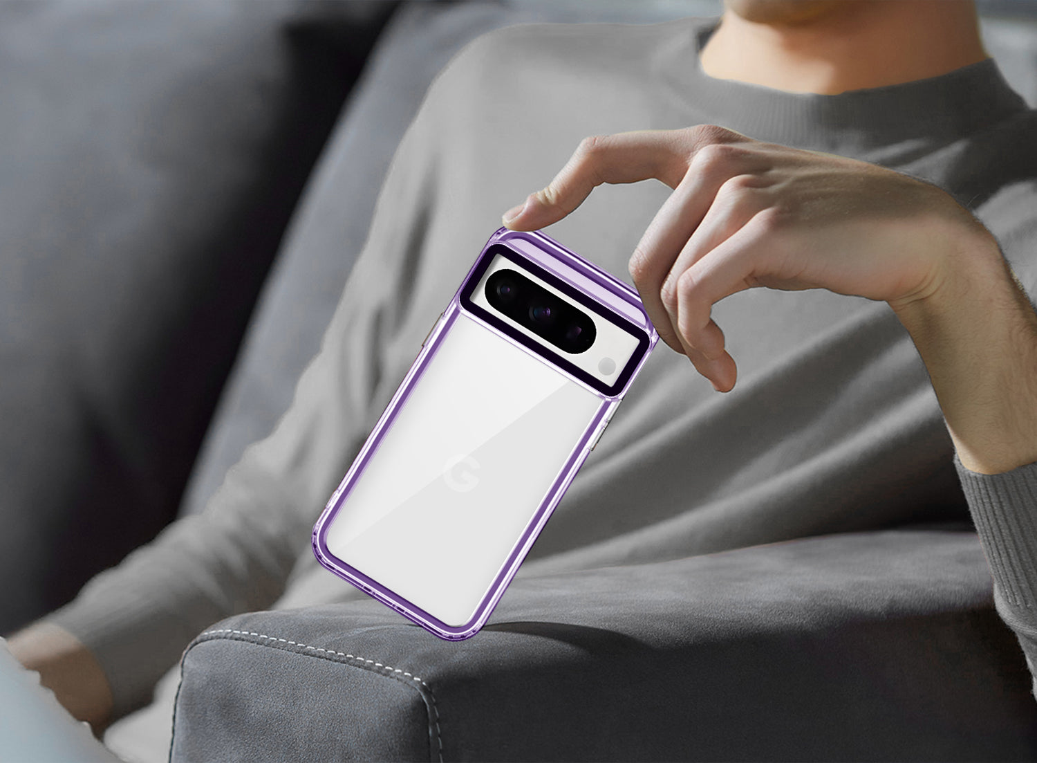 Mobizang Warrior Acrylic Clear Back Cover For Google Pixel 8 PRO | Slim Shockproof [Military Grade Protection] Hybrid Bumper Case (Purple Sides)