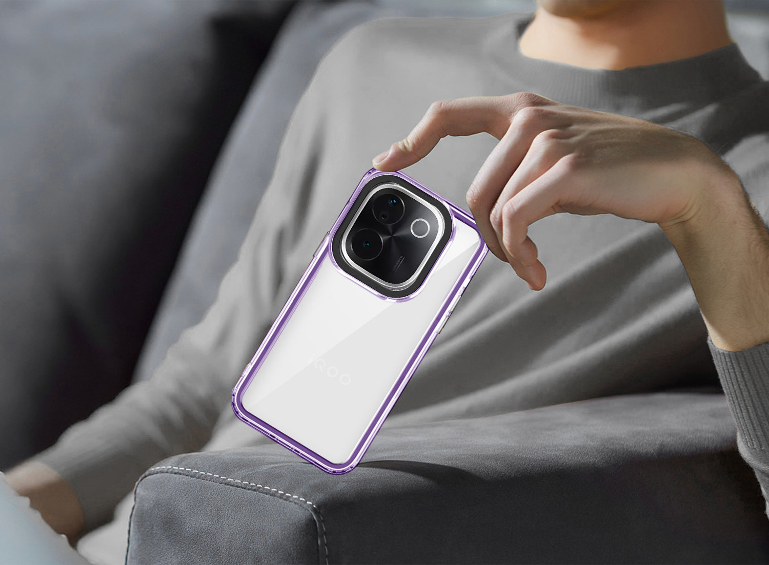 Mobizang Warrior Acrylic Clear Back Cover For Iqoo Z9S Pro (5G) | Slim Shockproof [Military Grade Protection] Hybrid Bumper Case (Purple Sides)