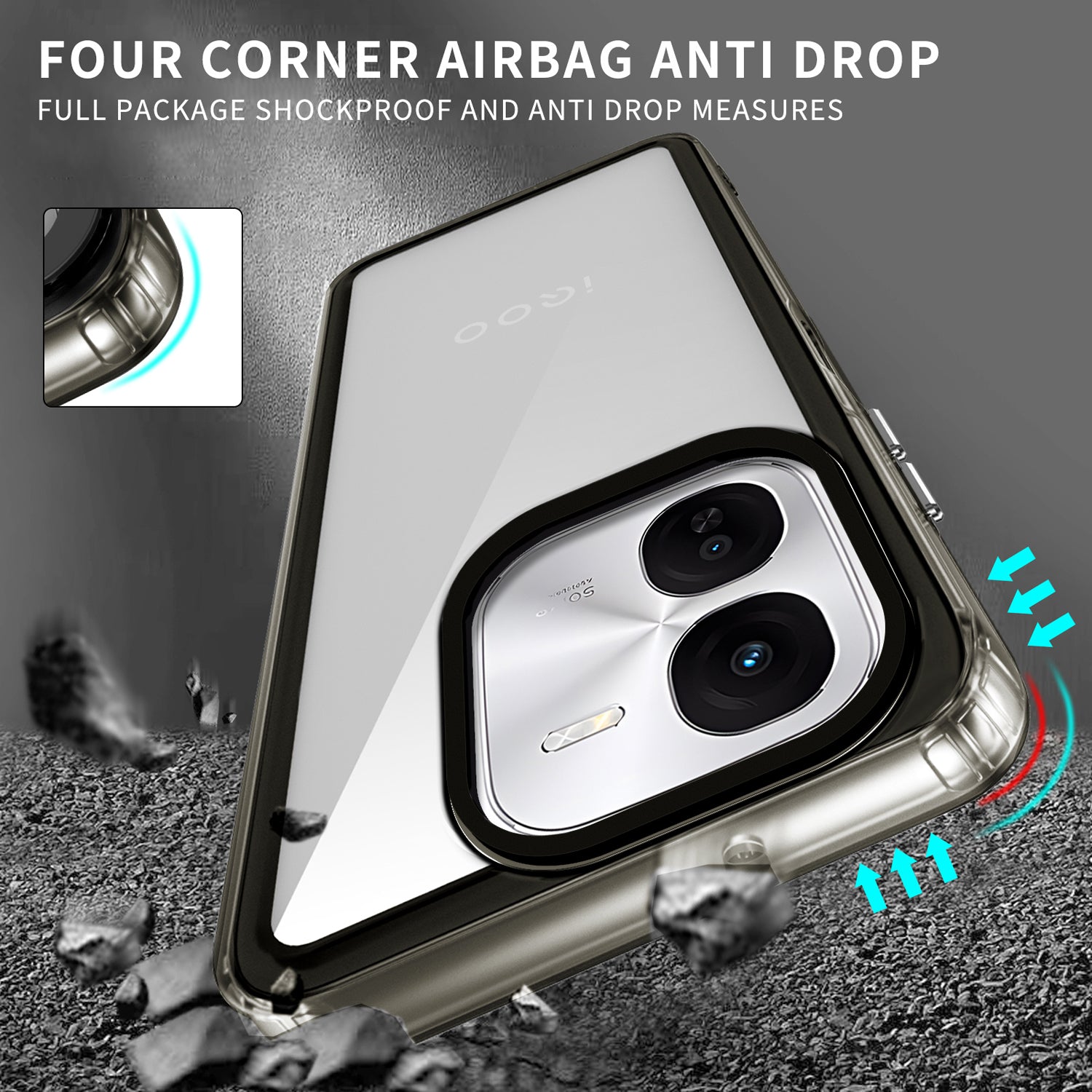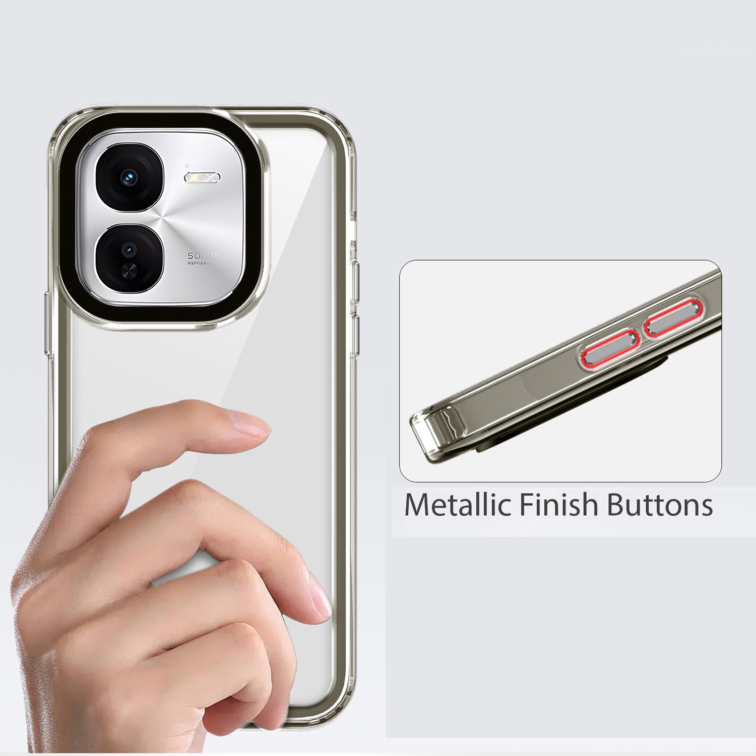 Mobizang Warrior Acrylic Clear Back Cover For IQOO Z9X | Slim Shockproof [Military Grade Protection] Hybrid Bumper Case (Grey Sides)