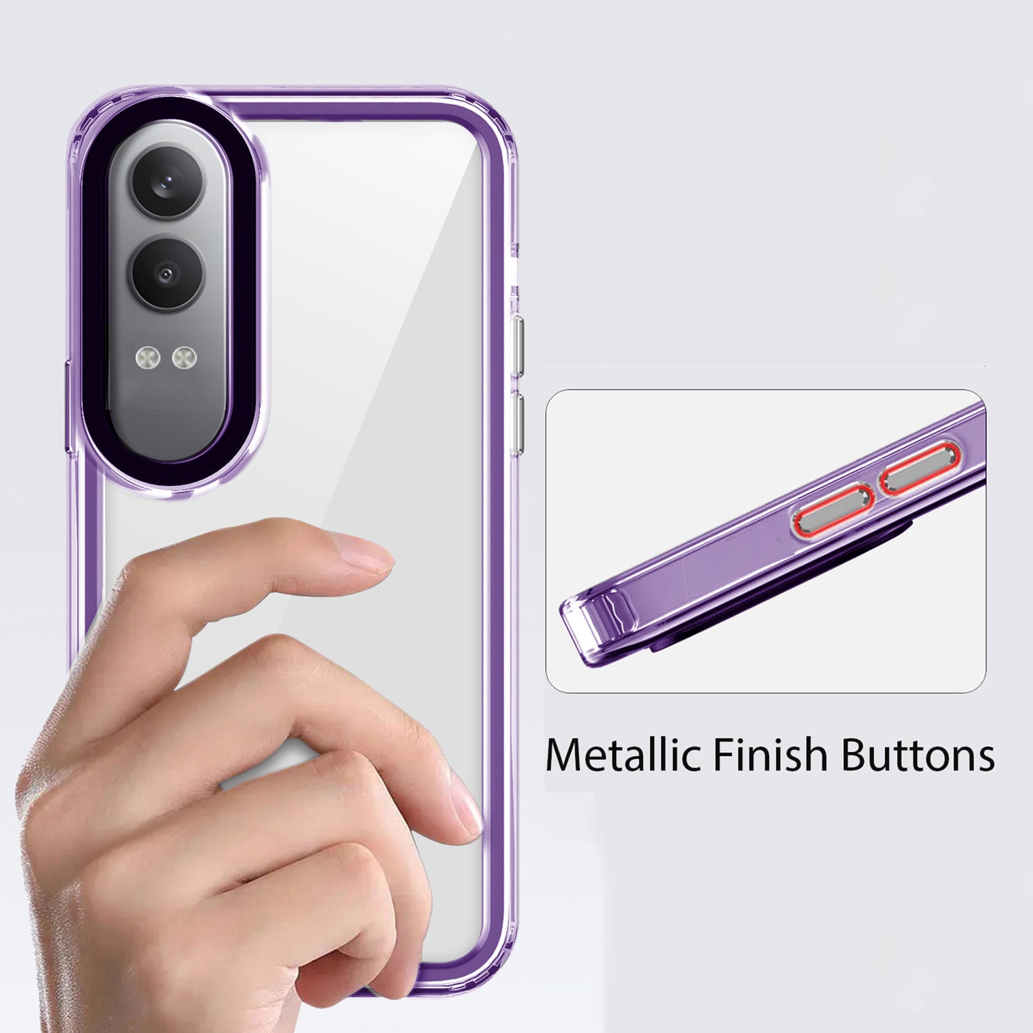 Mobizang Warrior Acrylic Clear Back Cover For OnePlus Nord CE 4 Lite | Slim Shockproof [Military Grade Protection] Hybrid Bumper Case (Purple Sides)