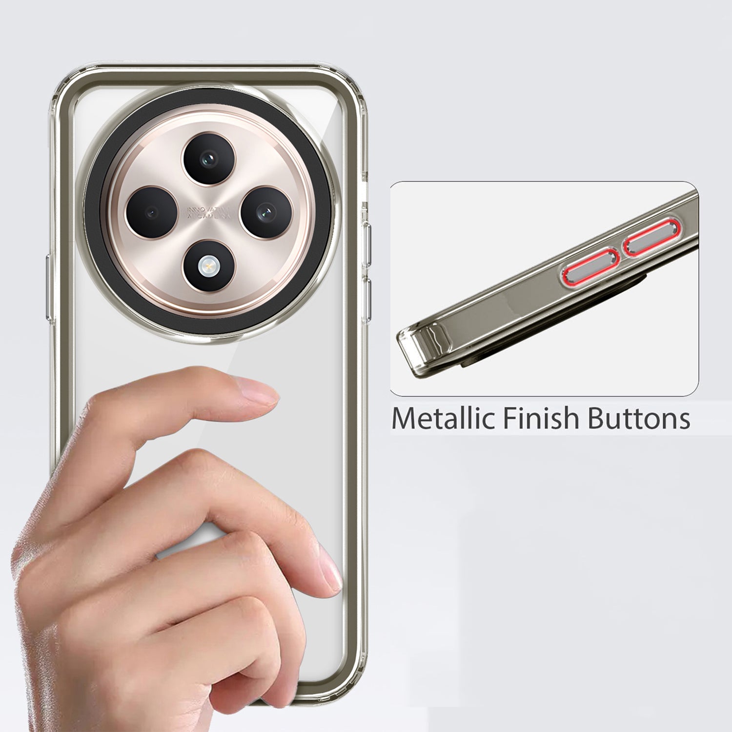 Mobizang Warrior Acrylic Clear Back Cover For Oppo F27 Pro / Oppo F27 Pro Plus | Slim Shockproof [Military Grade Protection] Hybrid Bumper Case (Grey Sides)