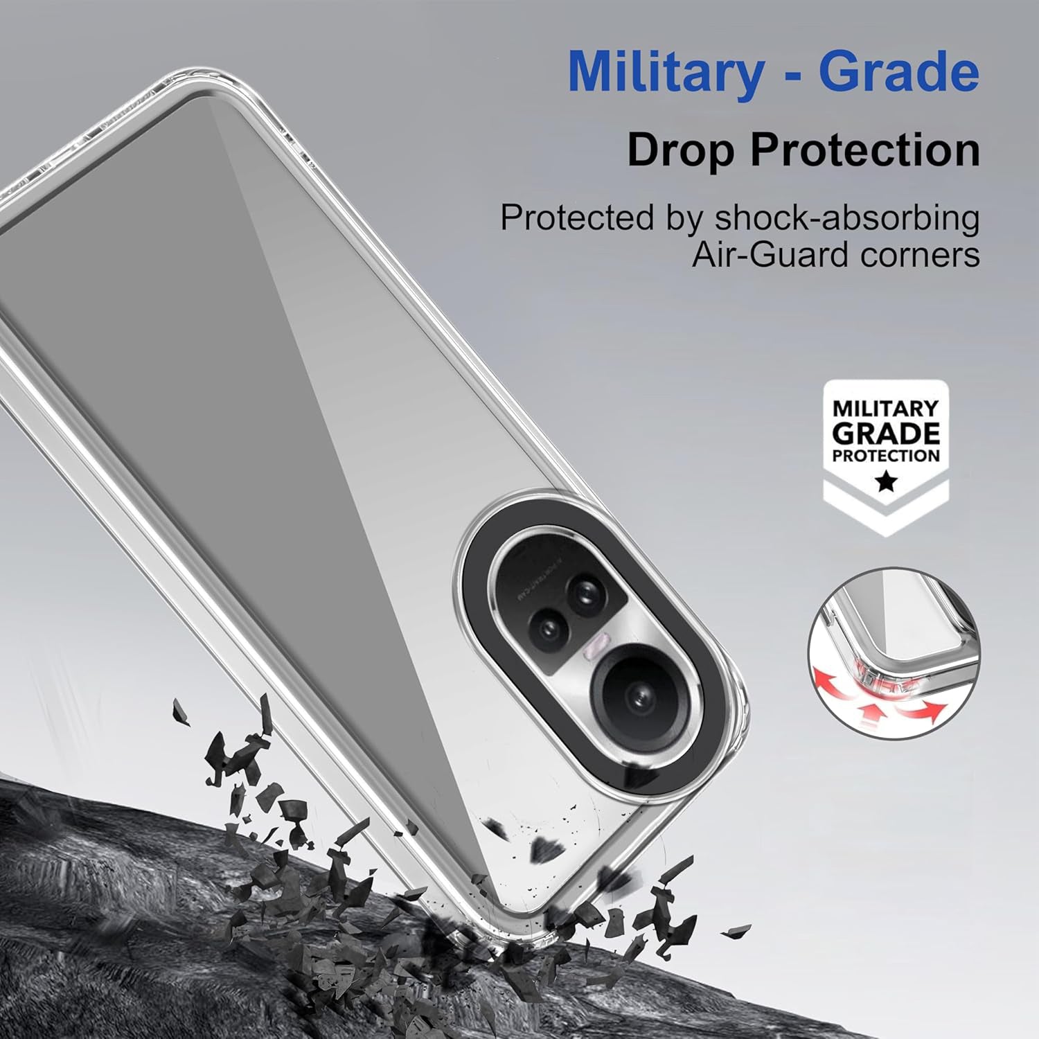 Mobizang Warrior Acrylic Clear Back Cover For Oppo Reno 10 / Reno 10 PRO | Slim Shockproof [Military Grade Protection] Hybrid Bumper Case (Transparent Sides)