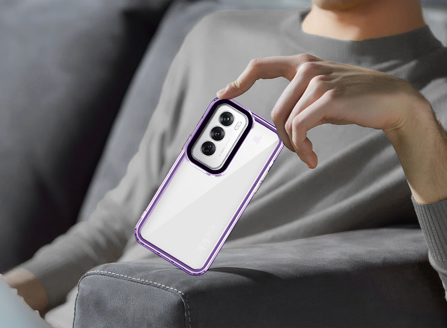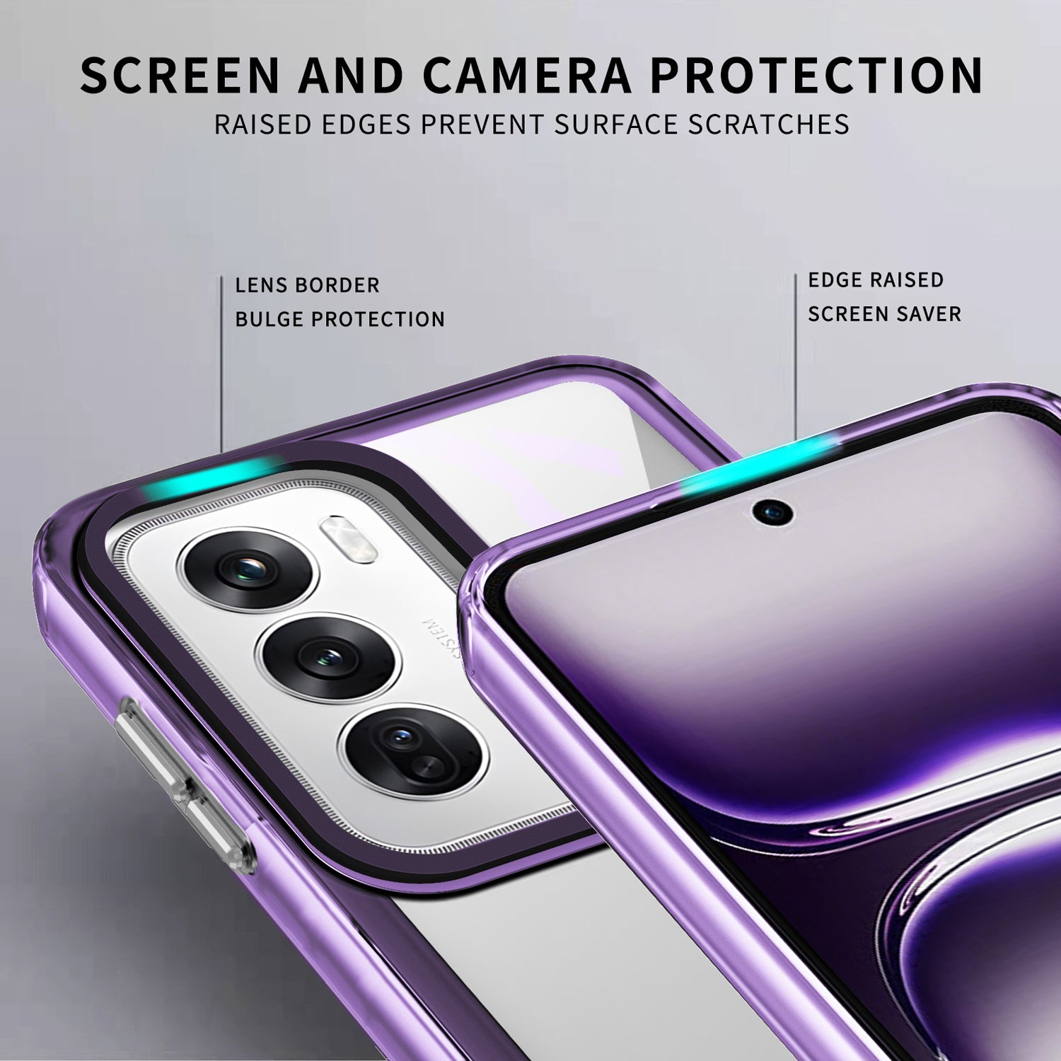 Mobizang Warrior Acrylic Clear Back Cover For Oppo Reno 12 Pro (5G) | Slim Shockproof [Military Grade Protection] Hybrid Bumper Case (Purple Sides)