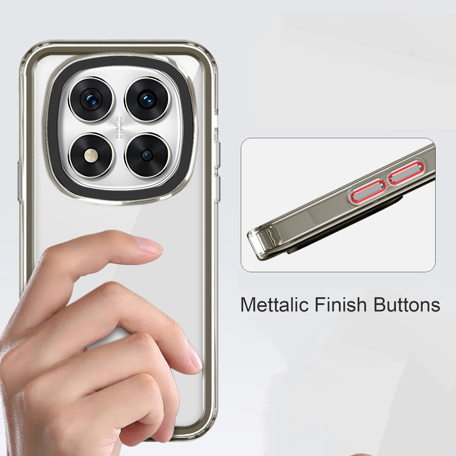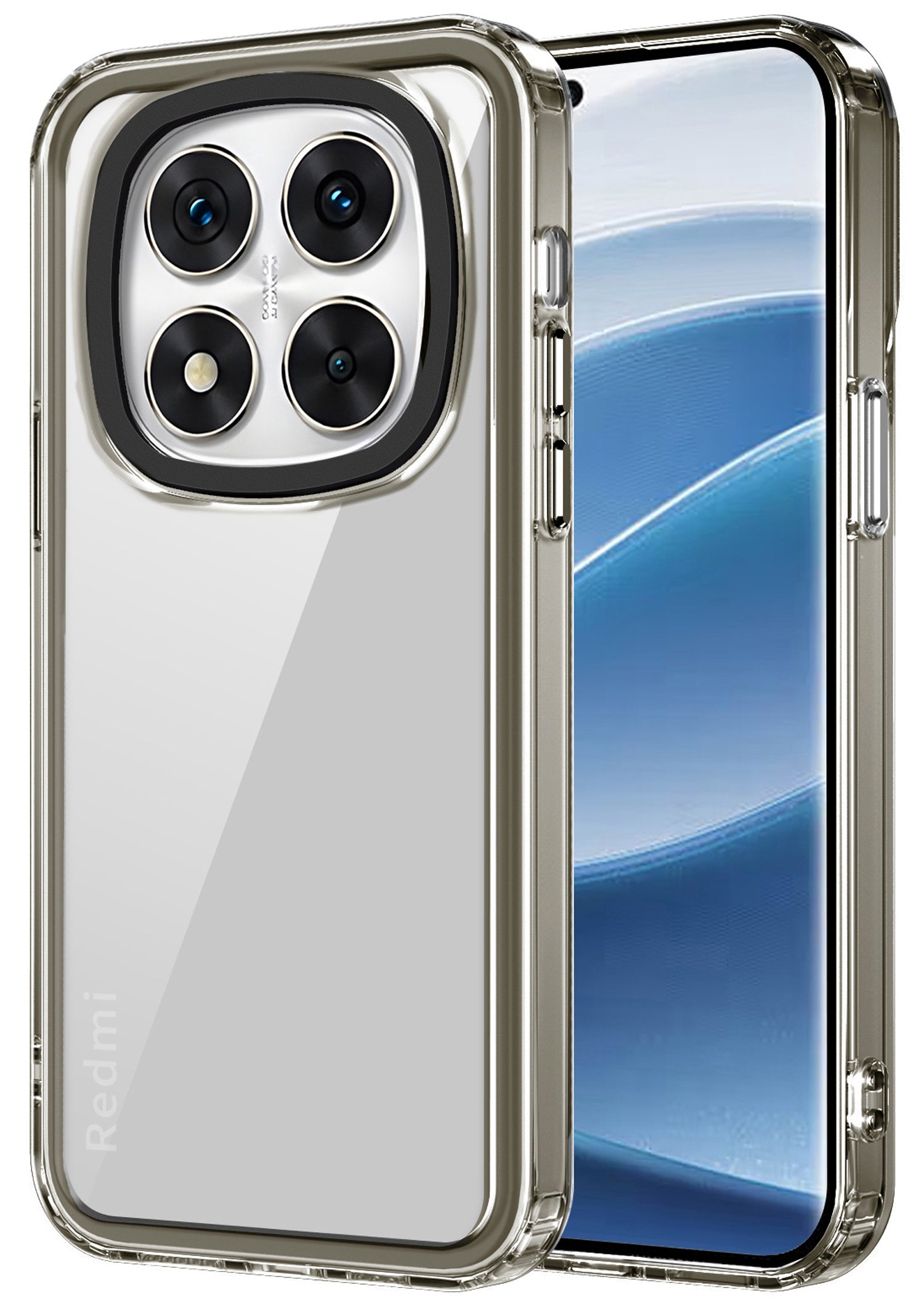 Mobizang Warrior Acrylic Clear Back Cover For Redmi Note 14 Pro (5G) | Slim Shockproof [Military Grade Protection] Hybrid Bumper Case (Grey Sides)