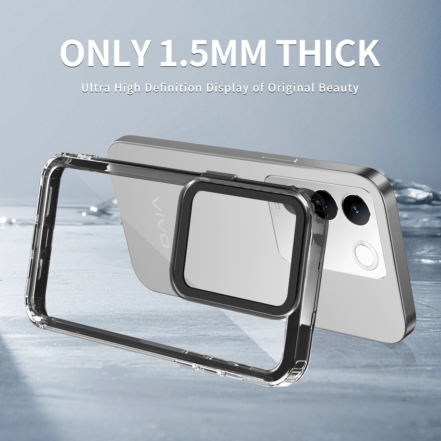 Mobizang Warrior Acrylic Clear Back Cover For Vivo V27 (5G) / Vivo V27 PRO (5G) | Slim Shockproof [Military Grade Protection] Hybrid Bumper Case (Black Sides)