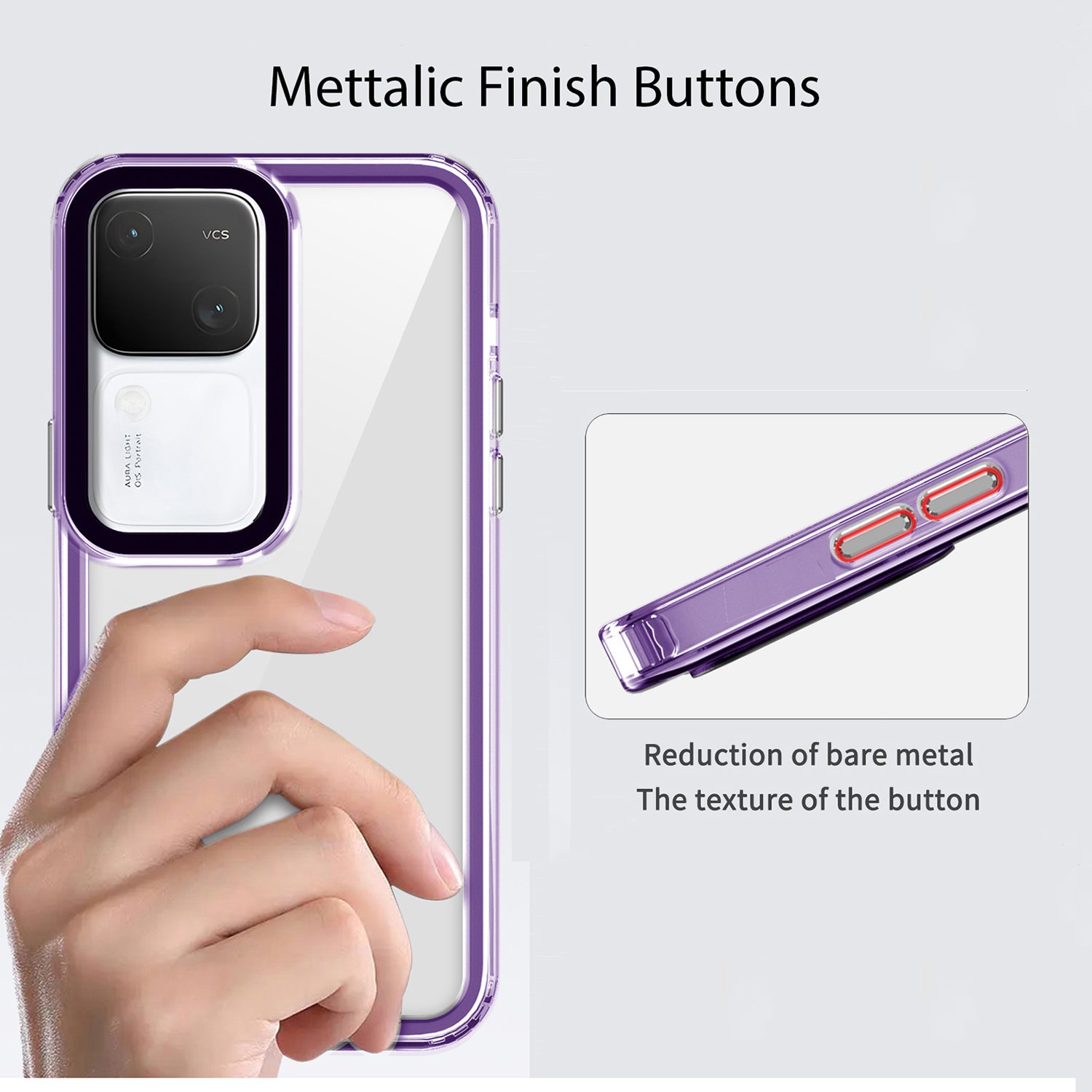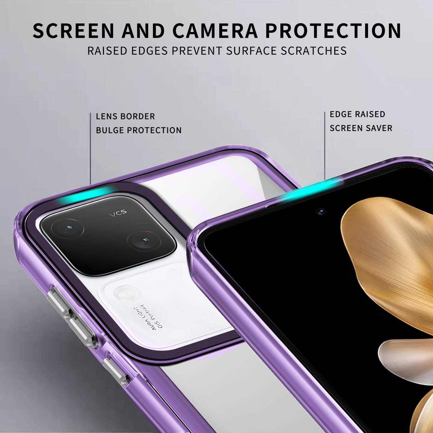 Mobizang Warrior Acrylic Clear Back Cover For Vivo V30 / V30 PRO | Slim Shockproof [Military Grade Protection] Hybrid Bumper Case (Purple Sides)