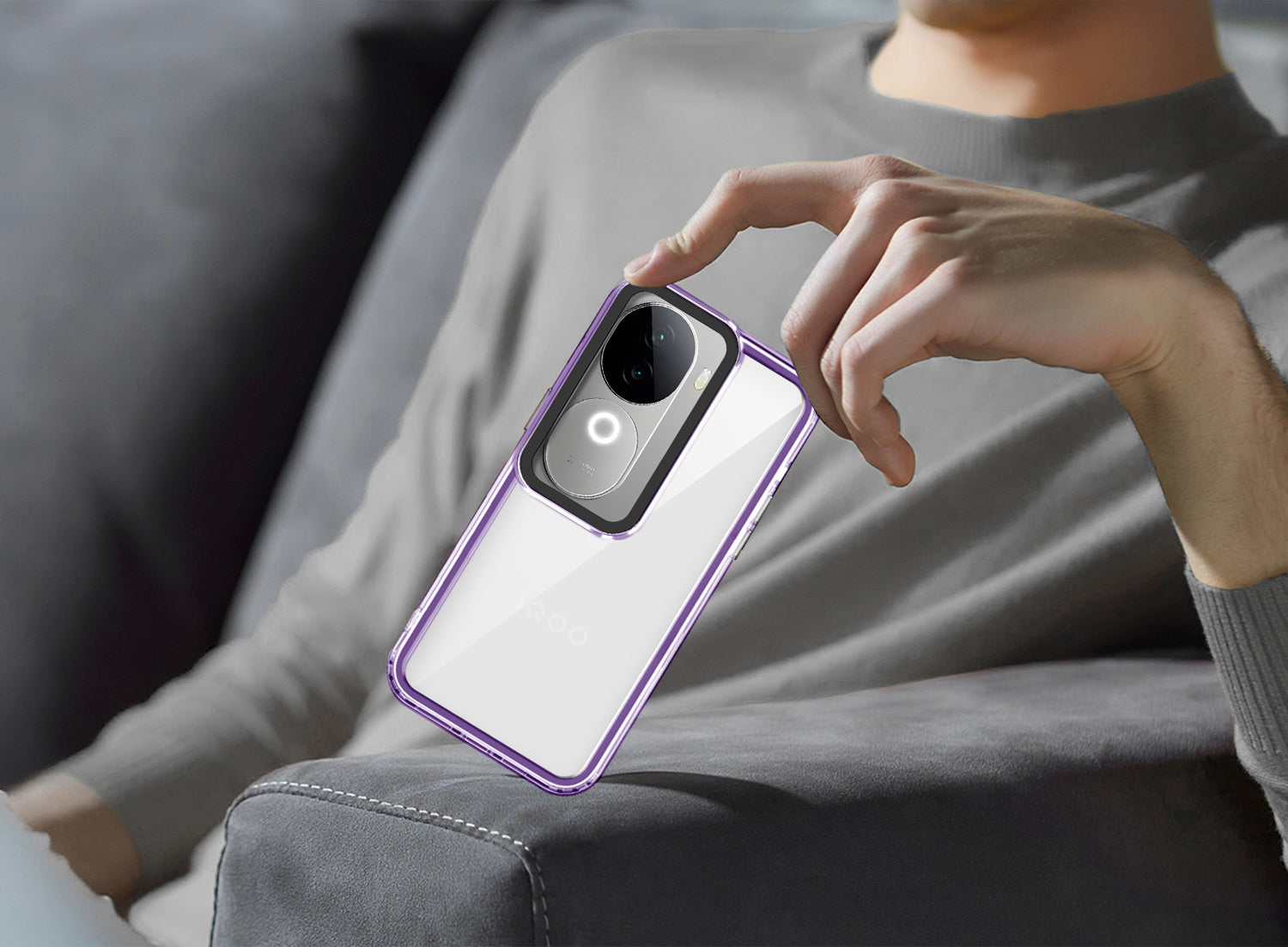 Mobizang Warrior Acrylic Clear Back Cover For Vivo V40E / iQOO Z9S | Slim Shockproof [Military Grade Protection] Hybrid Bumper Case (Purple Sides)