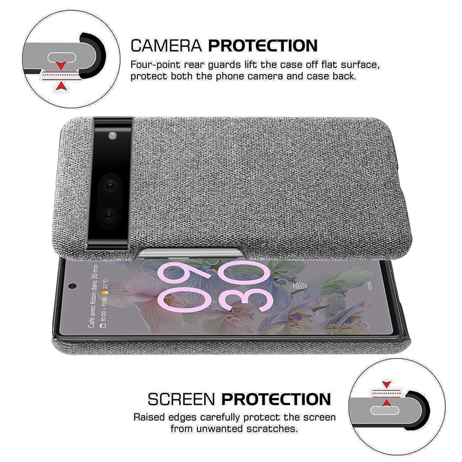 Mobizang Woven Soft Fabric Case for Google Pixel 7 Back Cover, Shock Protection Slim Hard Anti Slip Back Cover (Grey)