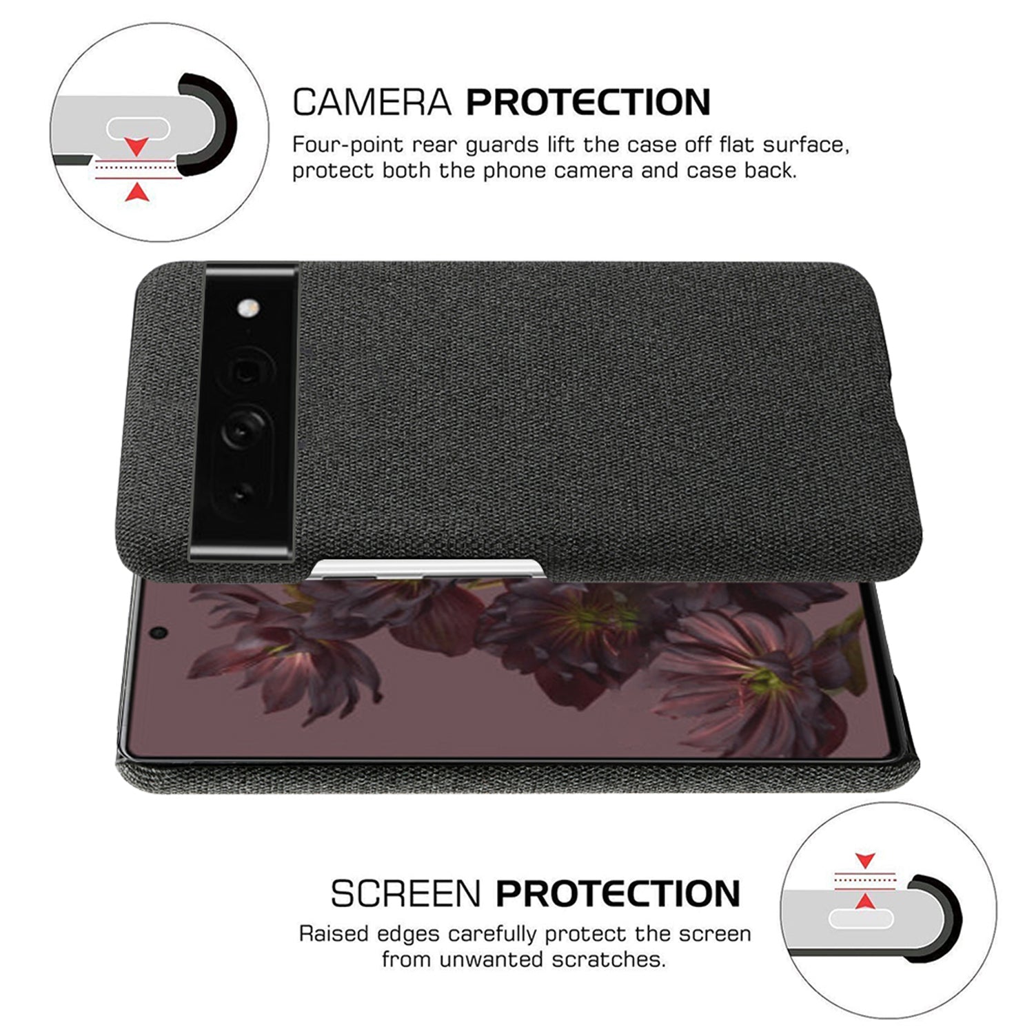 Mobizang Woven Soft Fabric Case for Google Pixel 7 Pro Back Cover, Shock Protection Slim Hard Anti Slip Back Cover (Black)
