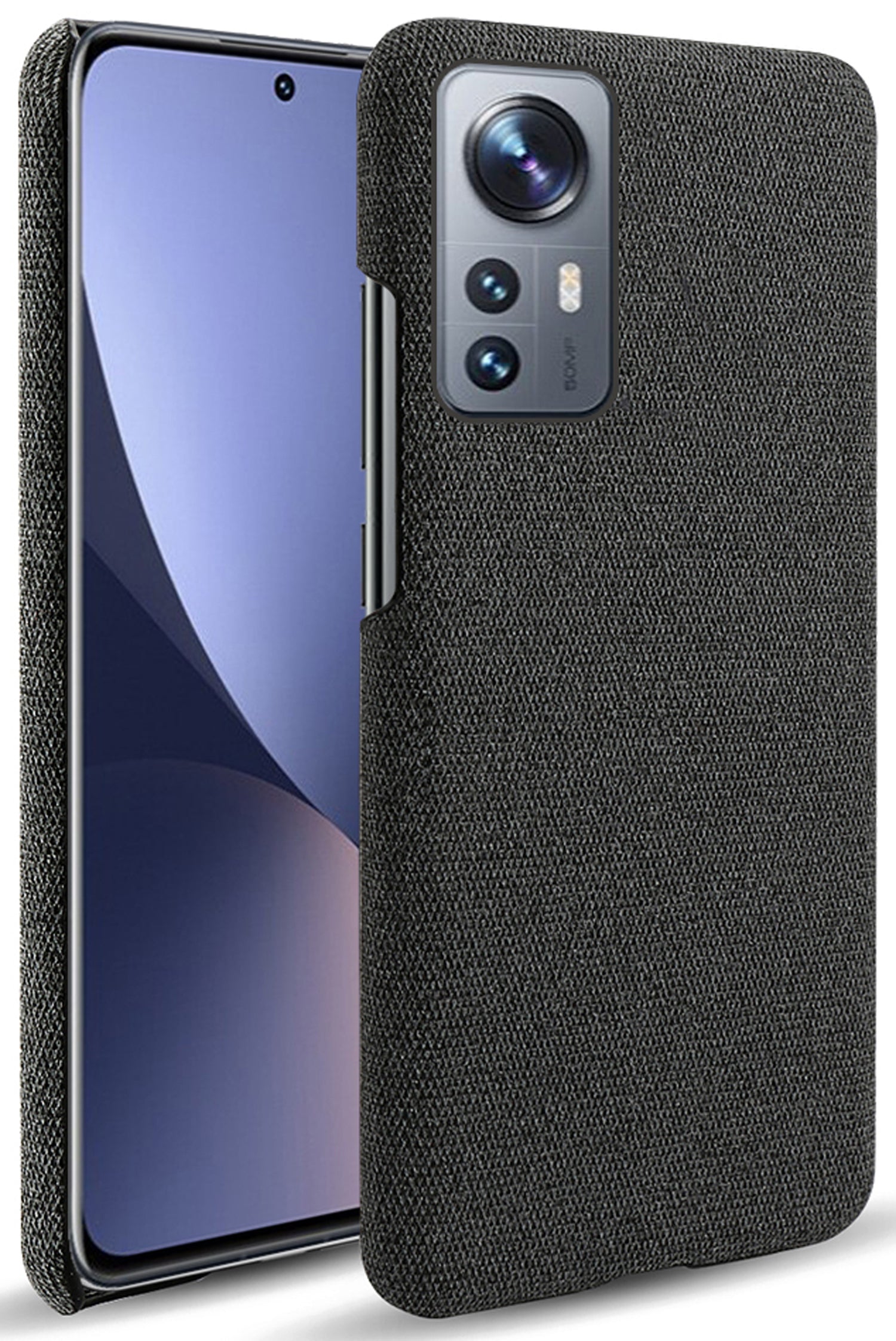 Mobizang Woven Soft Fabric Case for Xiaomi 12 Pro (5G) Back Cover, Shock Protection Slim Hard Anti Slip Back Cover (Black)
