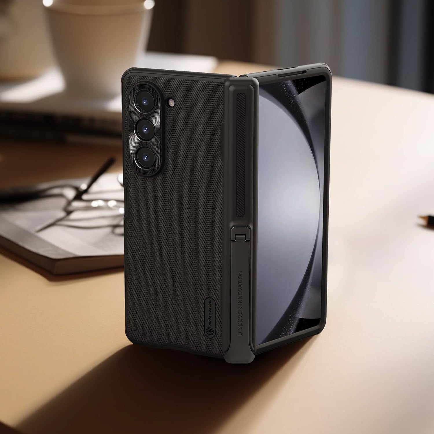 Nillkin Case For Samsung Galaxy Z Fold 5 | Hinge Protection, Hidden Kickstand & Metal Camera Lens Protector, Slim Fit Protective Phone Back Cover for Z Fold 5 (Black)