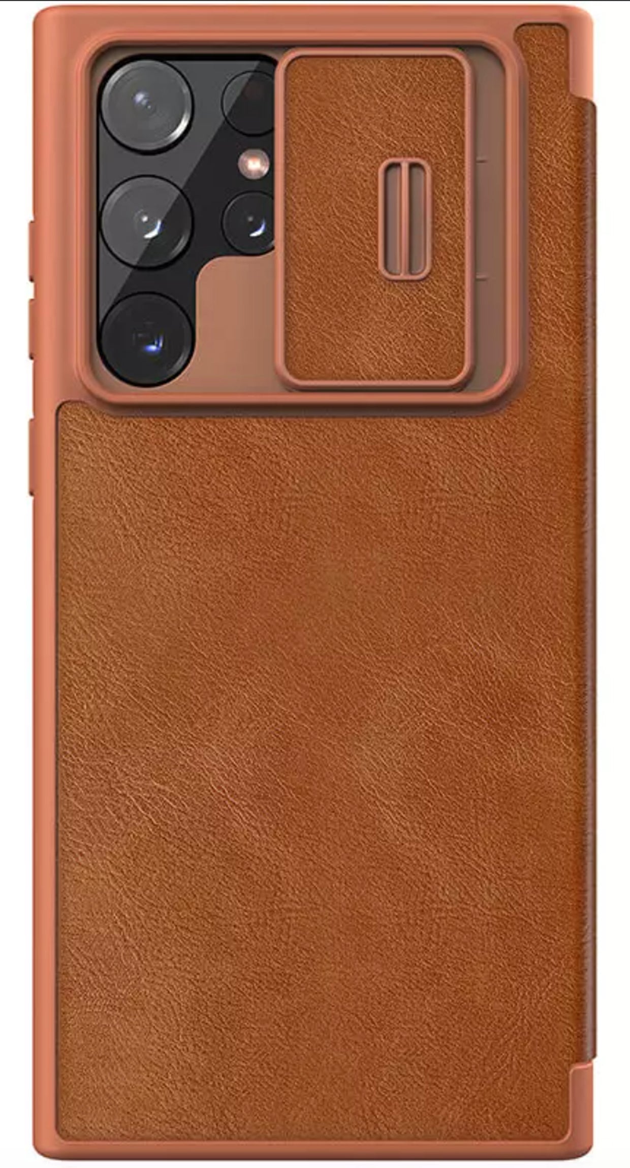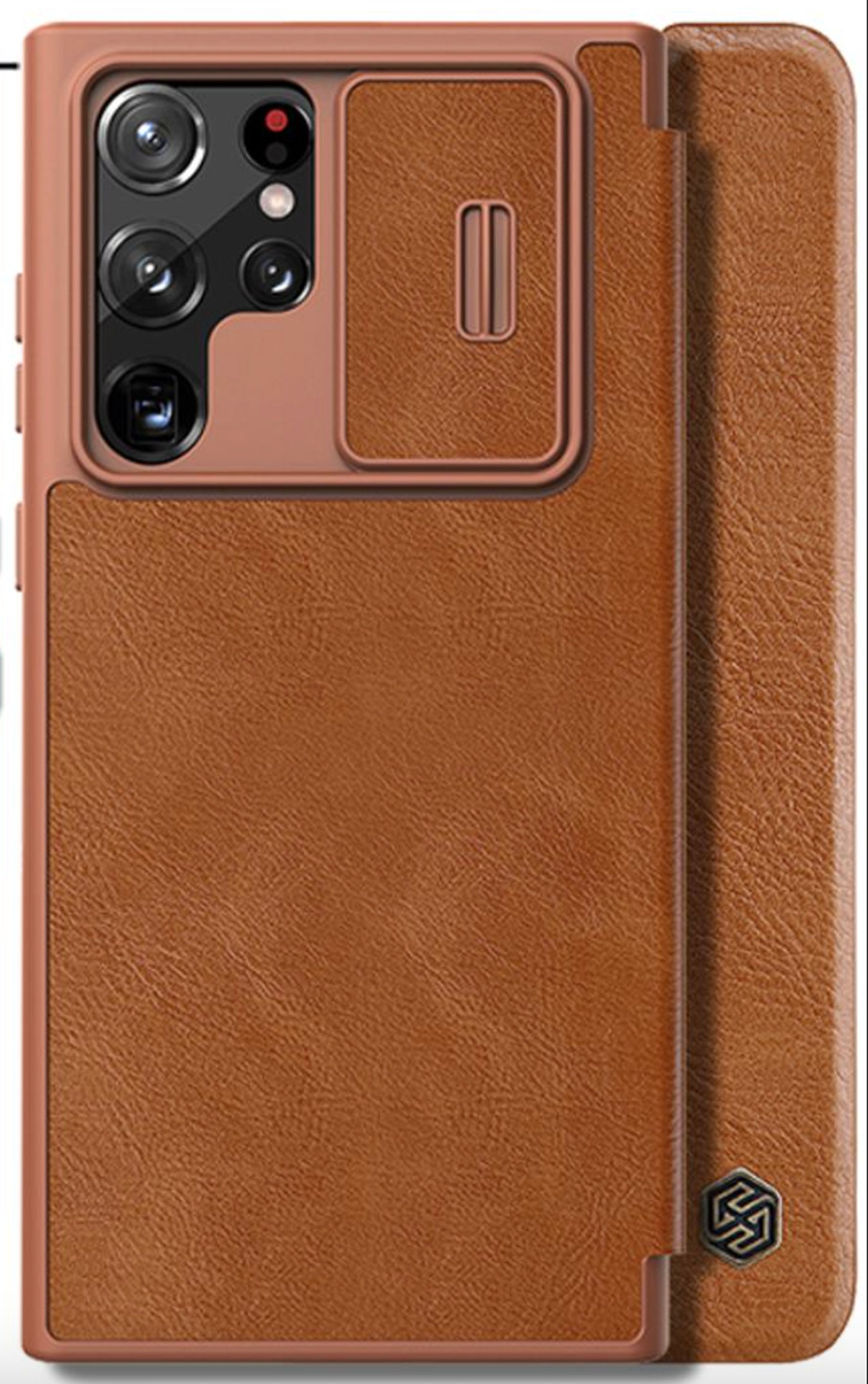Nillkin Qin Series Leather Flip Case Cover for Samsung Galaxy S22 Ultra (Brown)