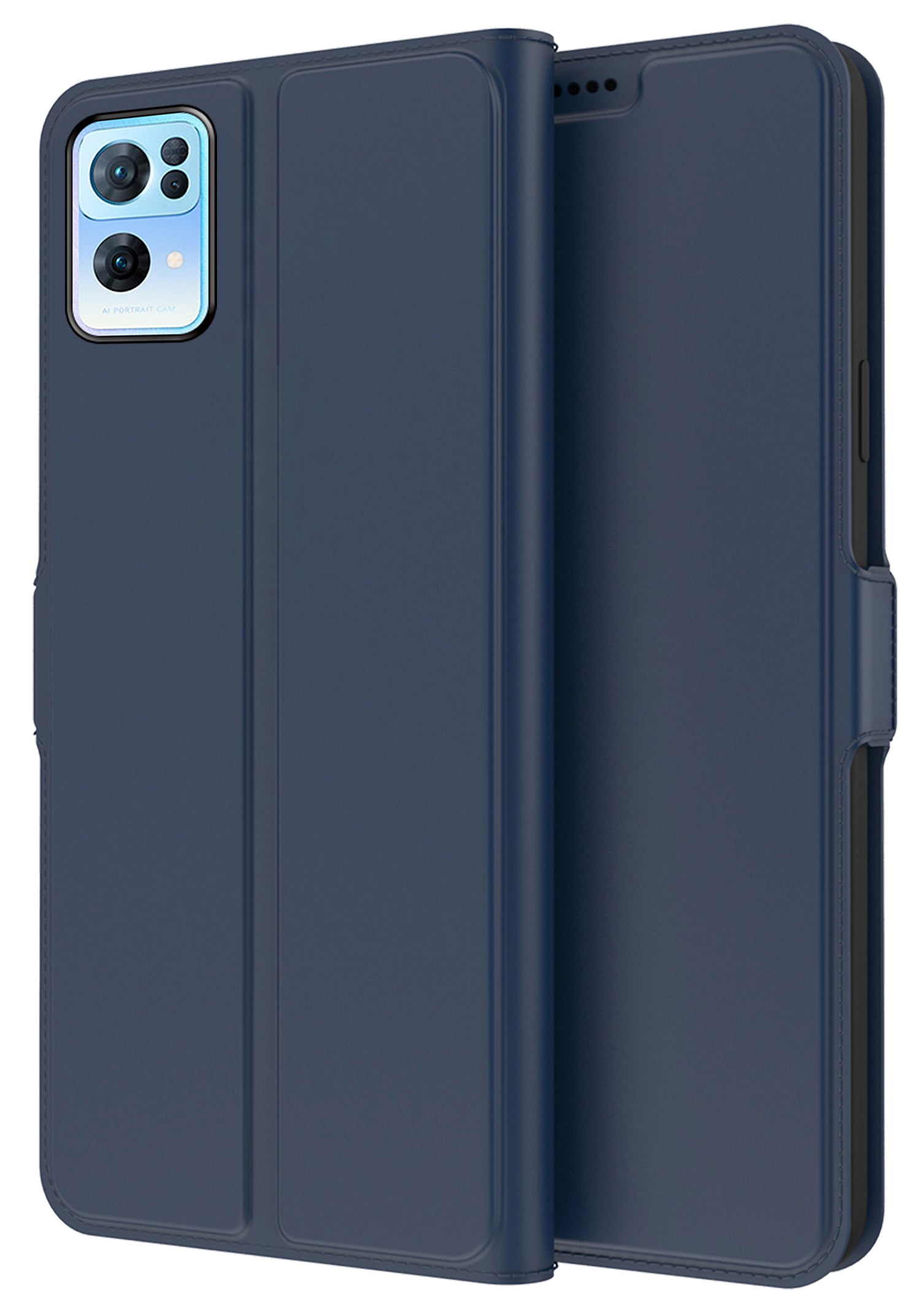 Noble Slim Flip Cover for Oppo Reno 7 Pro , Magnetic and Card Holder Stand Leather Flip Wallet Case (Blue)