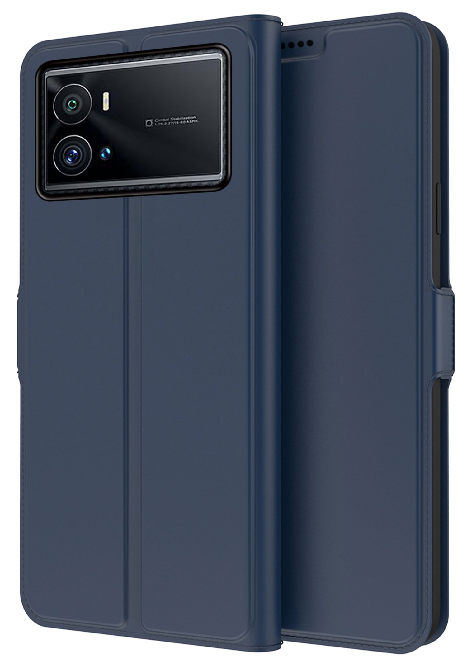 Noble Slim Flip Cover for Vivo IQOO 9 Pro , Magnetic and Card Holder Stand Leather Flip Wallet Case (Blue)