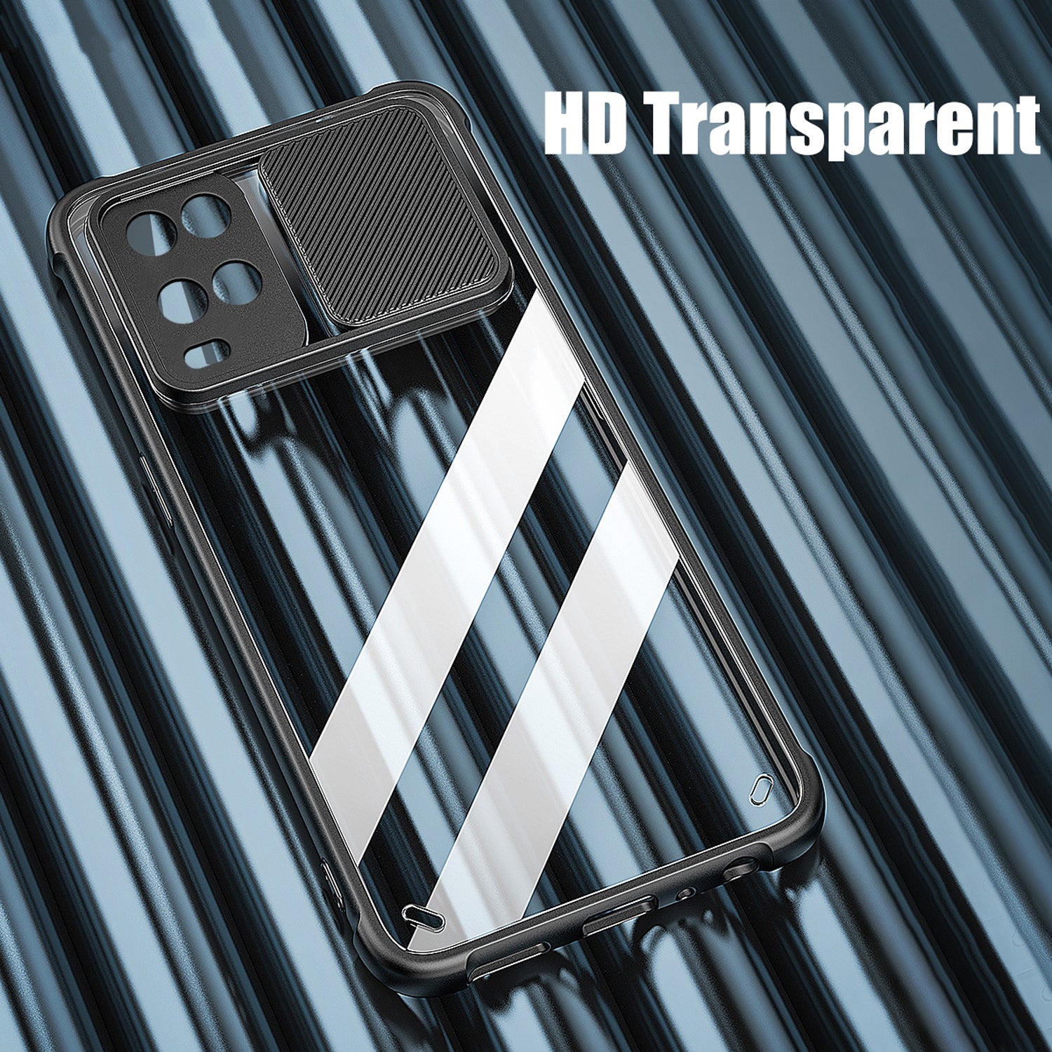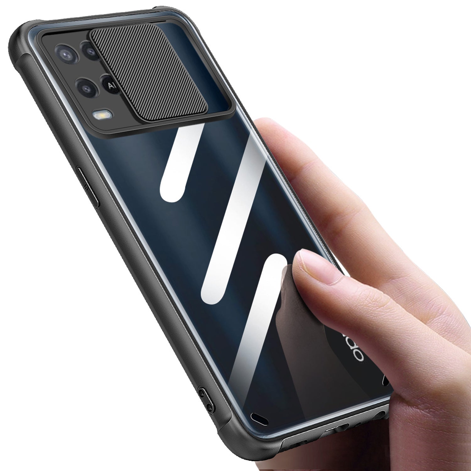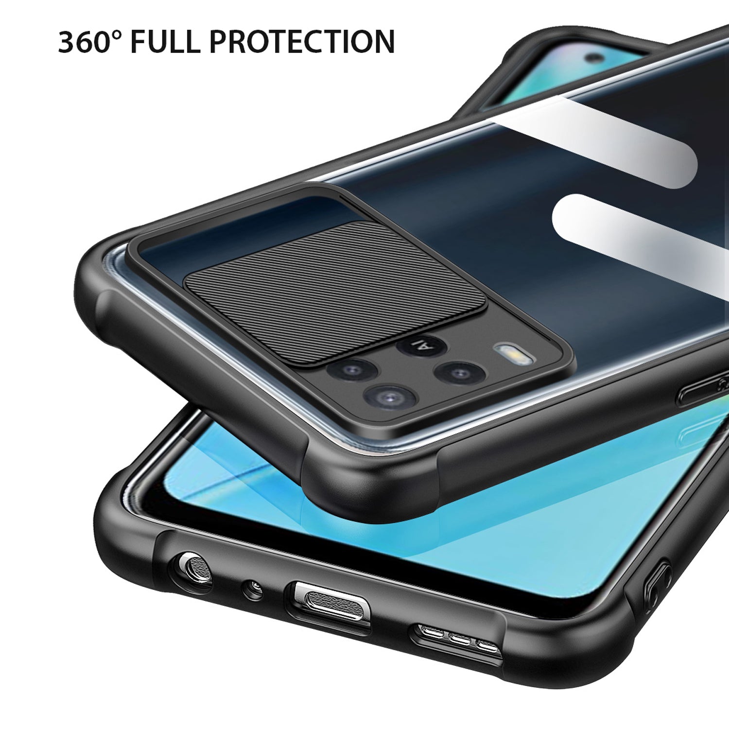Slider Back Cover for Oppo A54 , [Military Grade Protection] Shockproof Slim Clear Camera Shield Bumper Back Case (Black)