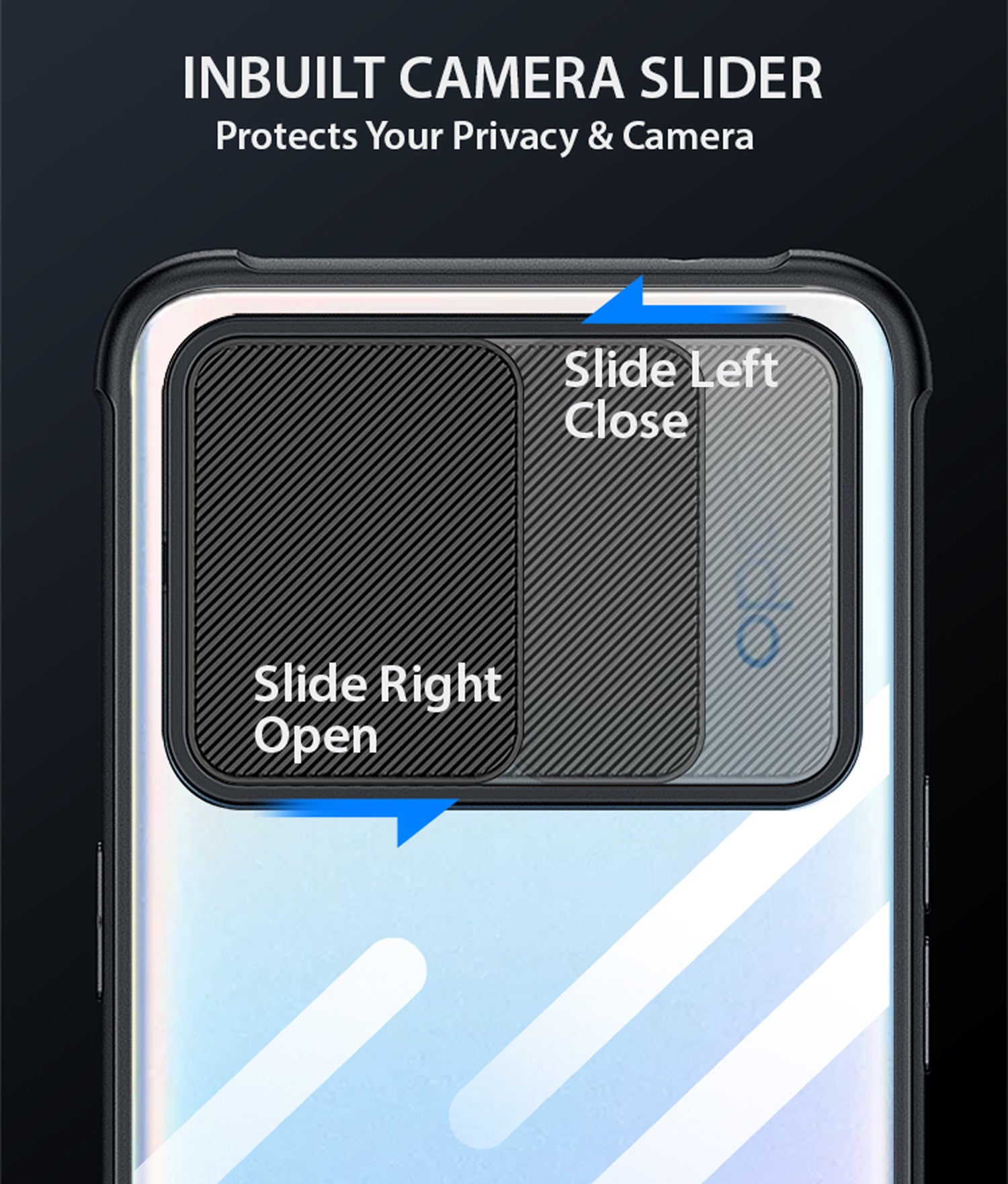 Slider Back Cover for Oppo Reno 5 PRO , [Military Grade Protection] Shockproof Slim Clear Camera Shield Bumper Back Case (Black)