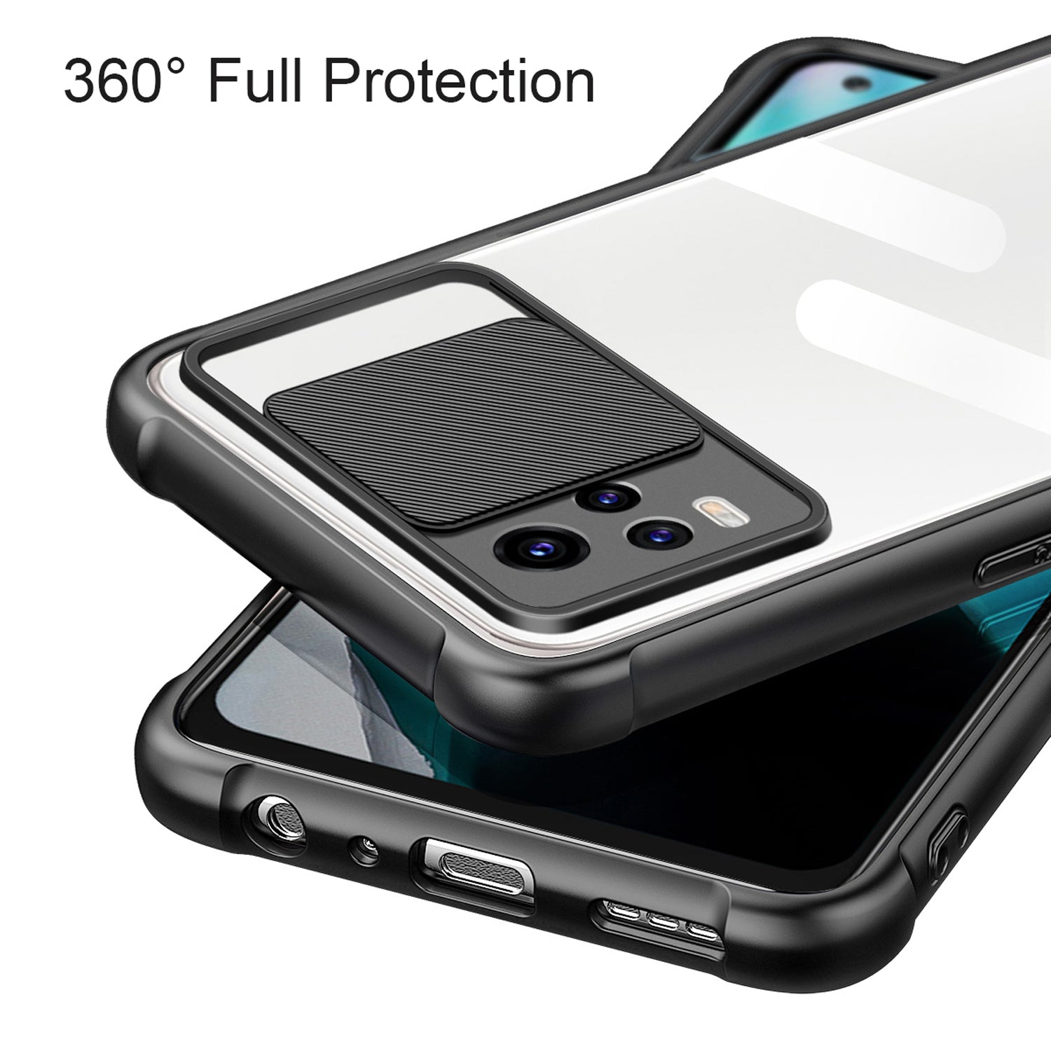 Slider Back Cover for Vivo V20 Pro , [Military Grade Protection] Shockproof Slim Clear Camera Shield Bumper Back Case (Black)