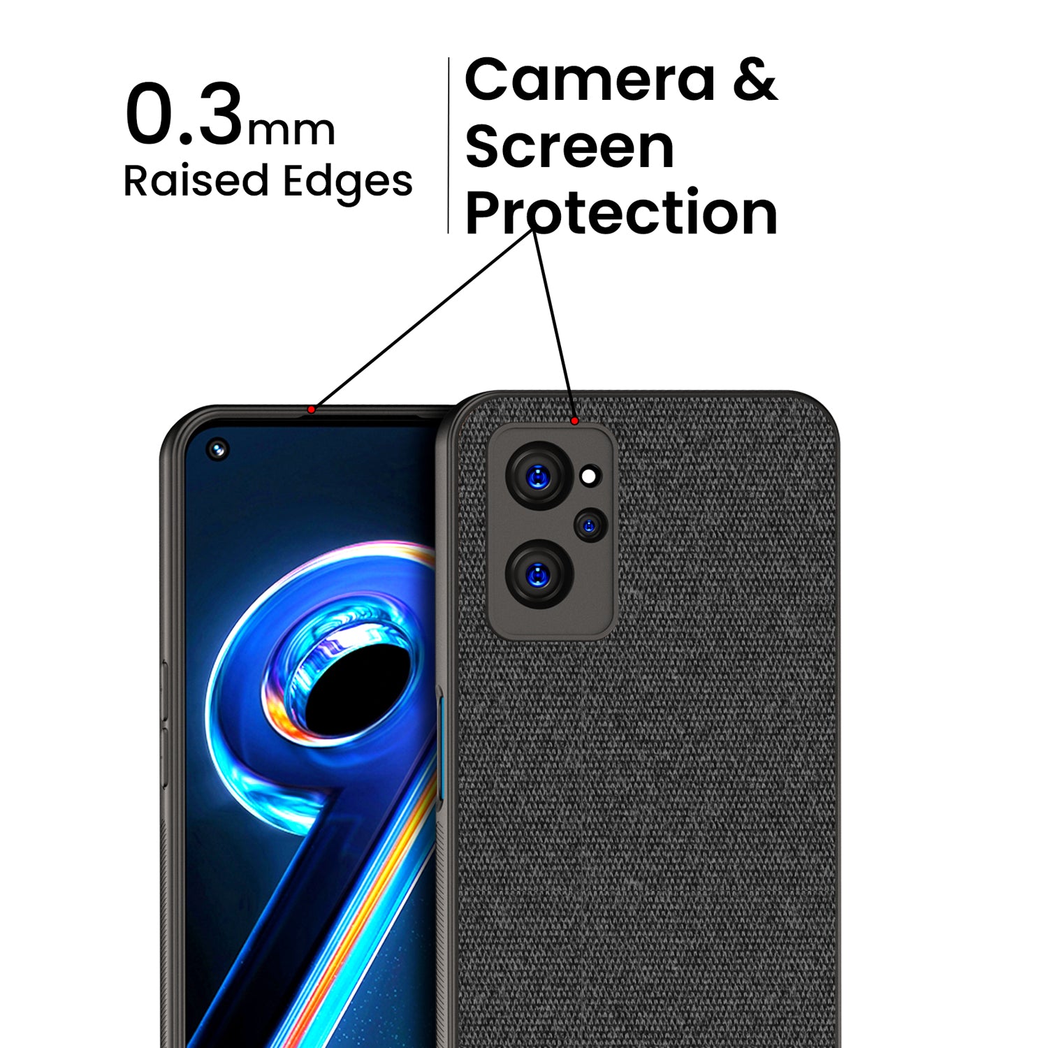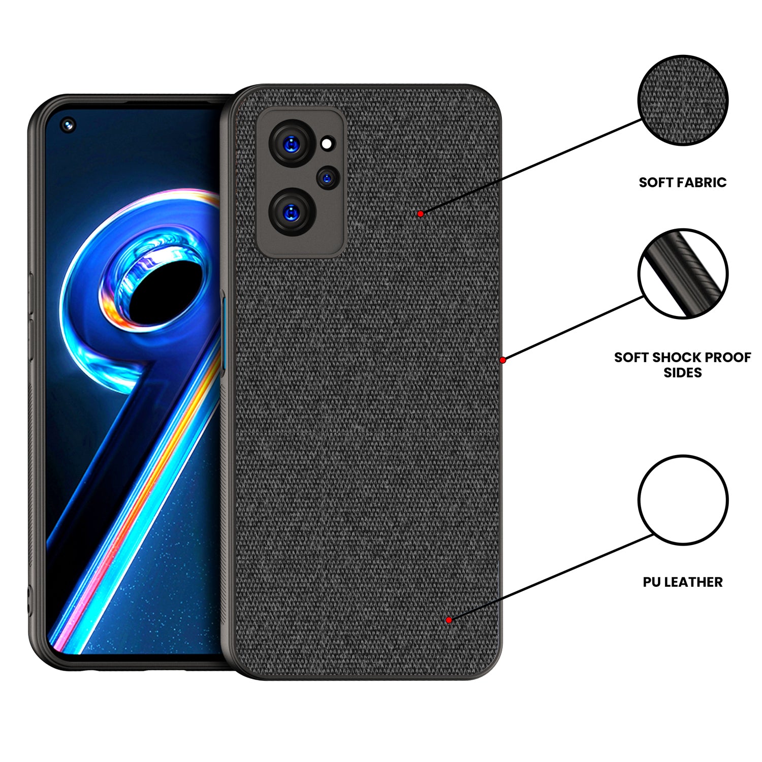 Soft Fabric Hybrid Protective Back Case Cover for Realme 9i (Black)