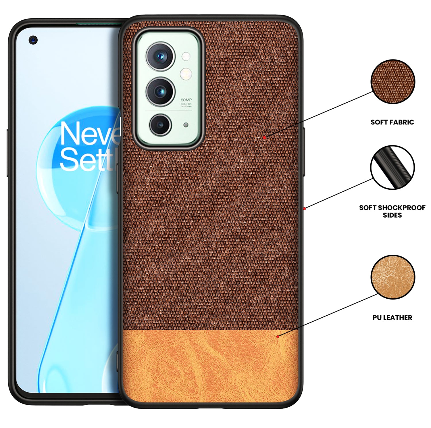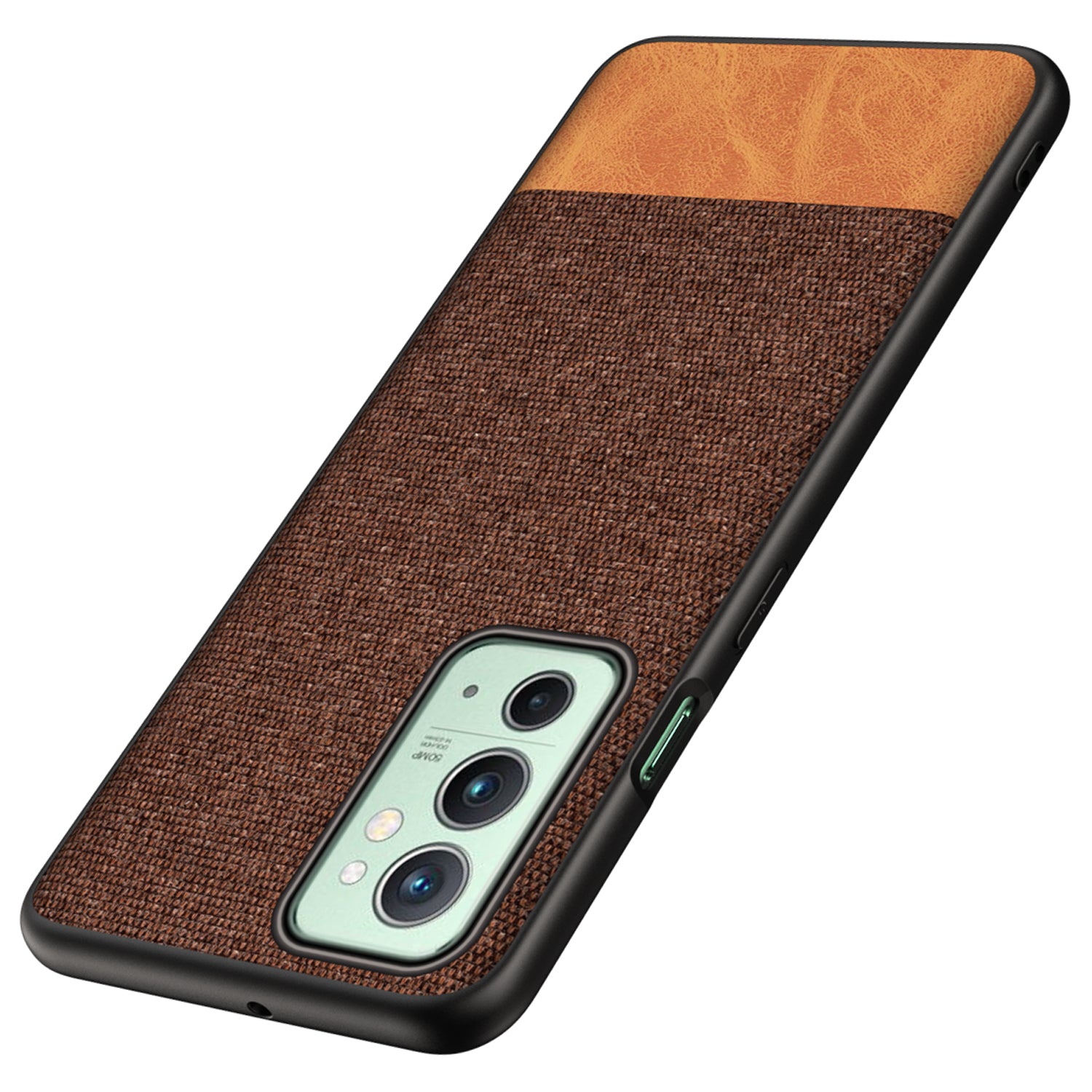 Soft Fabric & Leather Hybrid for OnePlus 9RT Back Cover, Shockproof Protection Slim Hard Back Case (Brown)