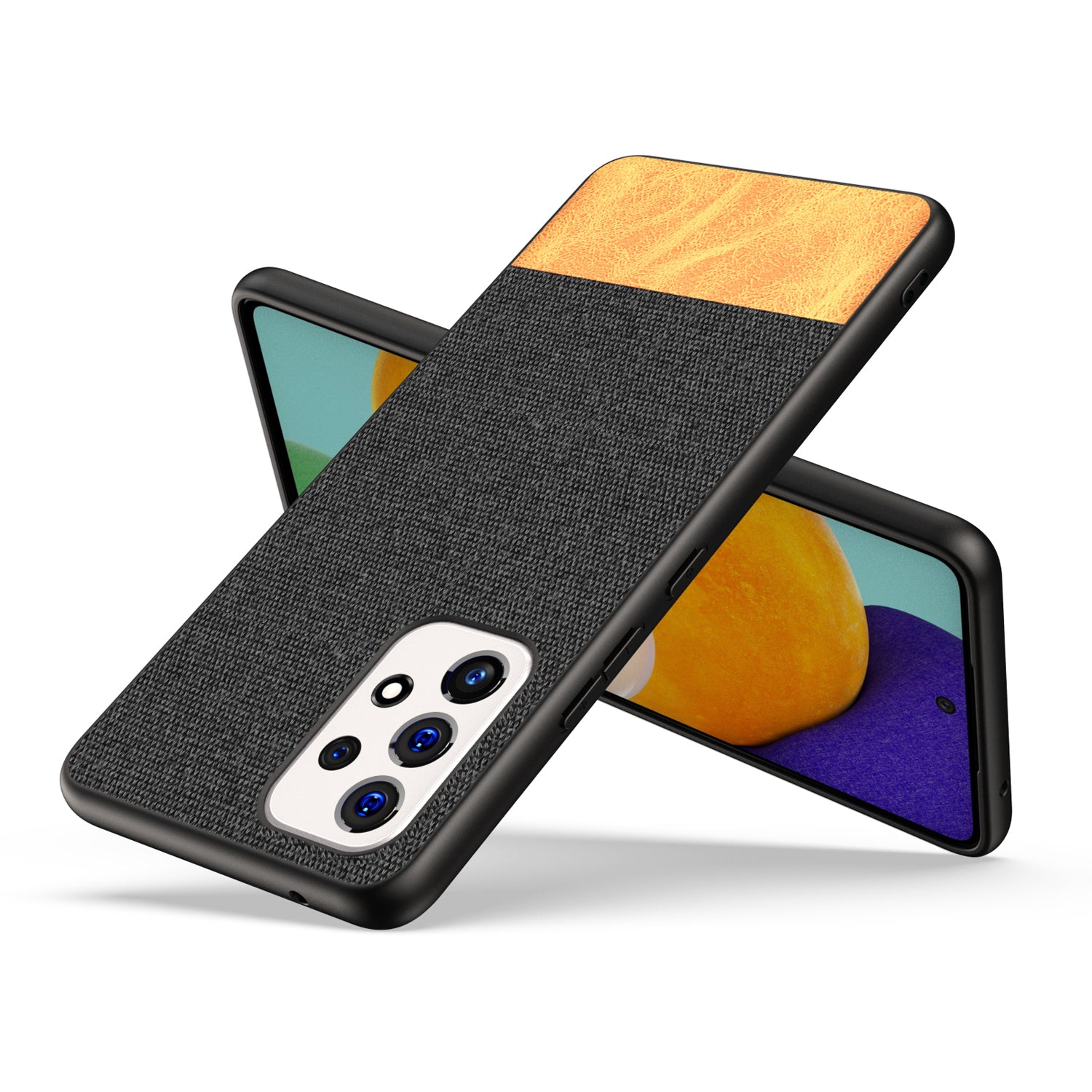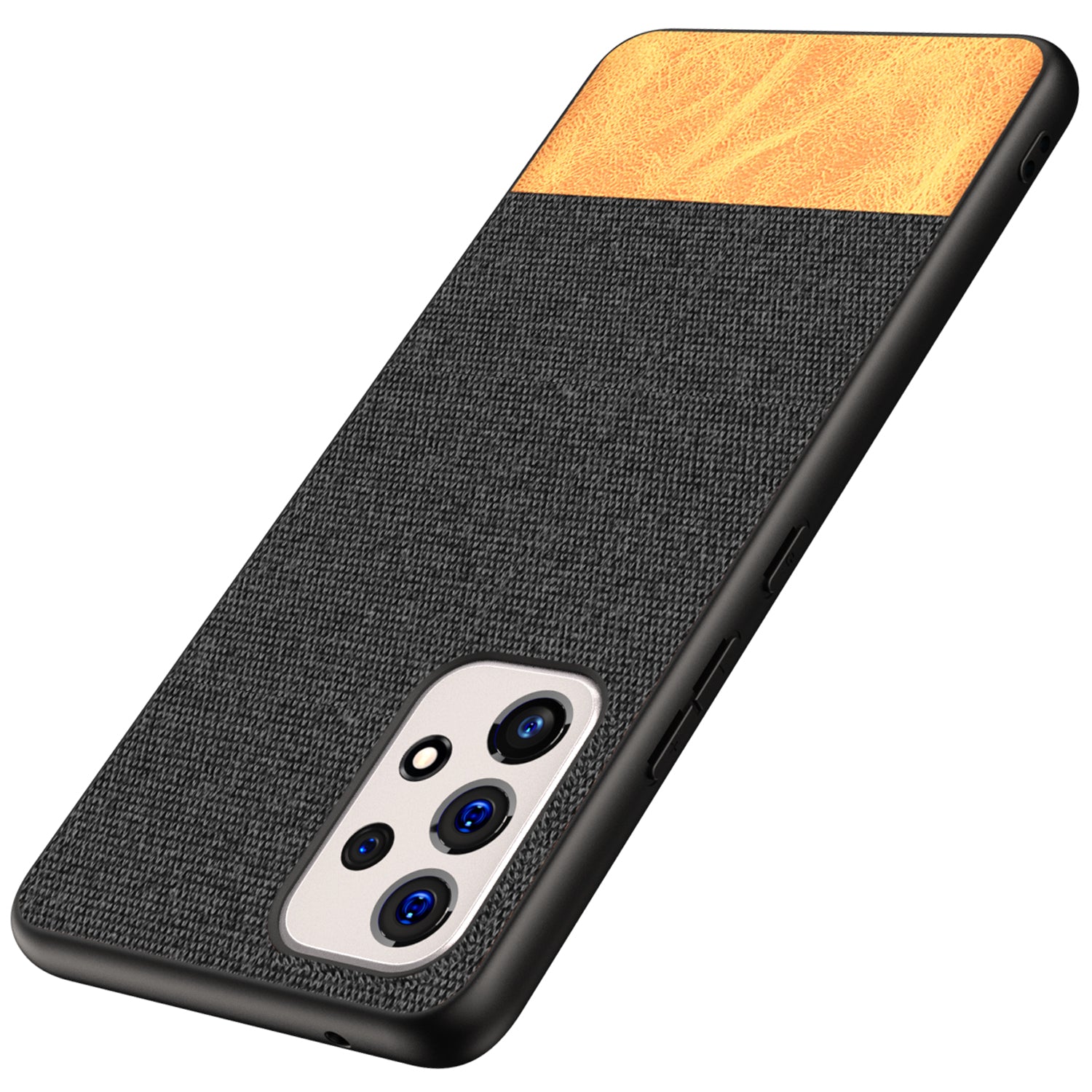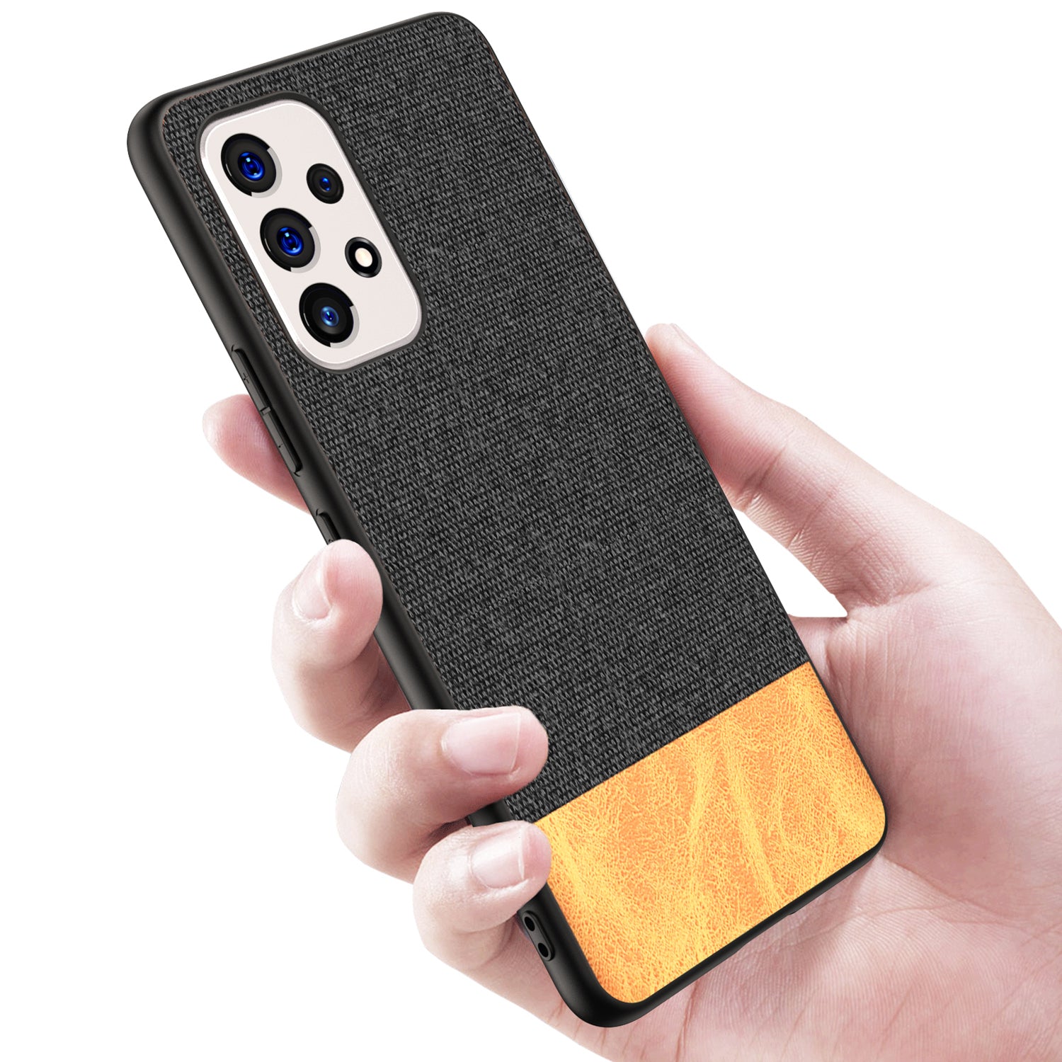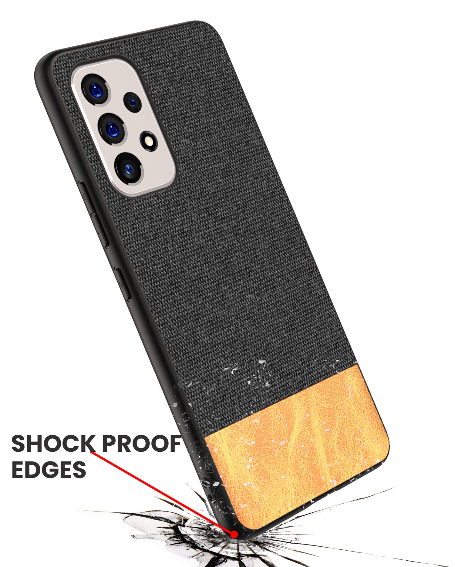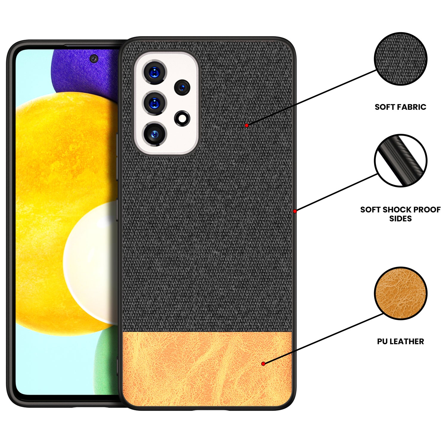 Soft Fabric & Leather Hybrid for Samsung Galaxy A53 (5G) Back Cover, Shockproof Protection Slim Hard Back Case (Black ,Brown)