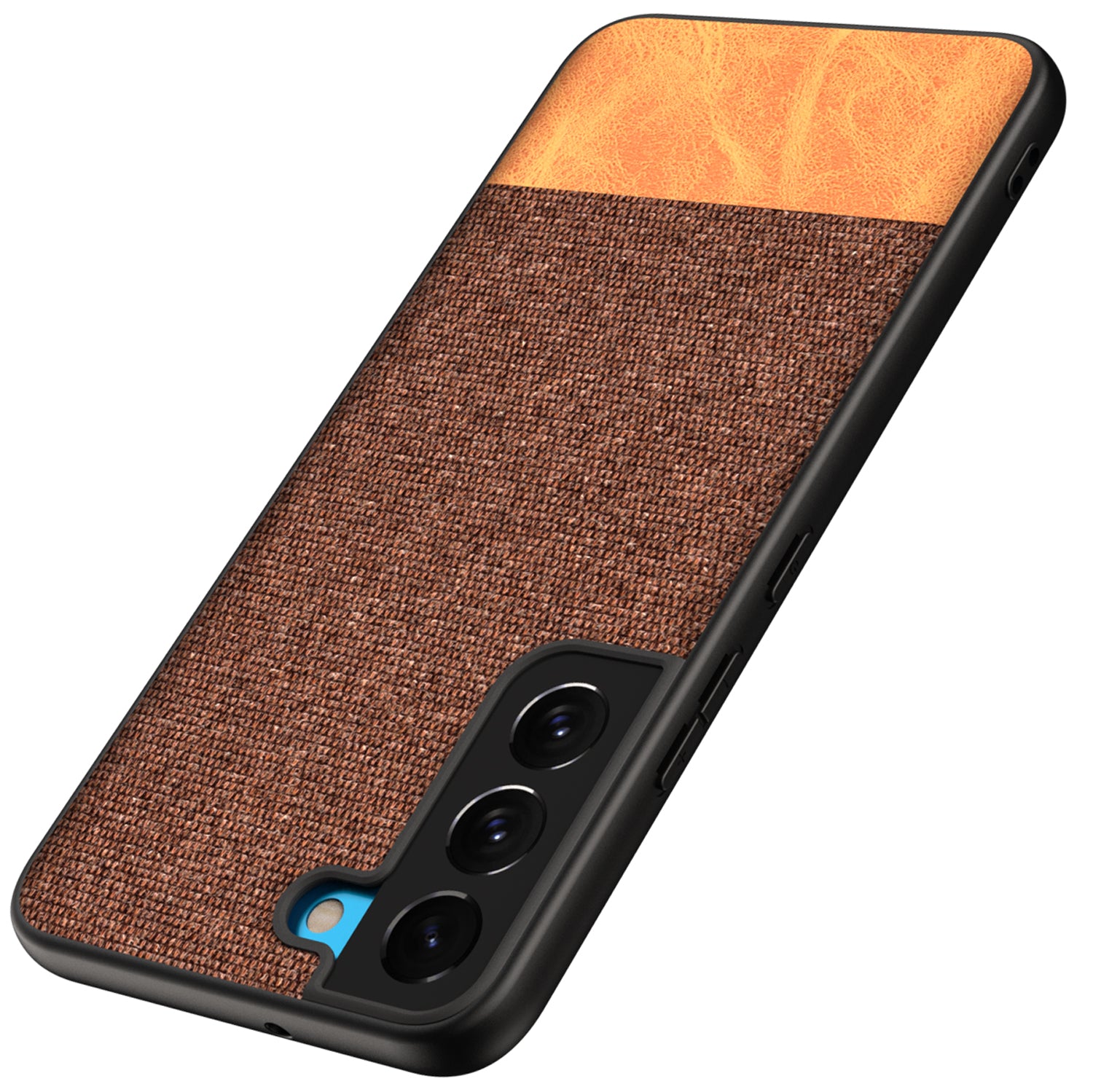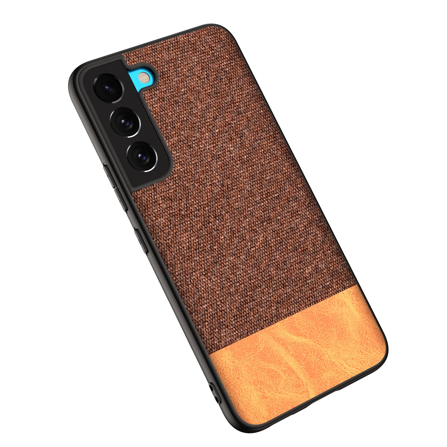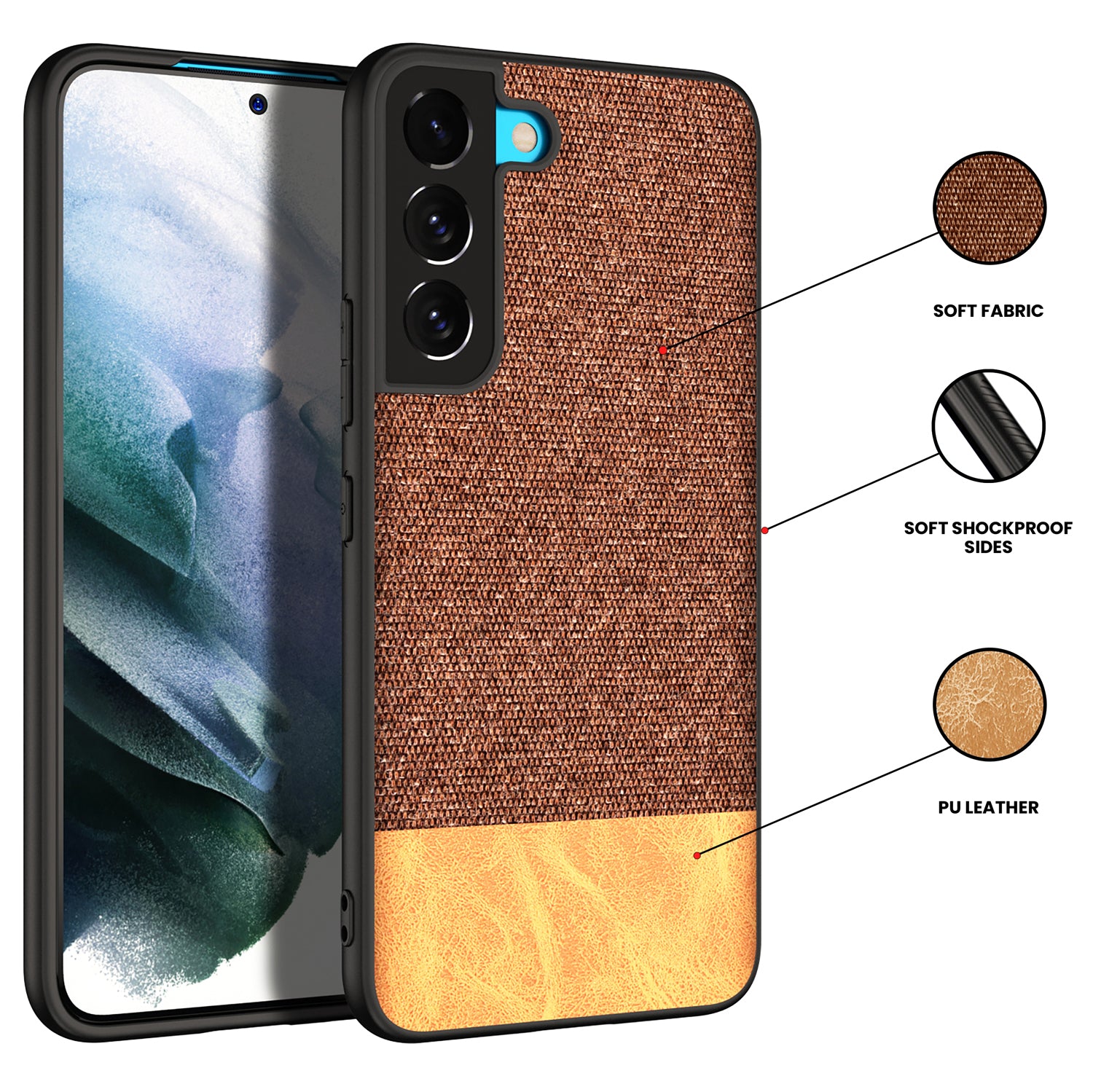 Soft Fabric & Leather Hybrid for Samsung Galaxy S21 FE Back Cover, Shockproof Protection Slim Hard Back Case (Brown)