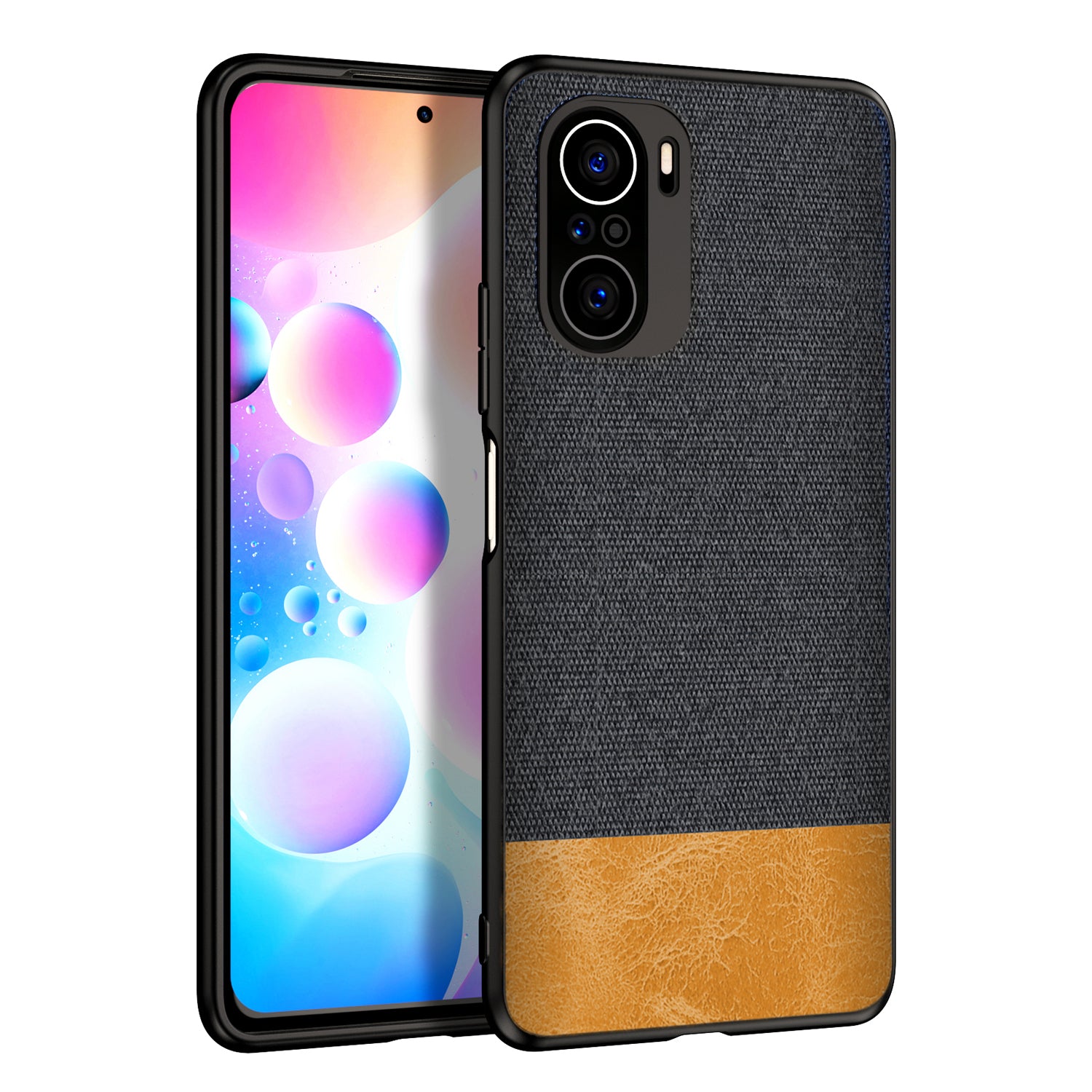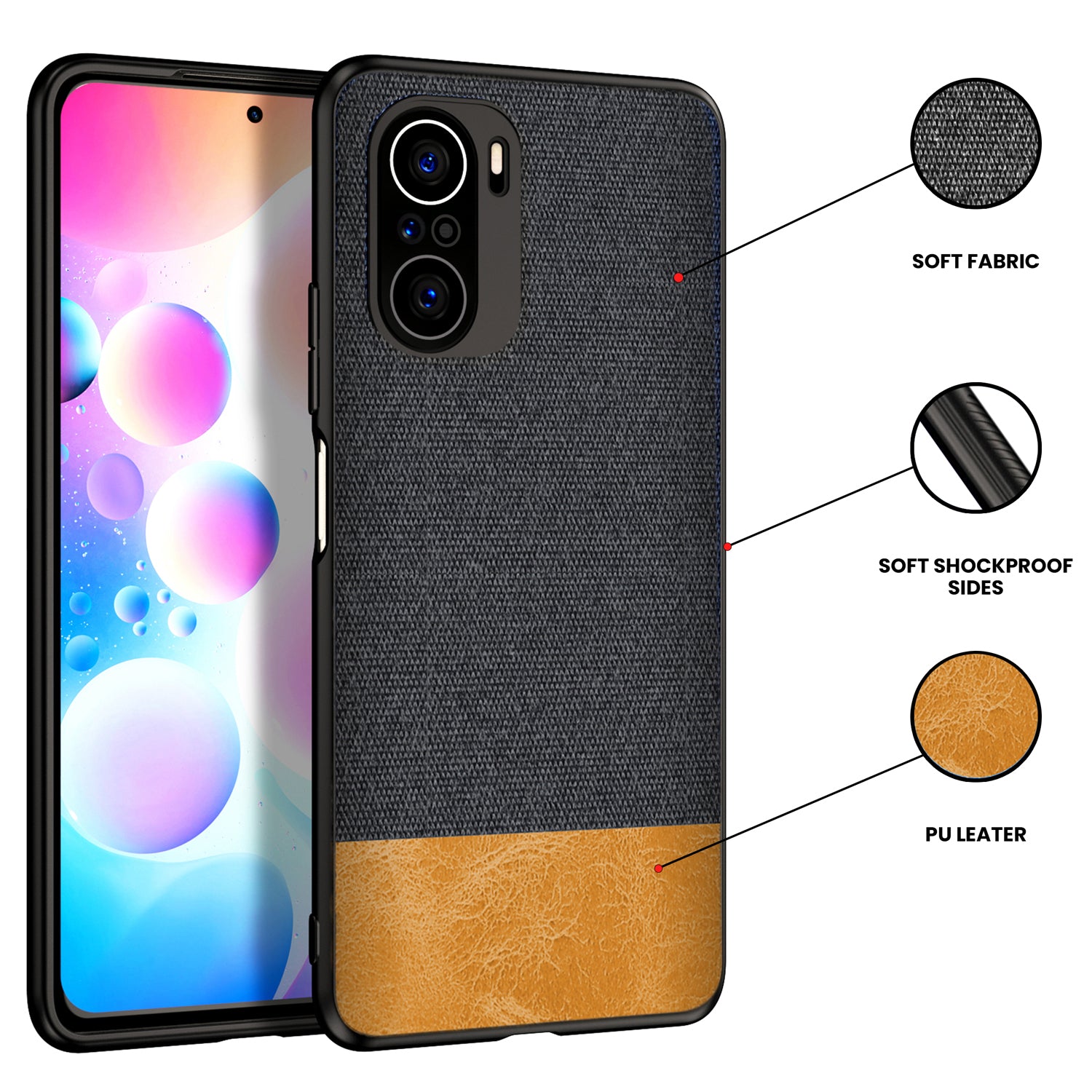 Soft Fabric & Leather Hybrid for Xiaomi Mi 11X Pro / Mi 11X Back Cover, Shockproof Protection Slim Hard Back Case (Black,Brown)