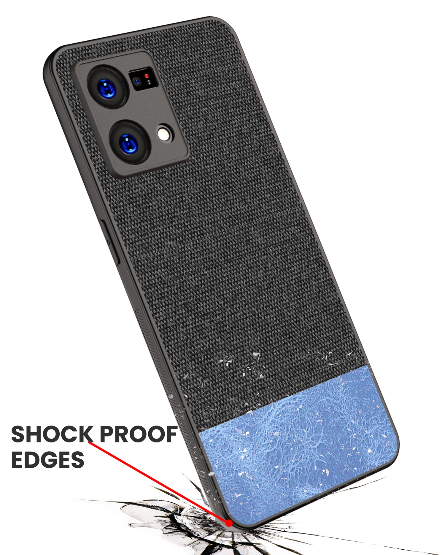 Soft Fabric & Leather Hybrid Protective Back Case Cover for Oppo F21 PRO (4G) (Black , Blue)