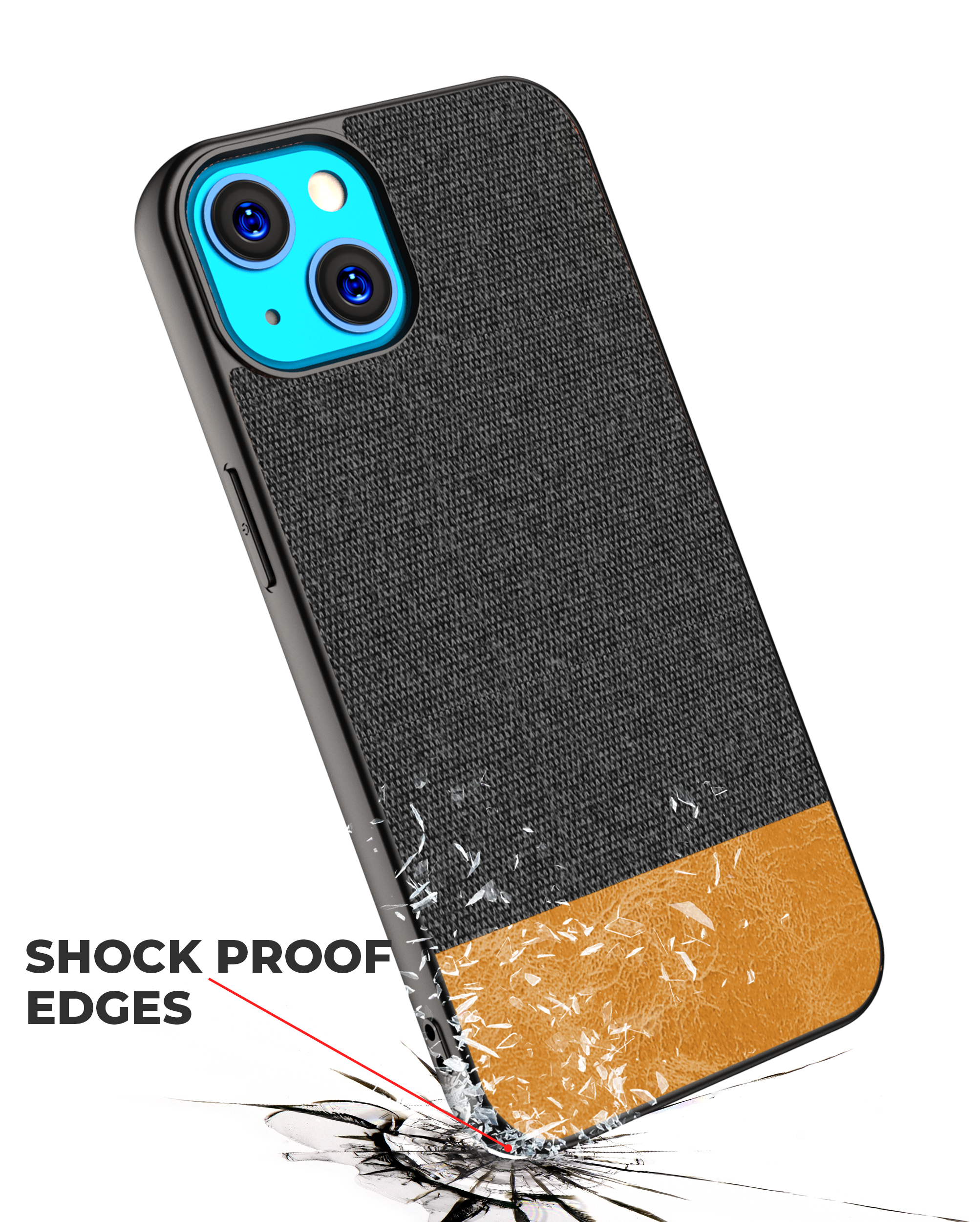 Soft fabric & Leather Hybrid Protective Case Cover for Apple iphone 13 (Black,Brown)