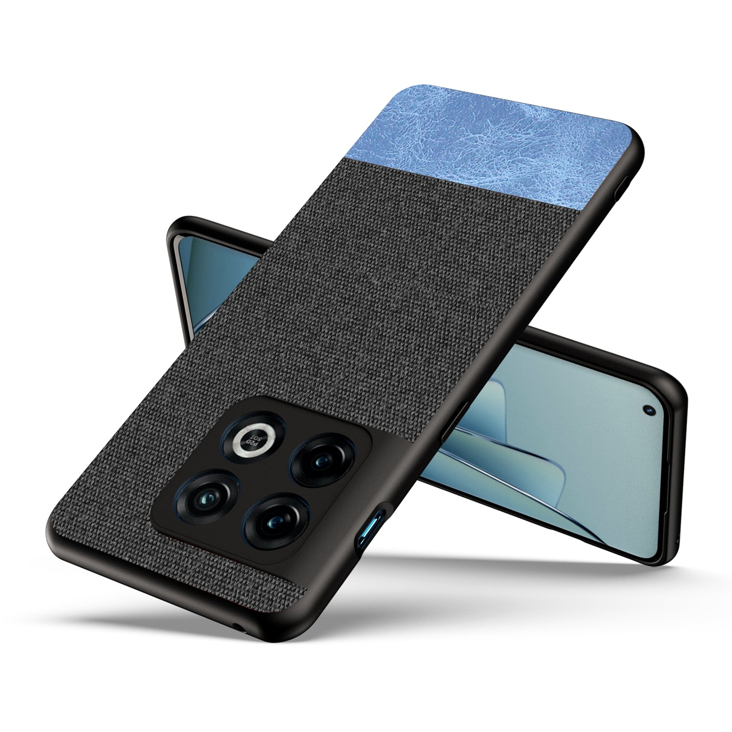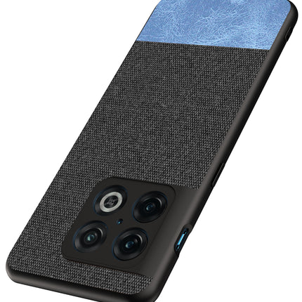 Soft Fabric & Leather Hybrid Protective Case Cover for OnePlus 10 Pro (Black,Blue)