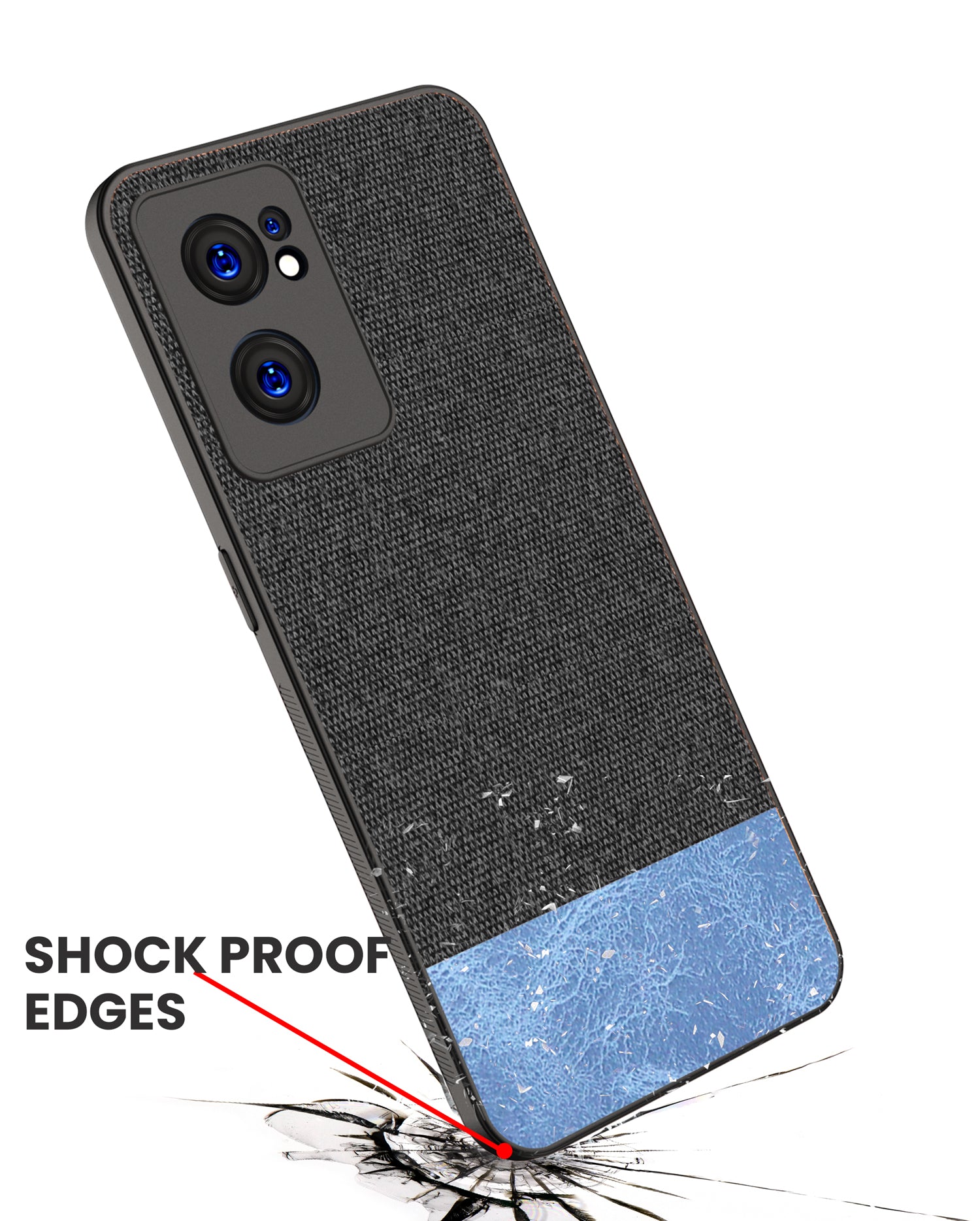 Soft Fabric & Leather Hybrid Protective Case Cover for OnePlus Nord CE 2 (5G) (Black ,Blue)