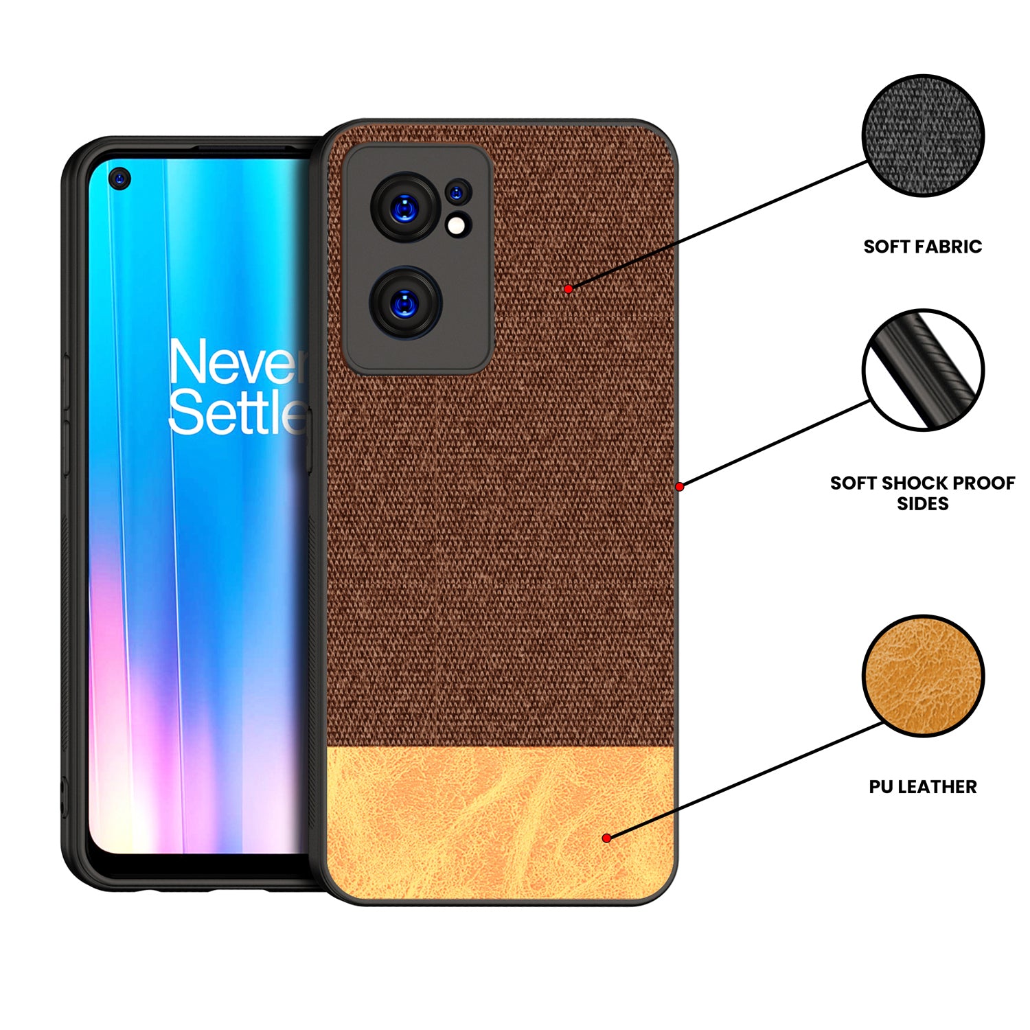 Soft Fabric & Leather Hybrid Protective Case Cover for OnePlus Nord CE 2 (5G) (Brown)