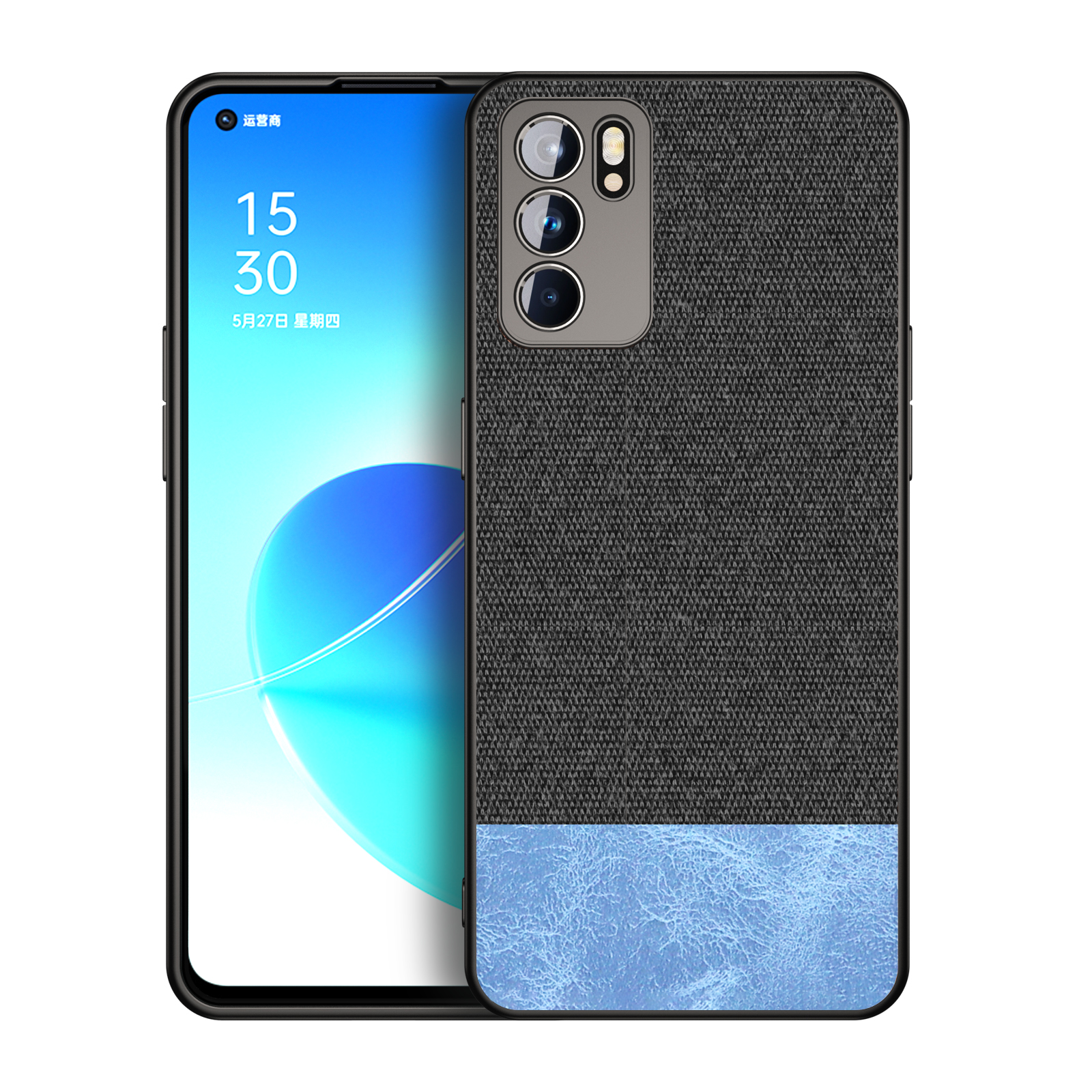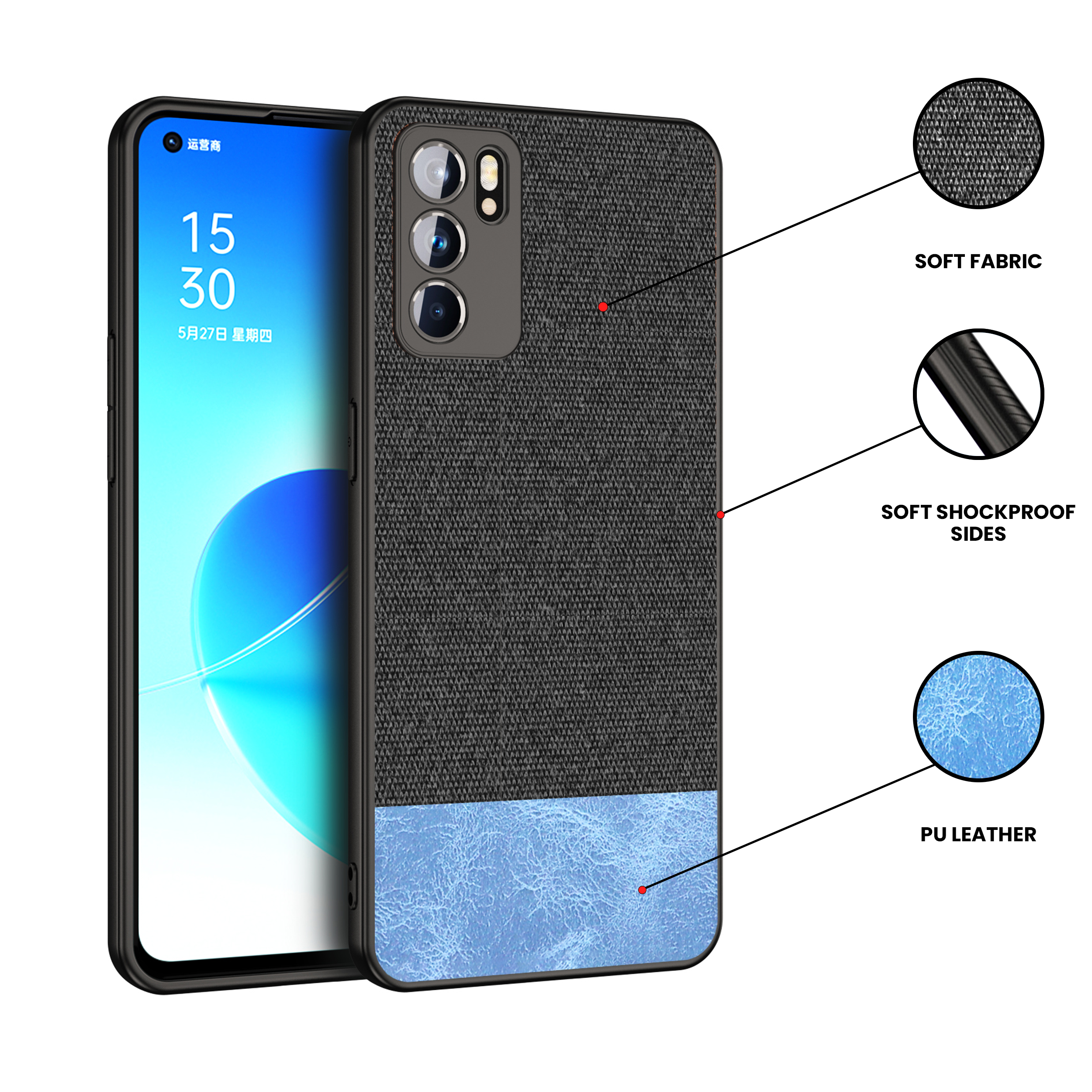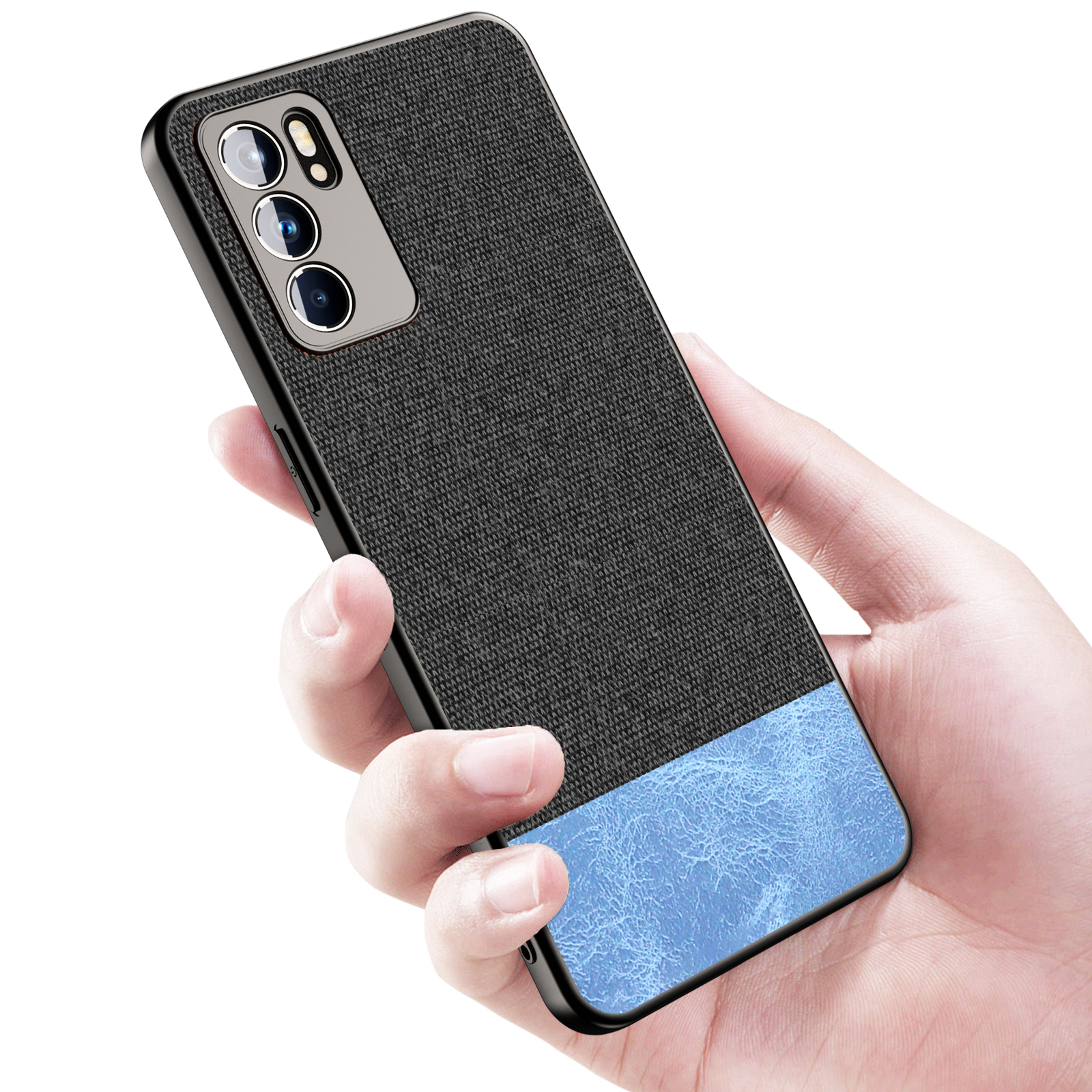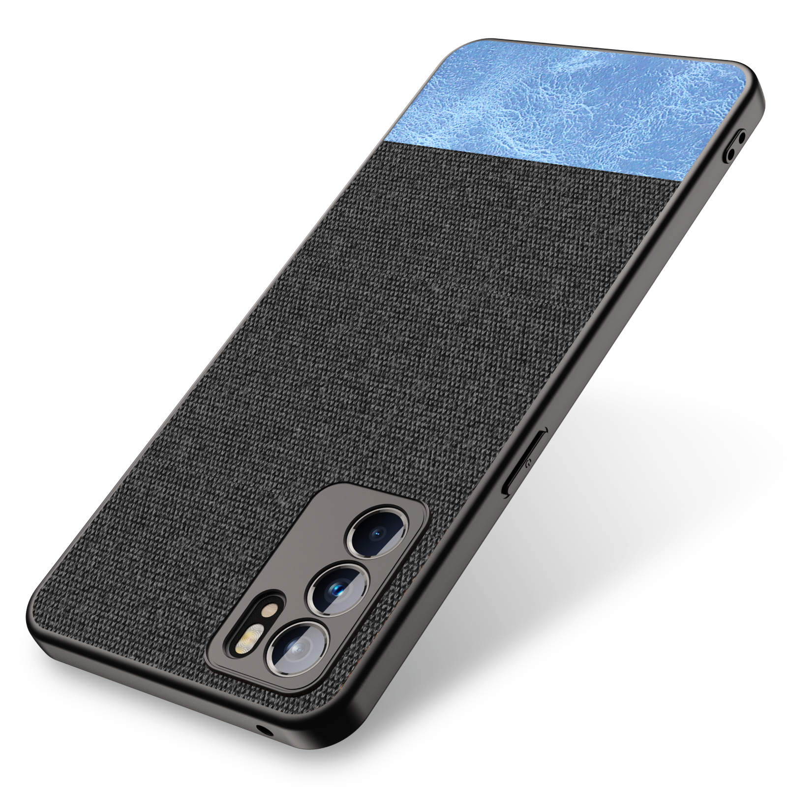 Soft Fabric & Leather Hybrid Protective Case Cover for Oppo Reno 6 (Black,Blue)