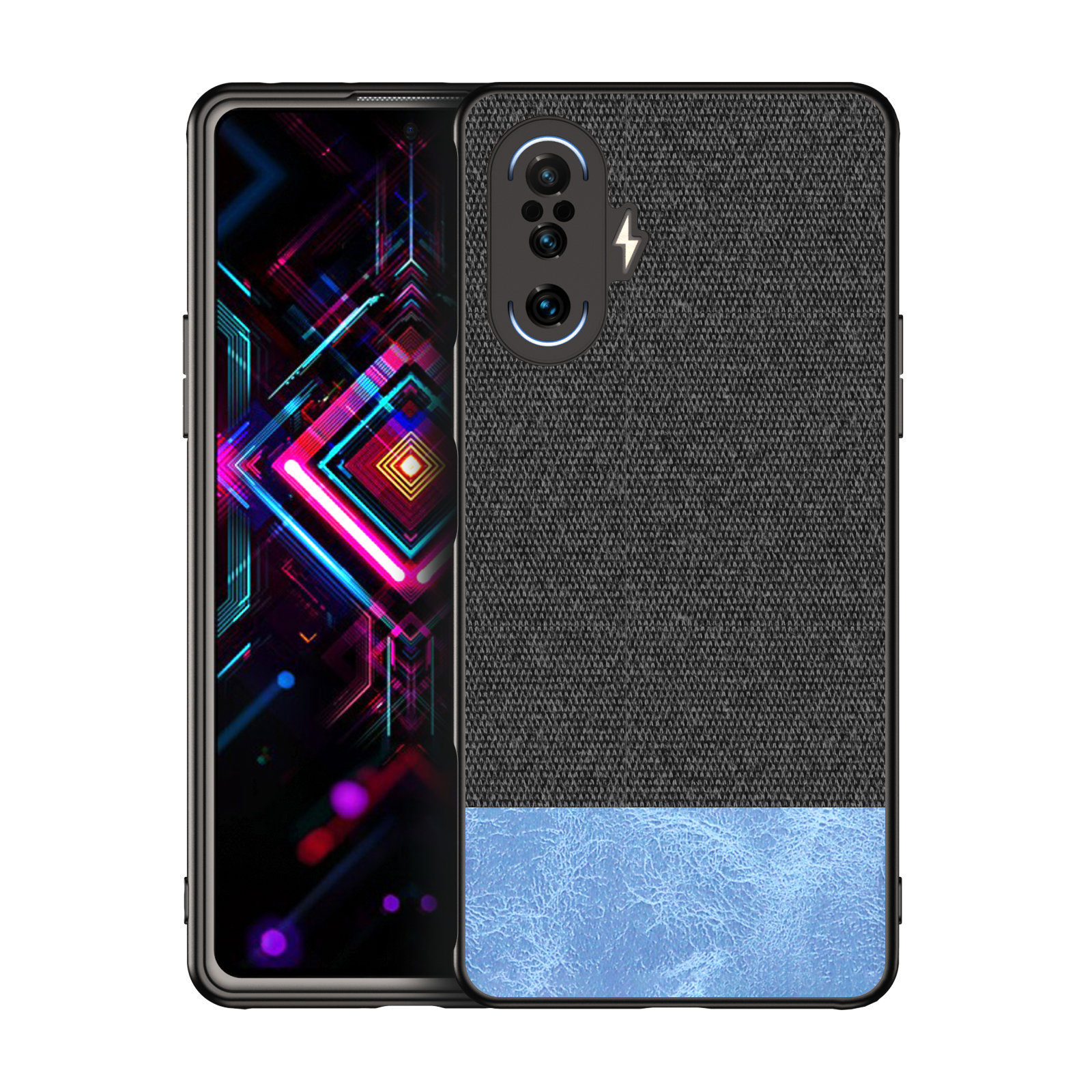 Soft Fabric & Leather Hybrid Protective Case Cover for Poco F3 GT (Black,Blue)