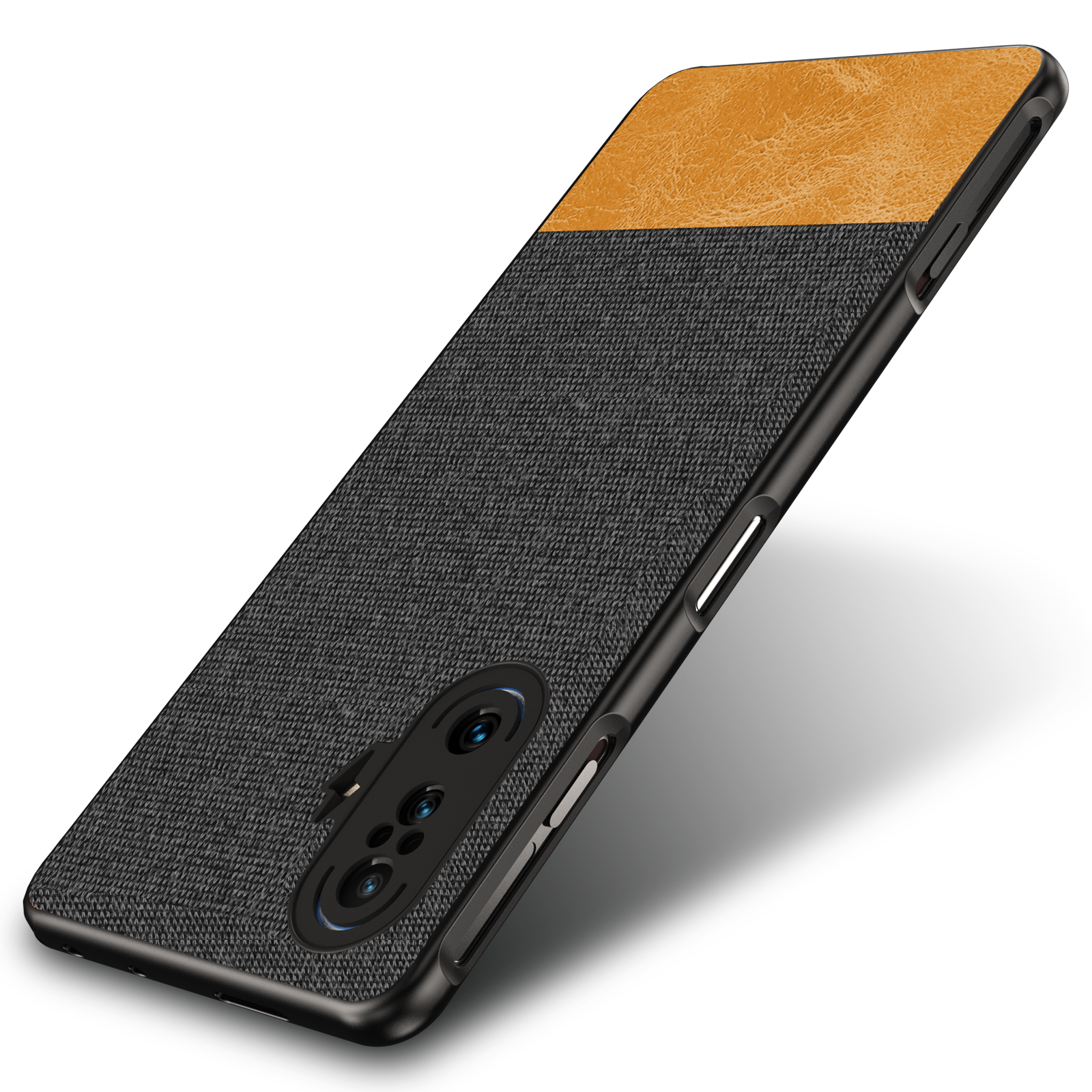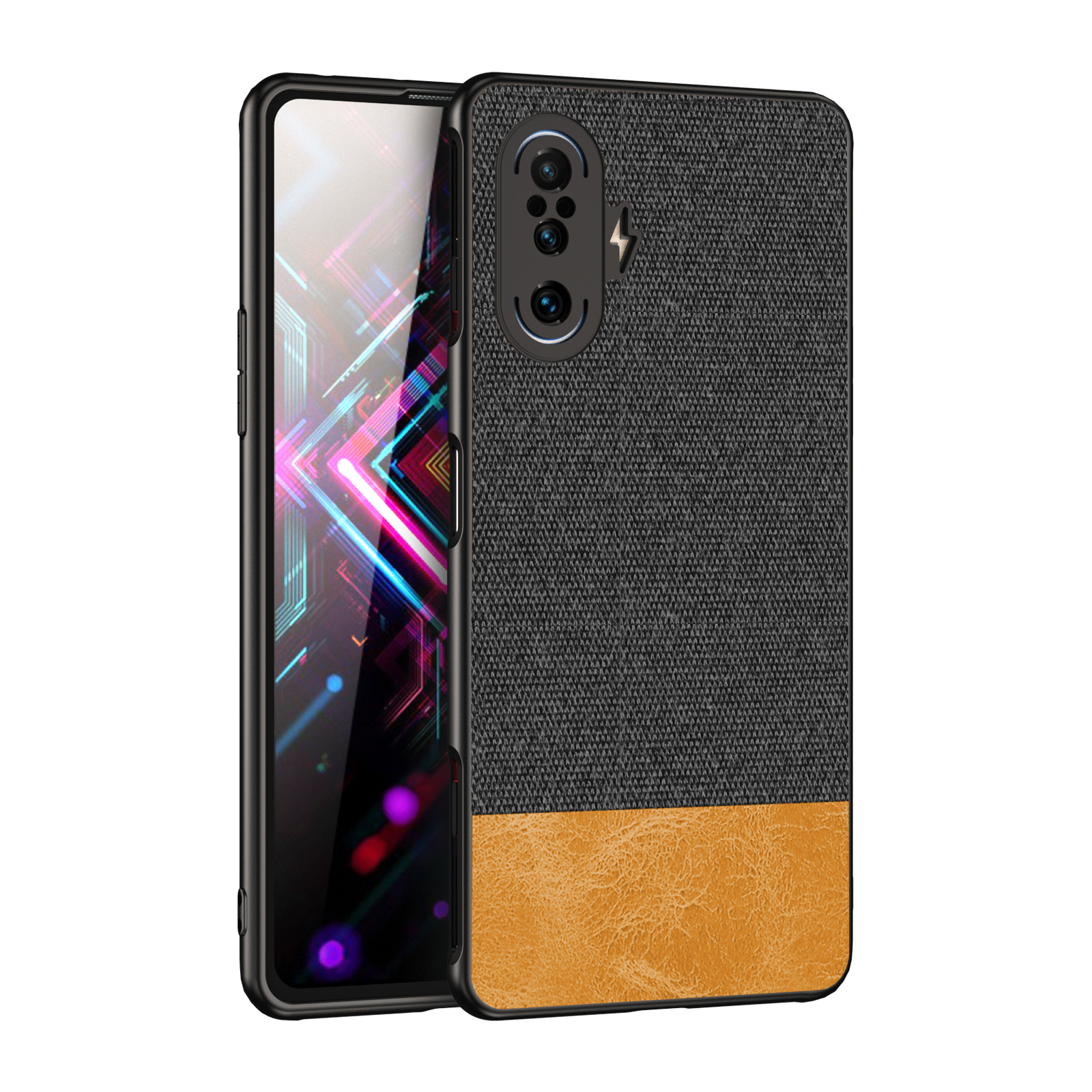 Soft Fabric & Leather Hybrid Protective Case Cover for Poco F3 GT (Black,Brown)