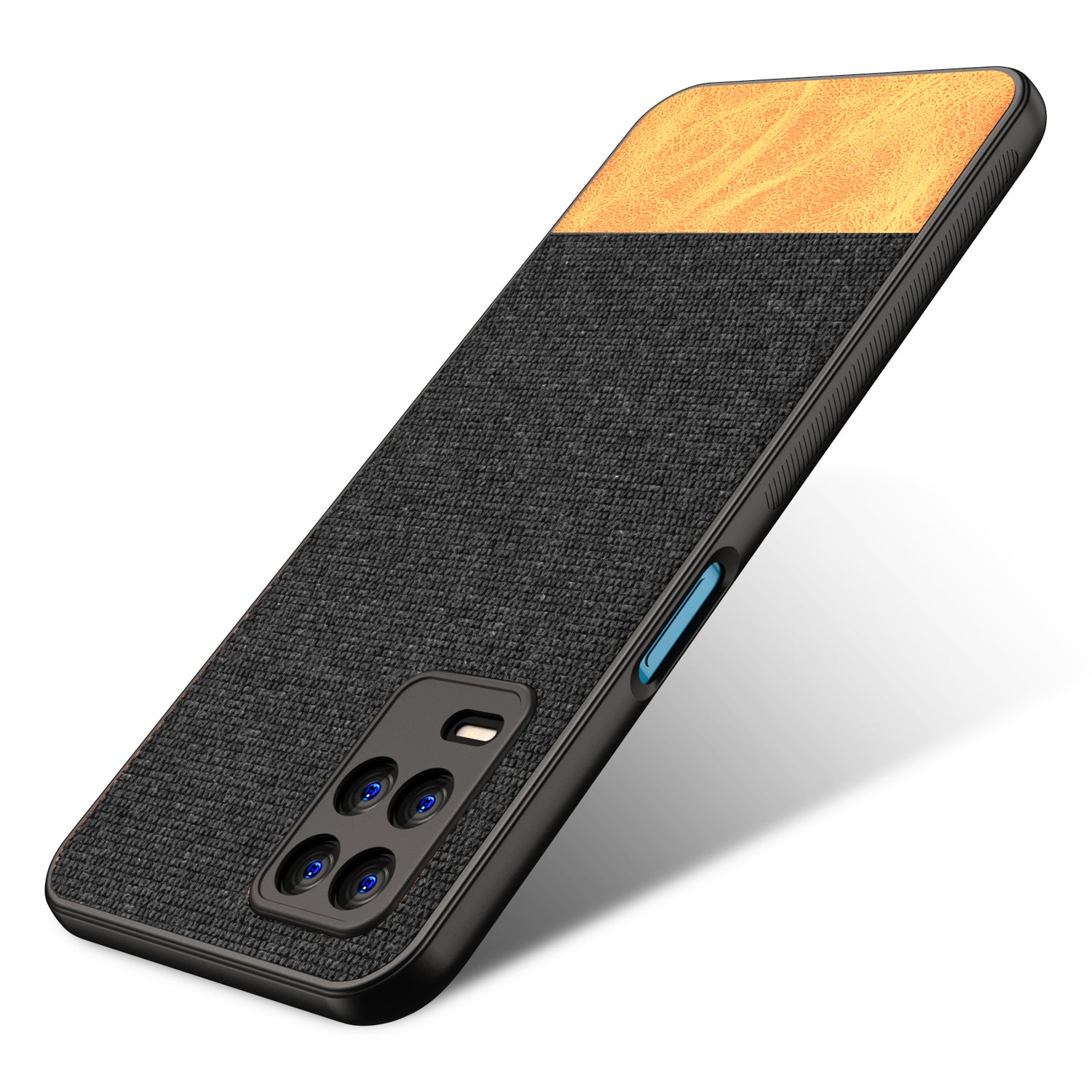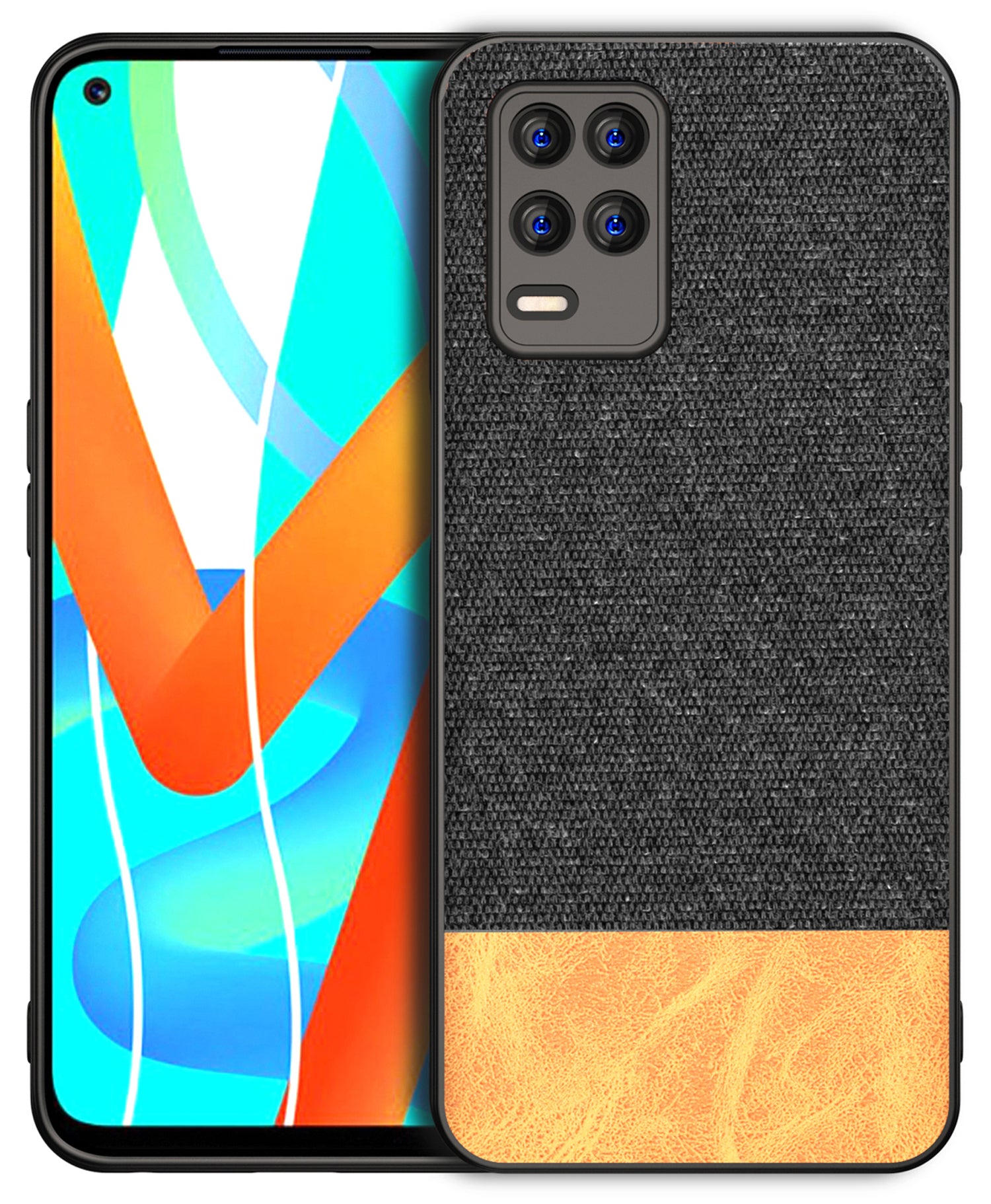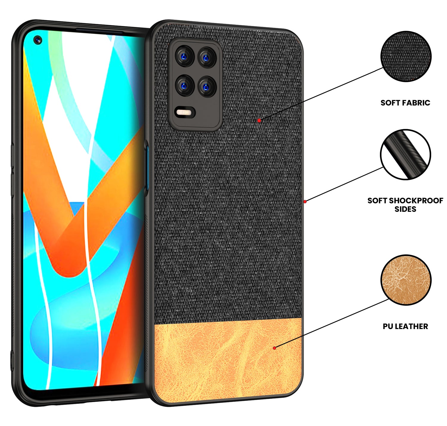 Soft Fabric & Leather Hybrid Protective Case Cover for Realme 8S (5G) (Black,Brown)