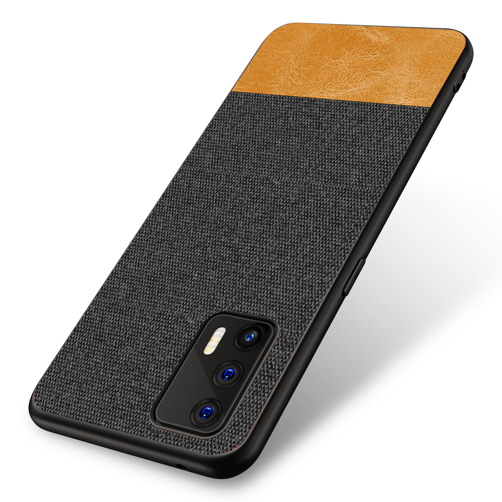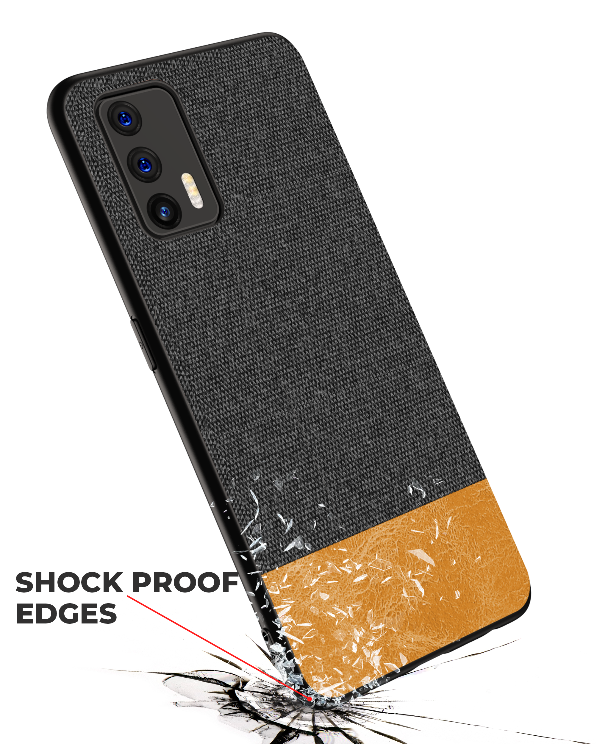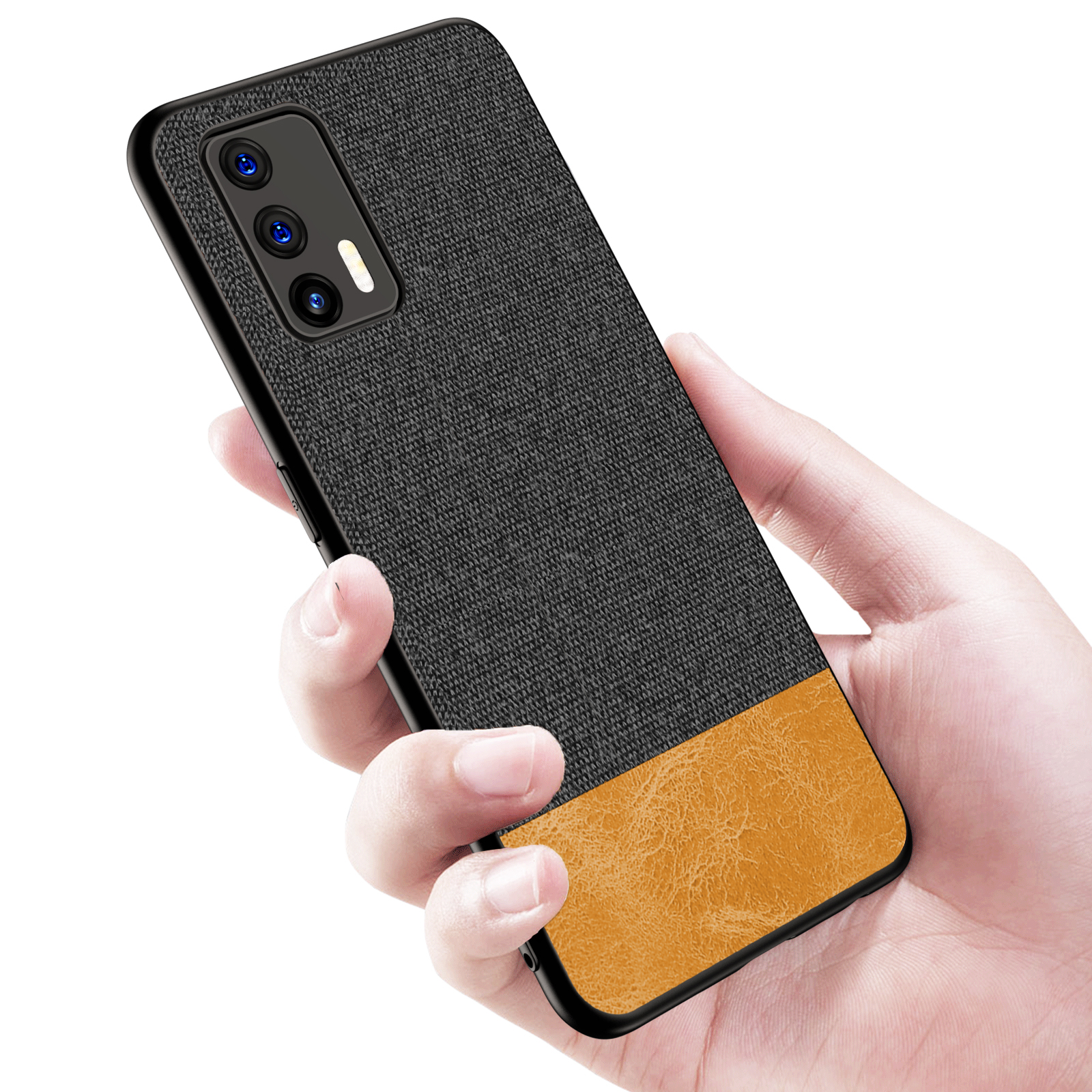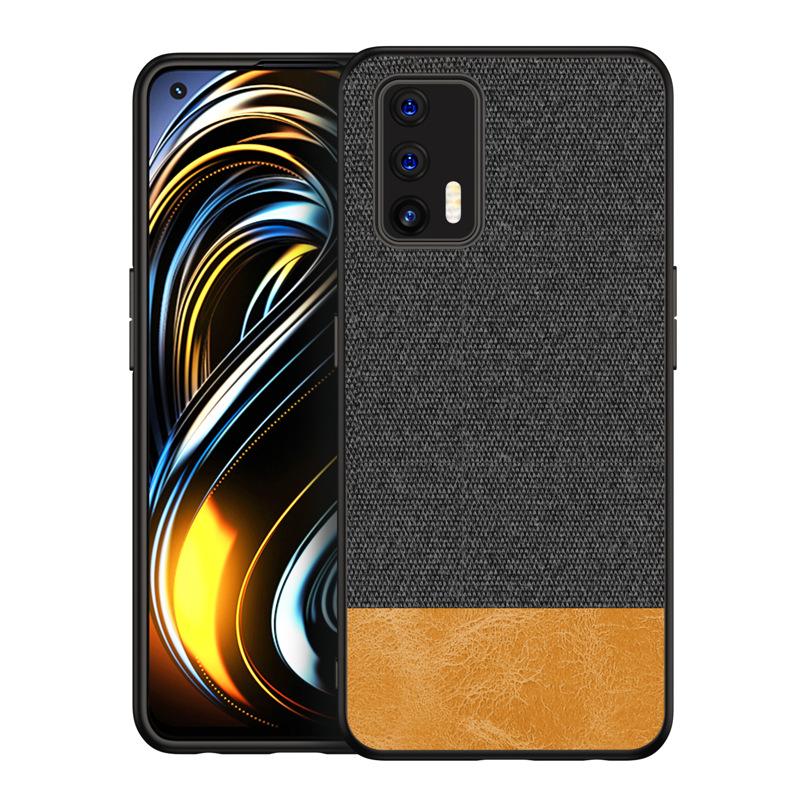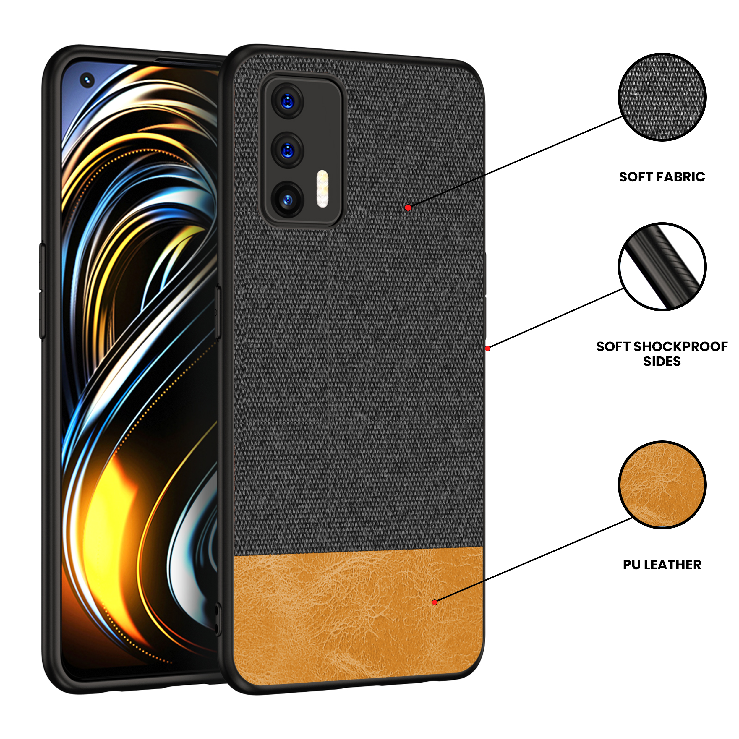 Soft Fabric & Leather Hybrid Protective Case Cover for Realme GT (5G) (Black,Brown)