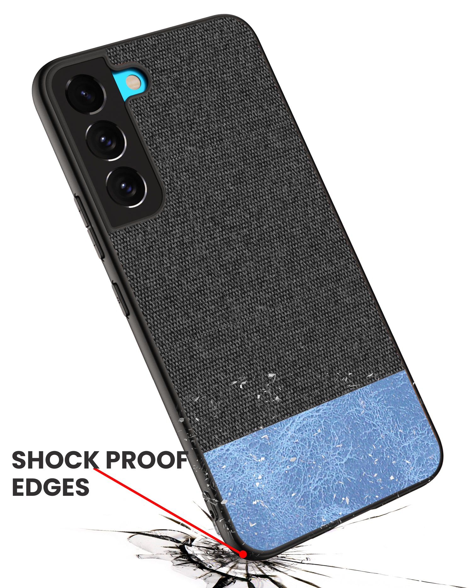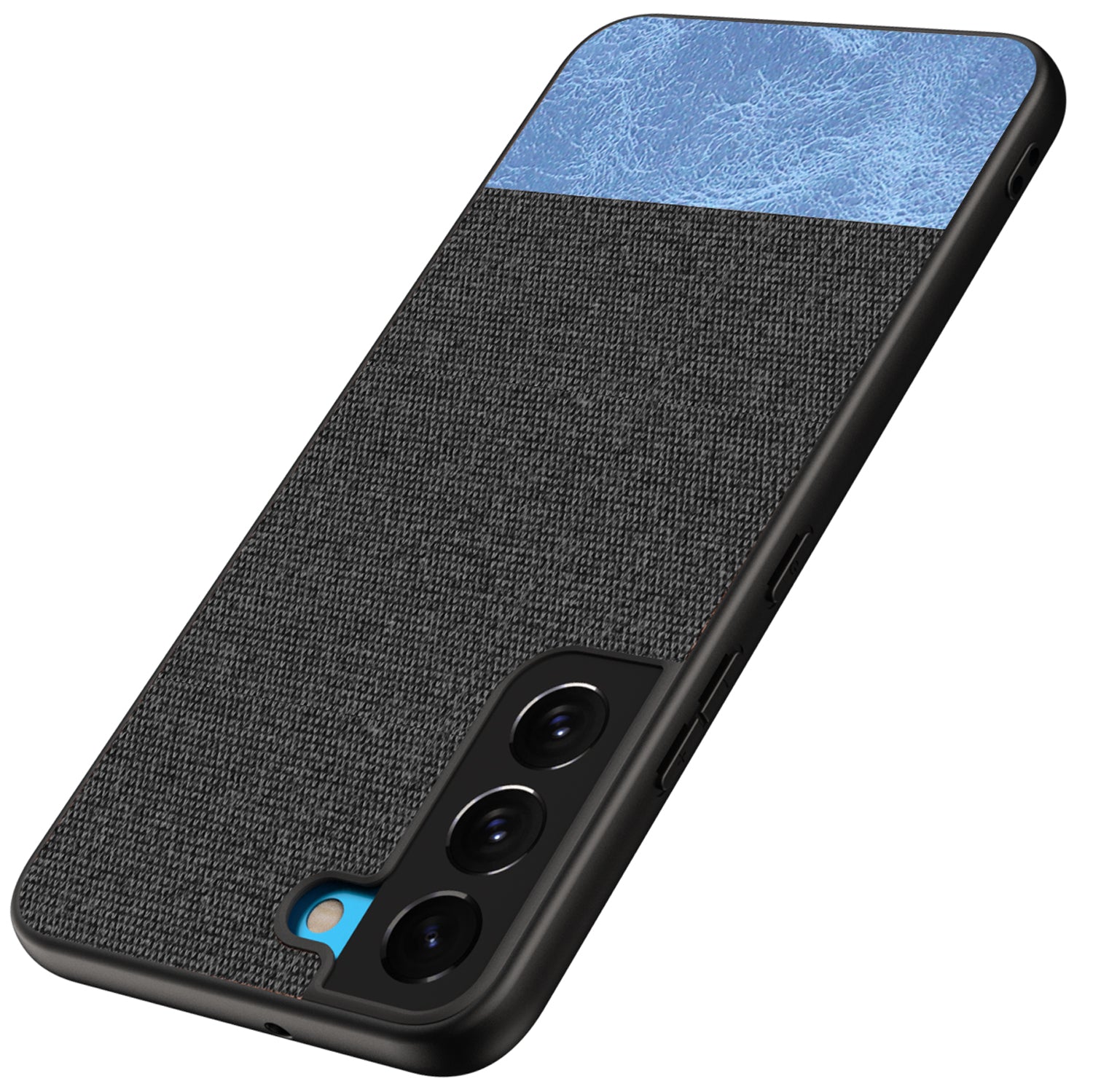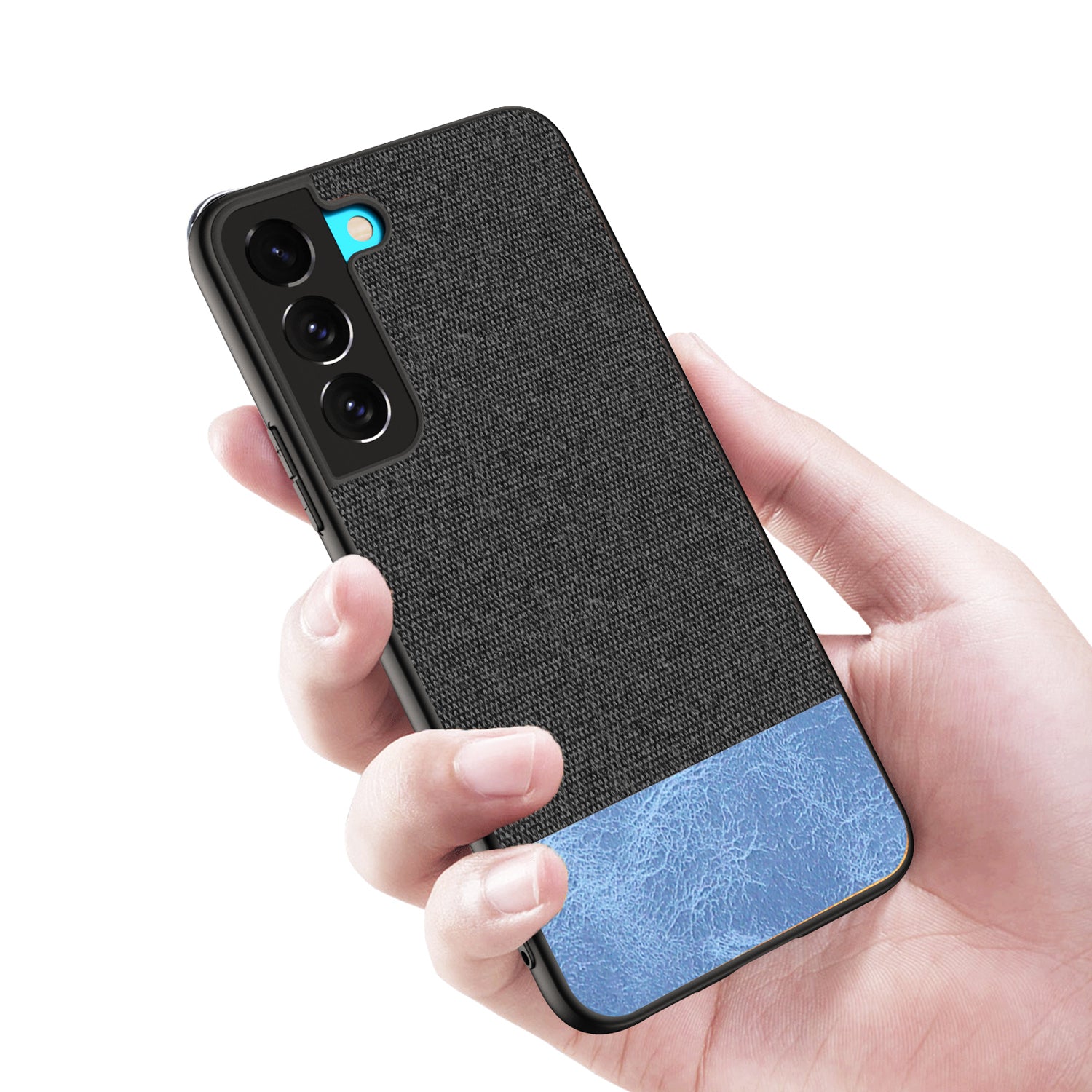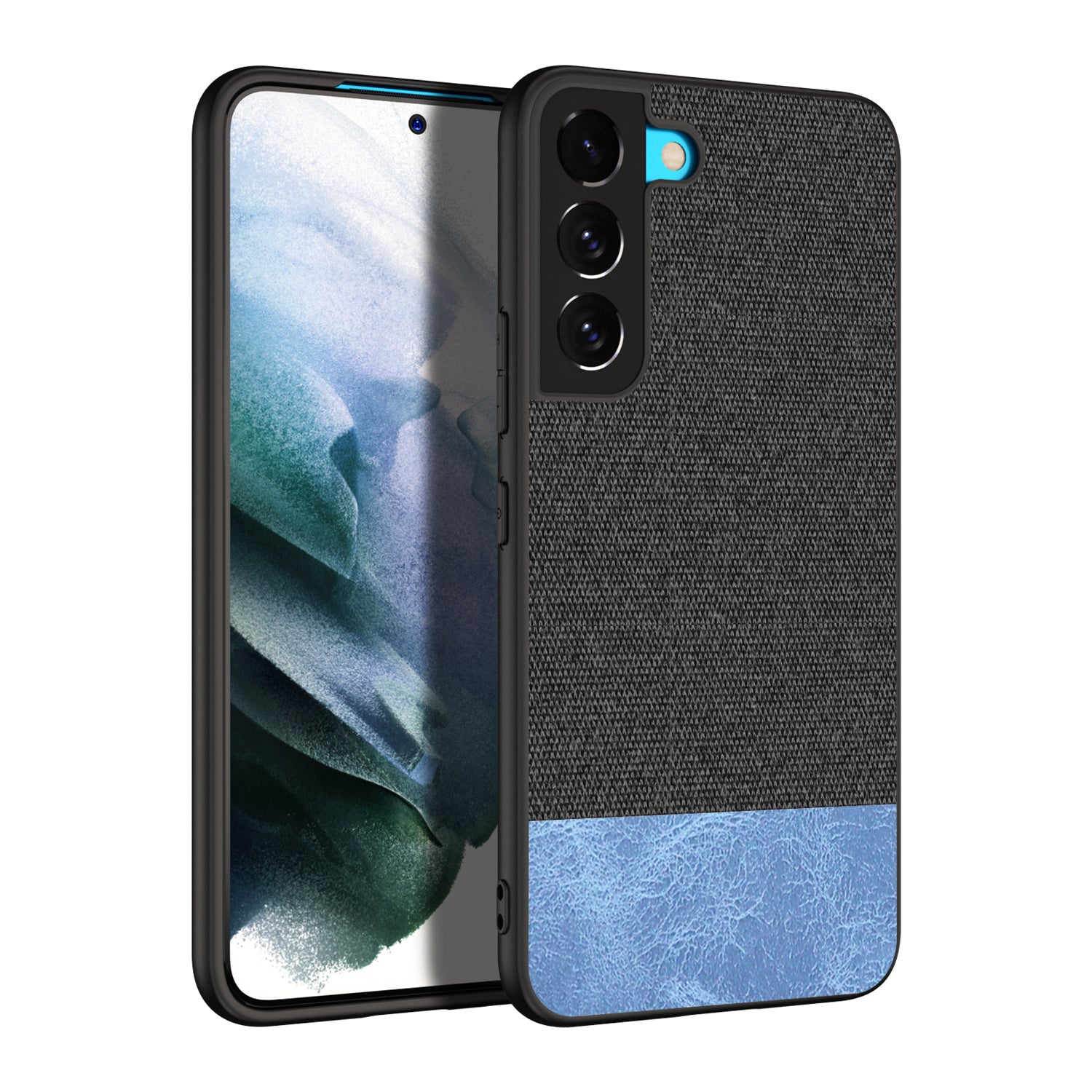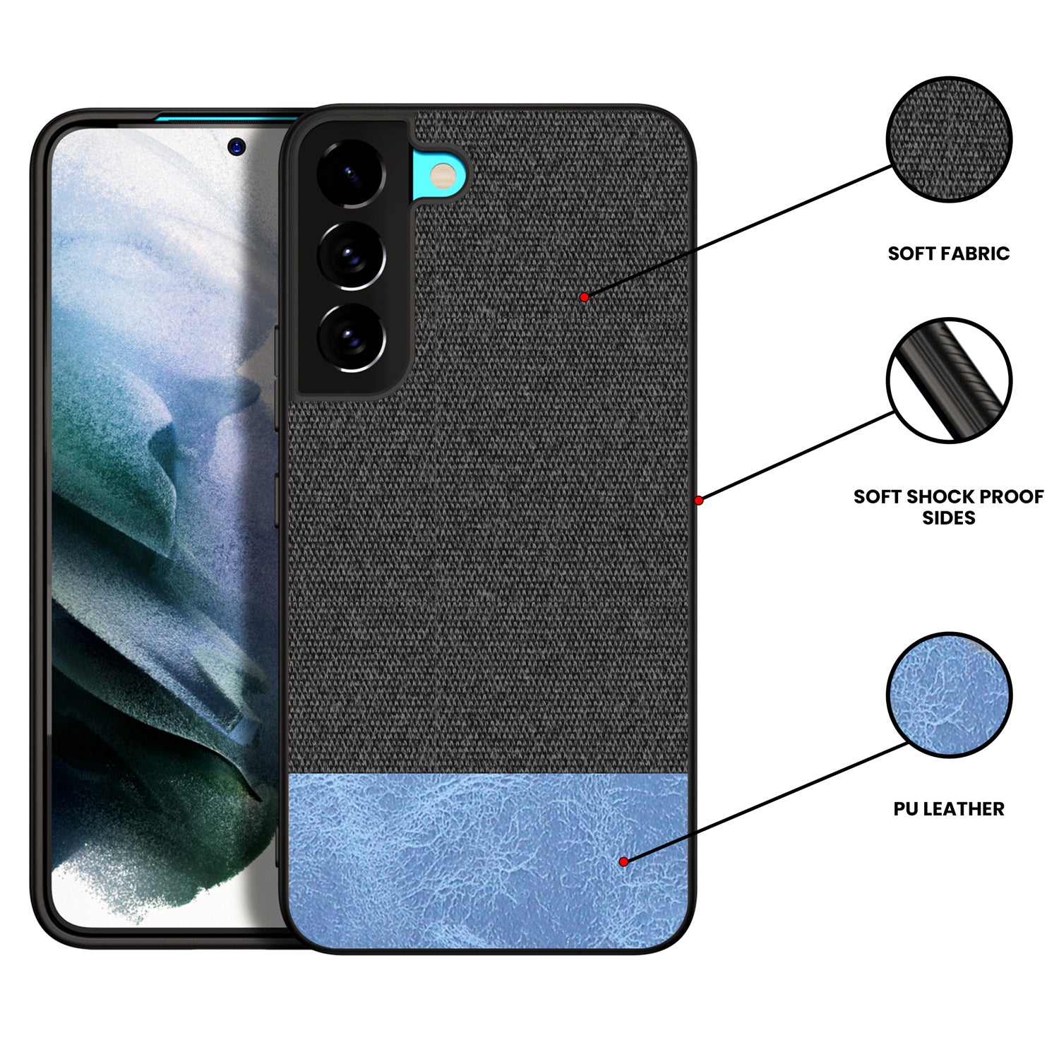 Soft Fabric & Leather Hybrid Protective Case Cover for Samsung Galaxy S22 (Black,Blue)