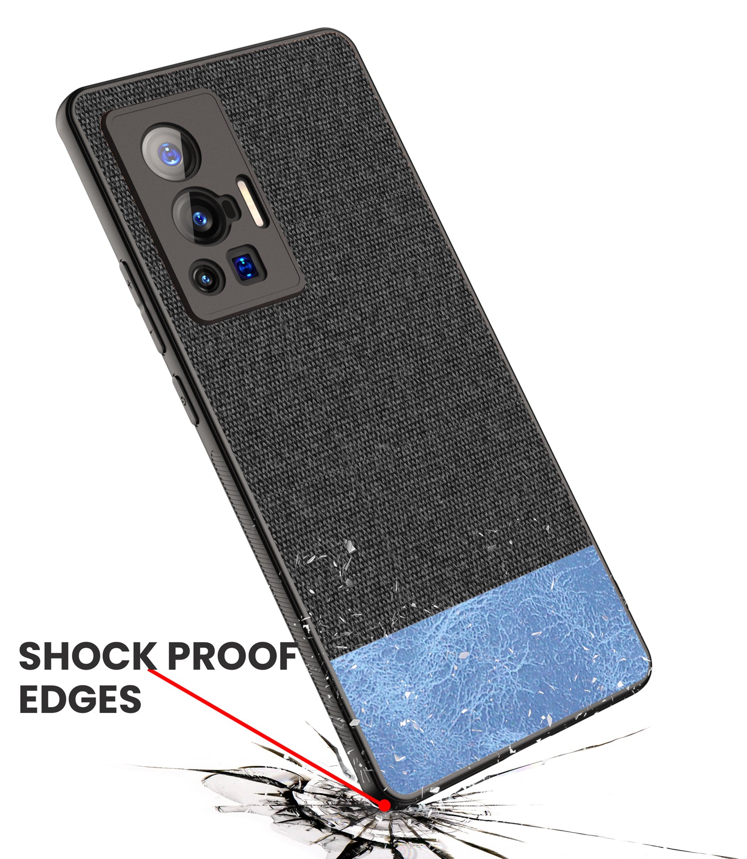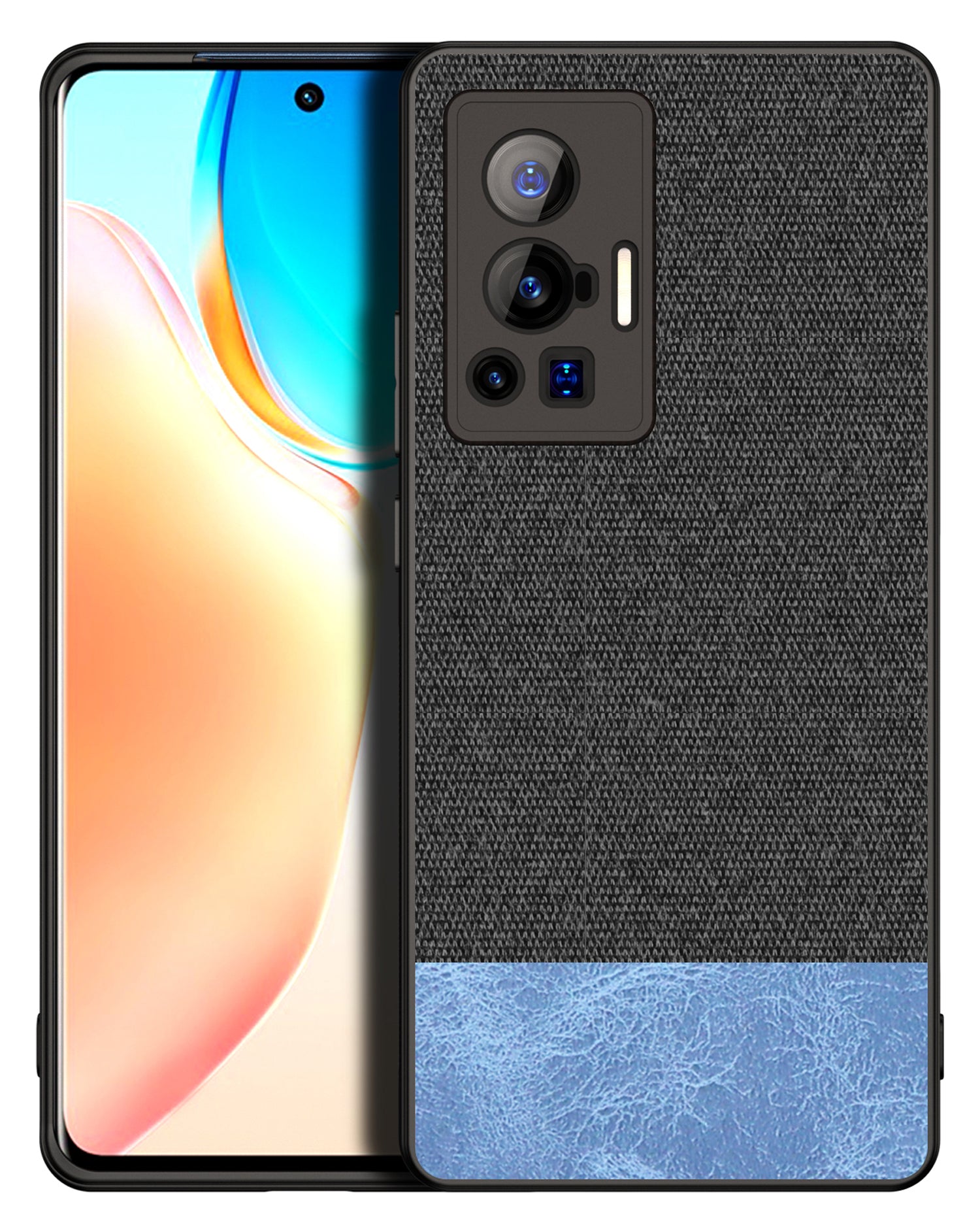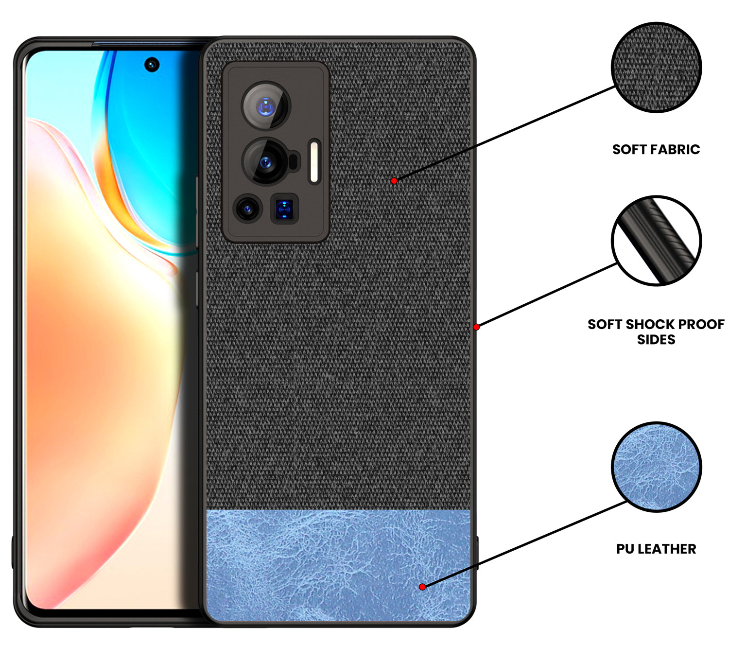 Soft Fabric & Leather Hybrid Protective Case Cover for Vivo X70 PRO (Black,Blue)