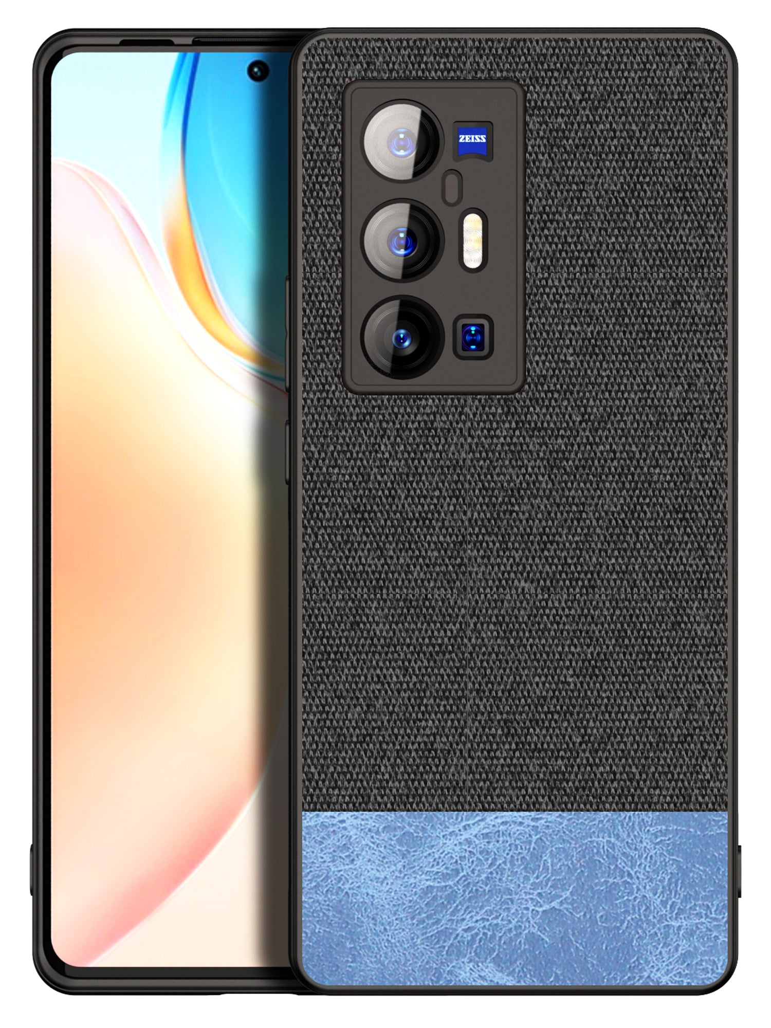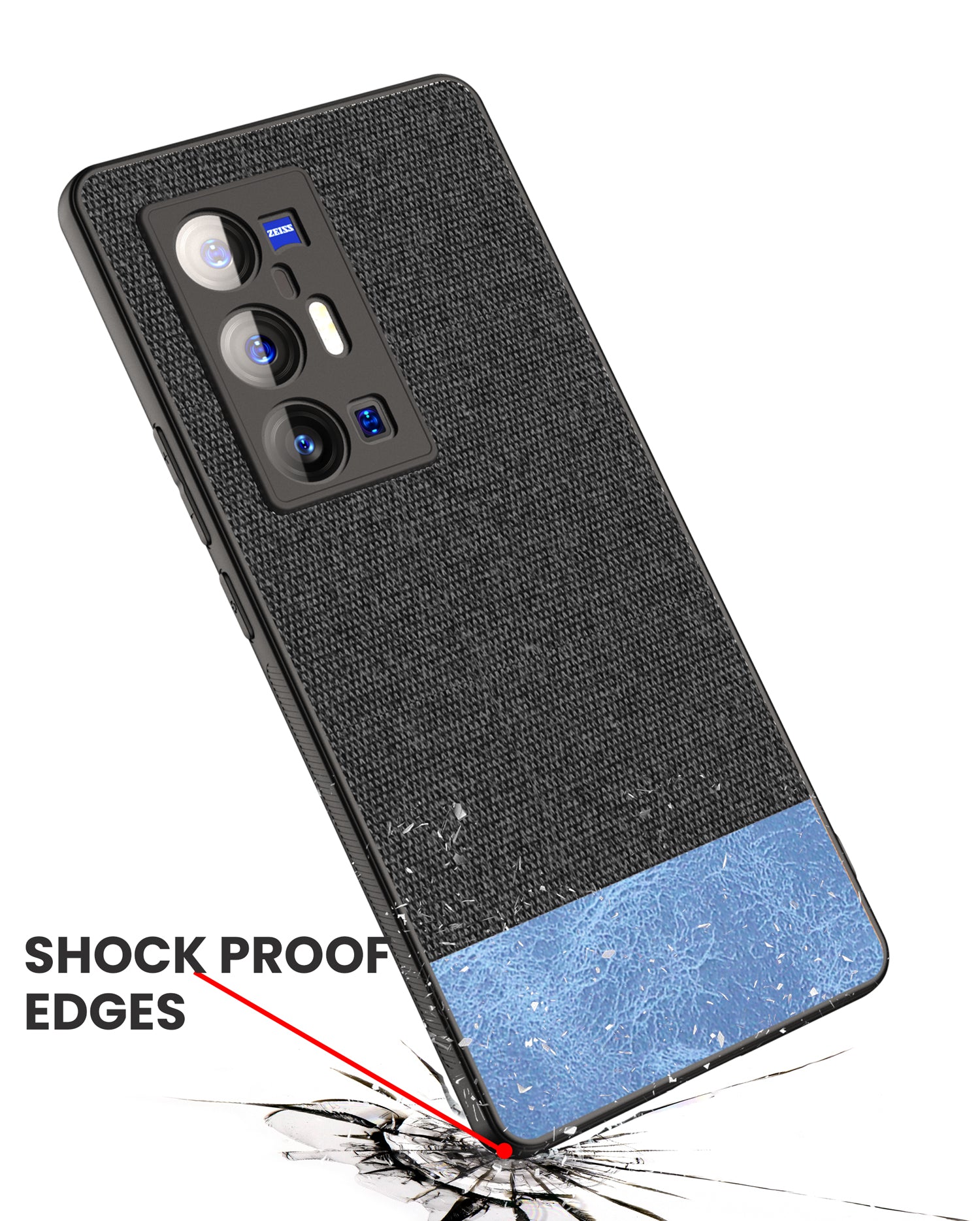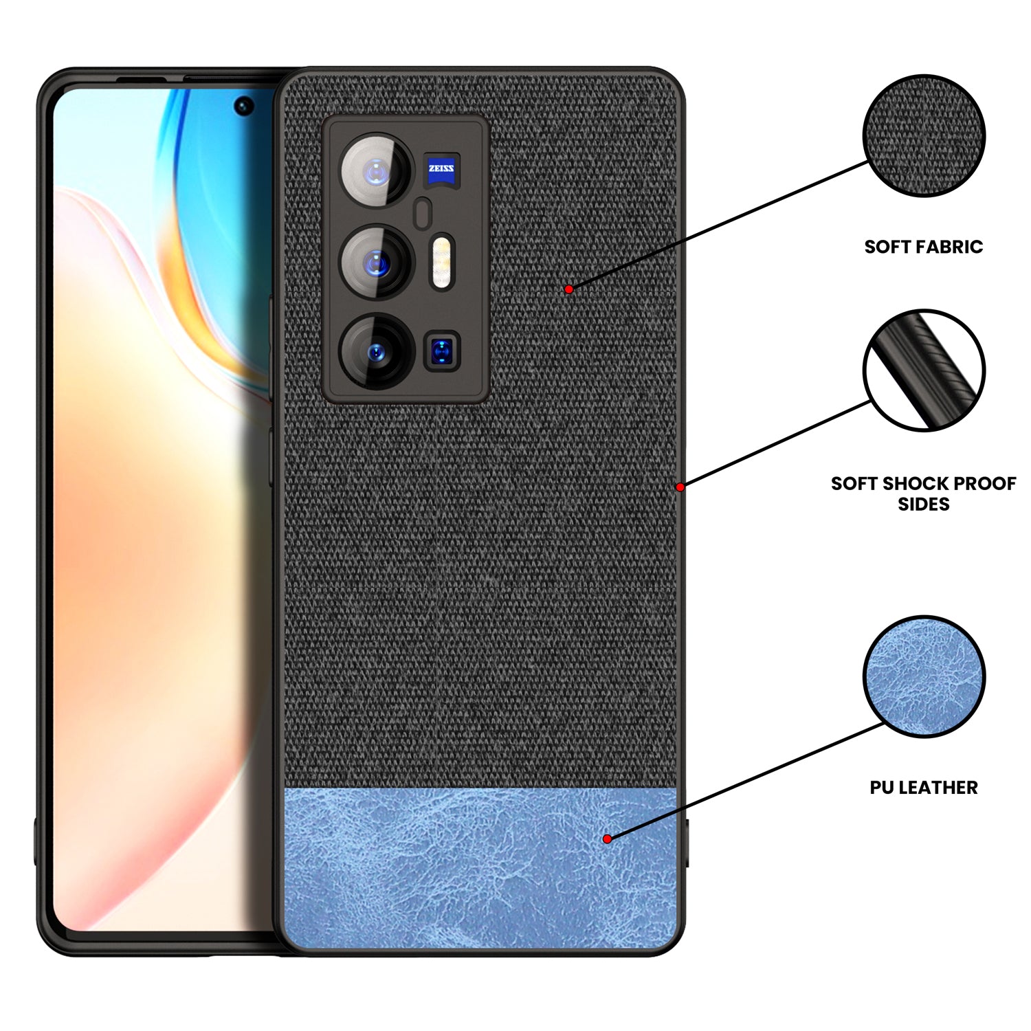 Soft Fabric & Leather Hybrid Protective Case Cover for Vivo X70 PRO PLUS (Black,Blue)